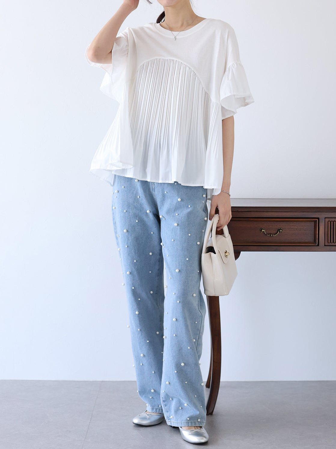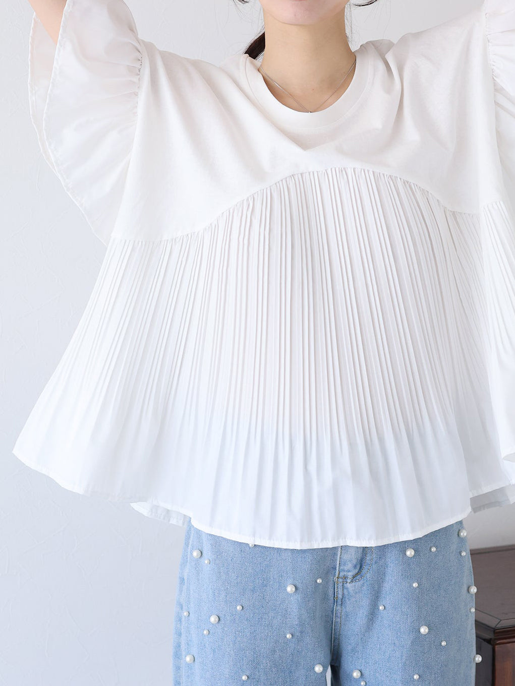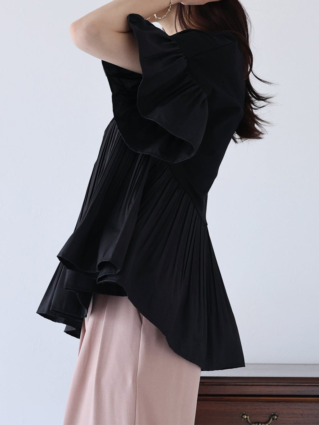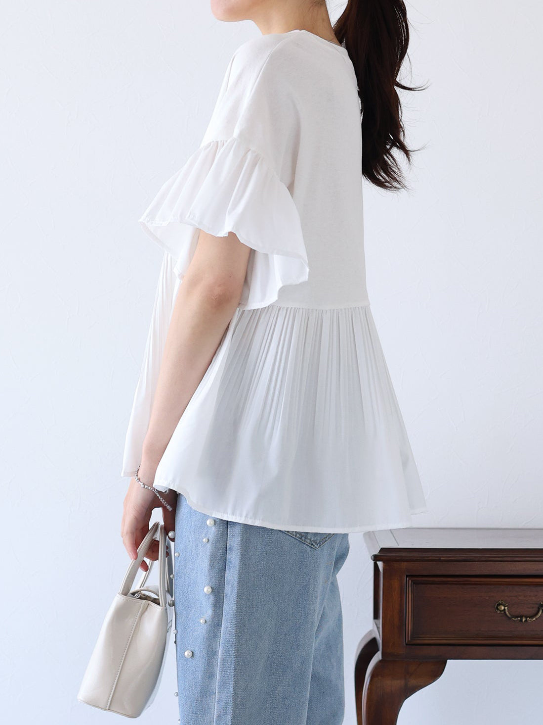 ☆The ruffled sleeves and pleated hem design add a feminine touch.