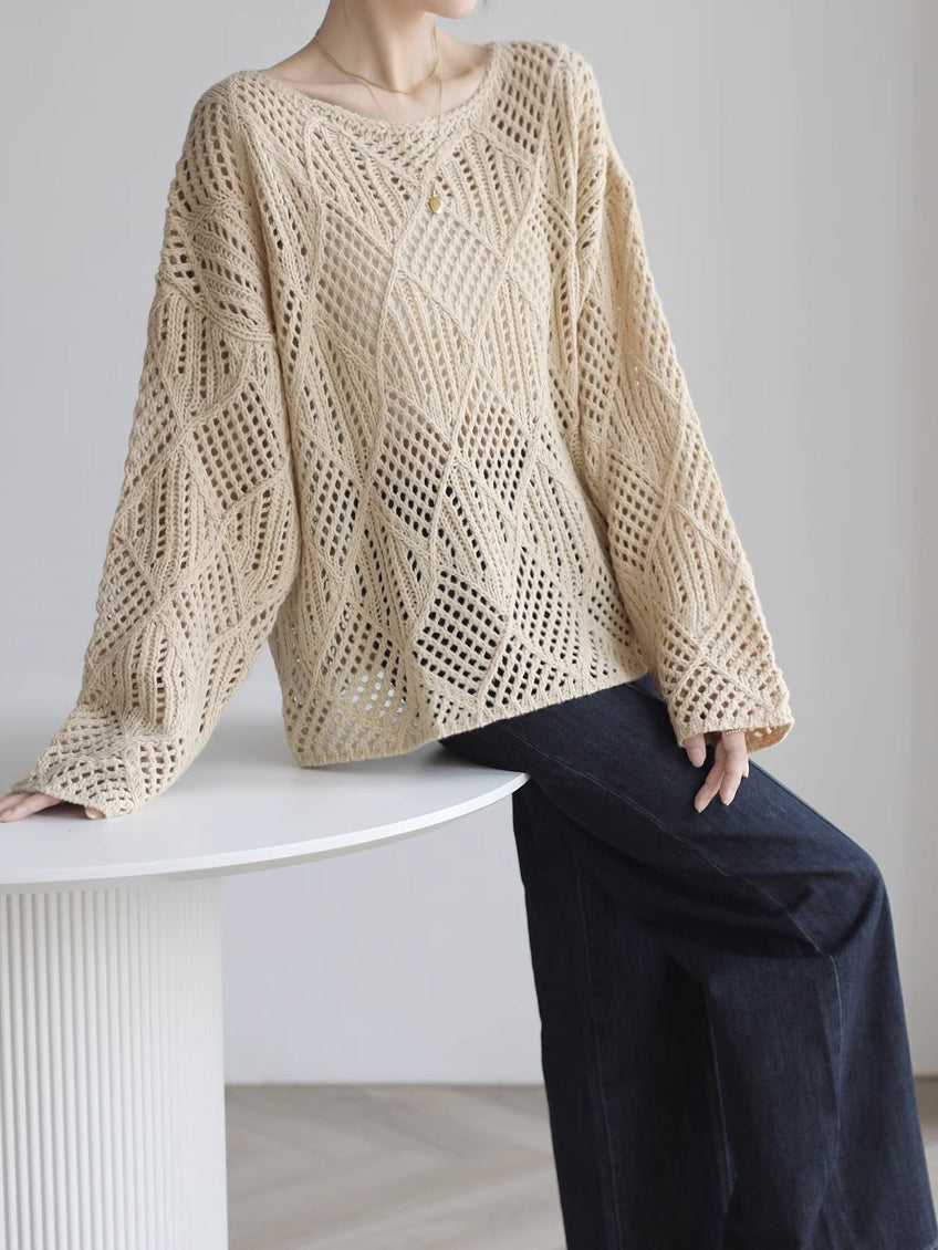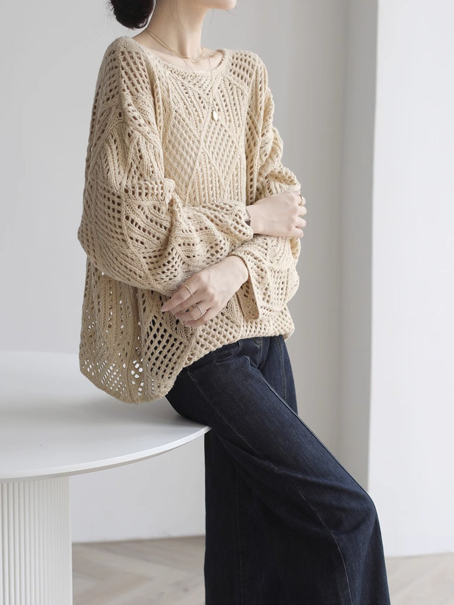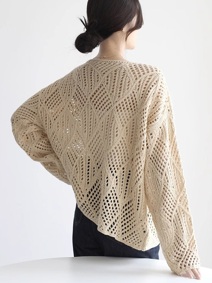 This crocheted knitwear will give you a stylish look just by layering it over a top.