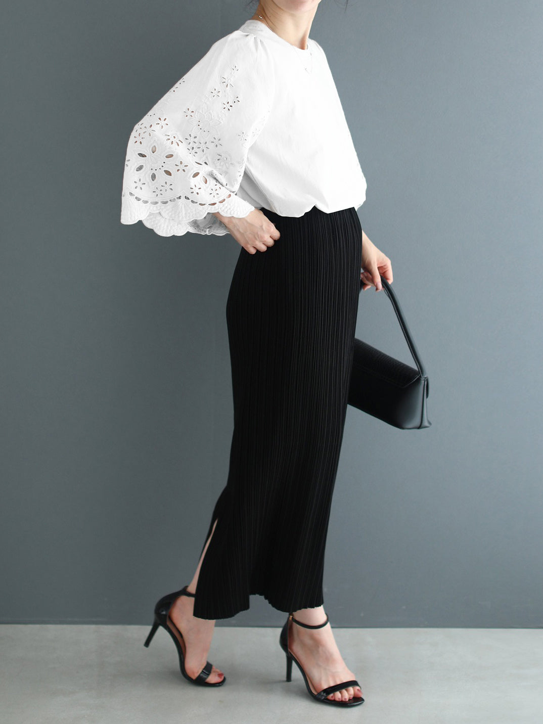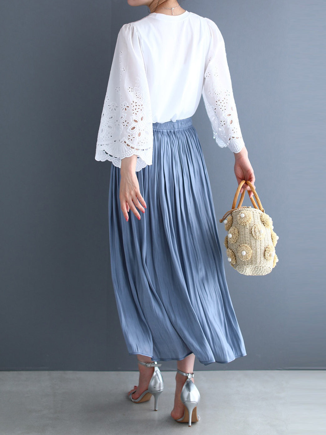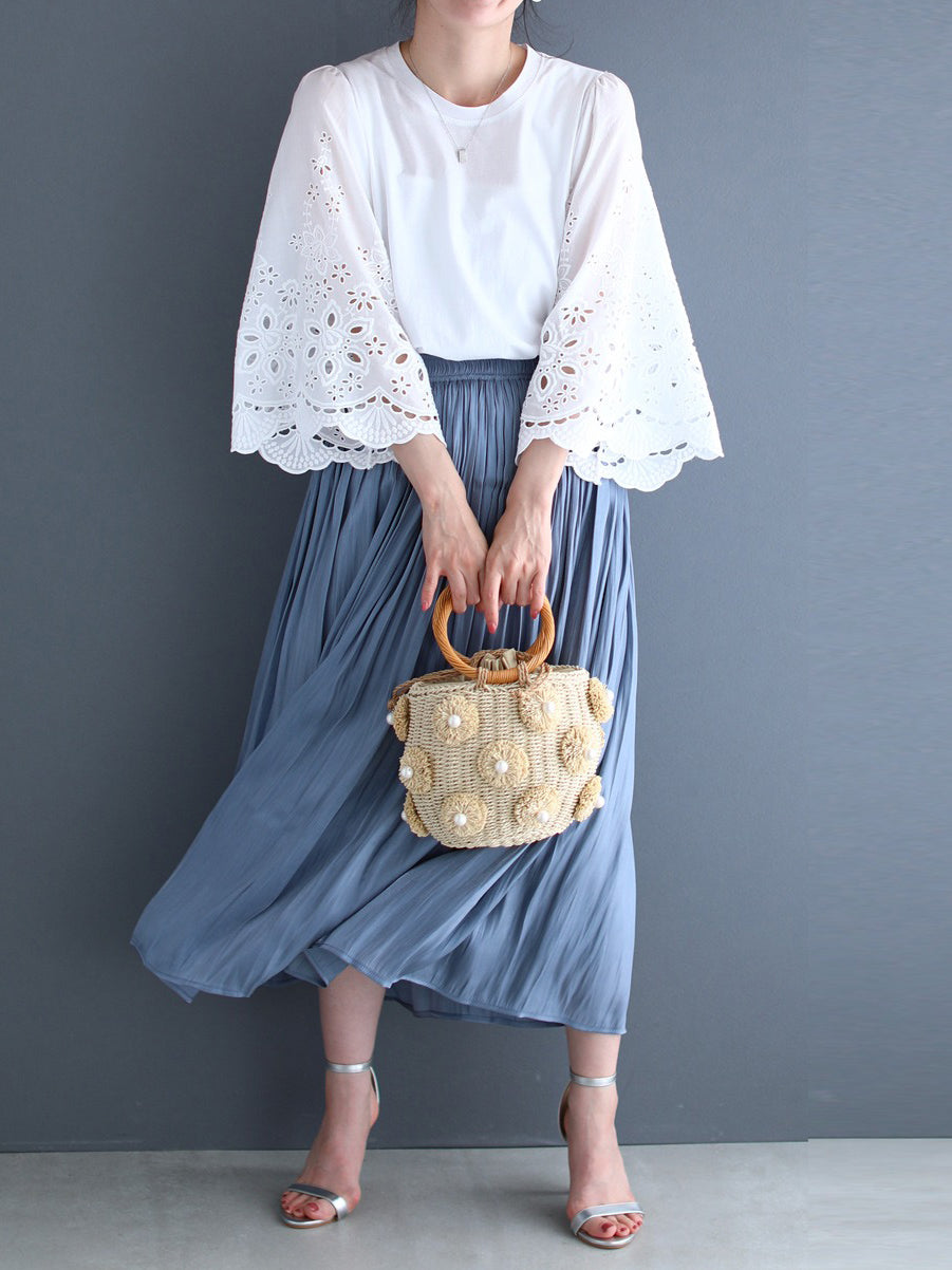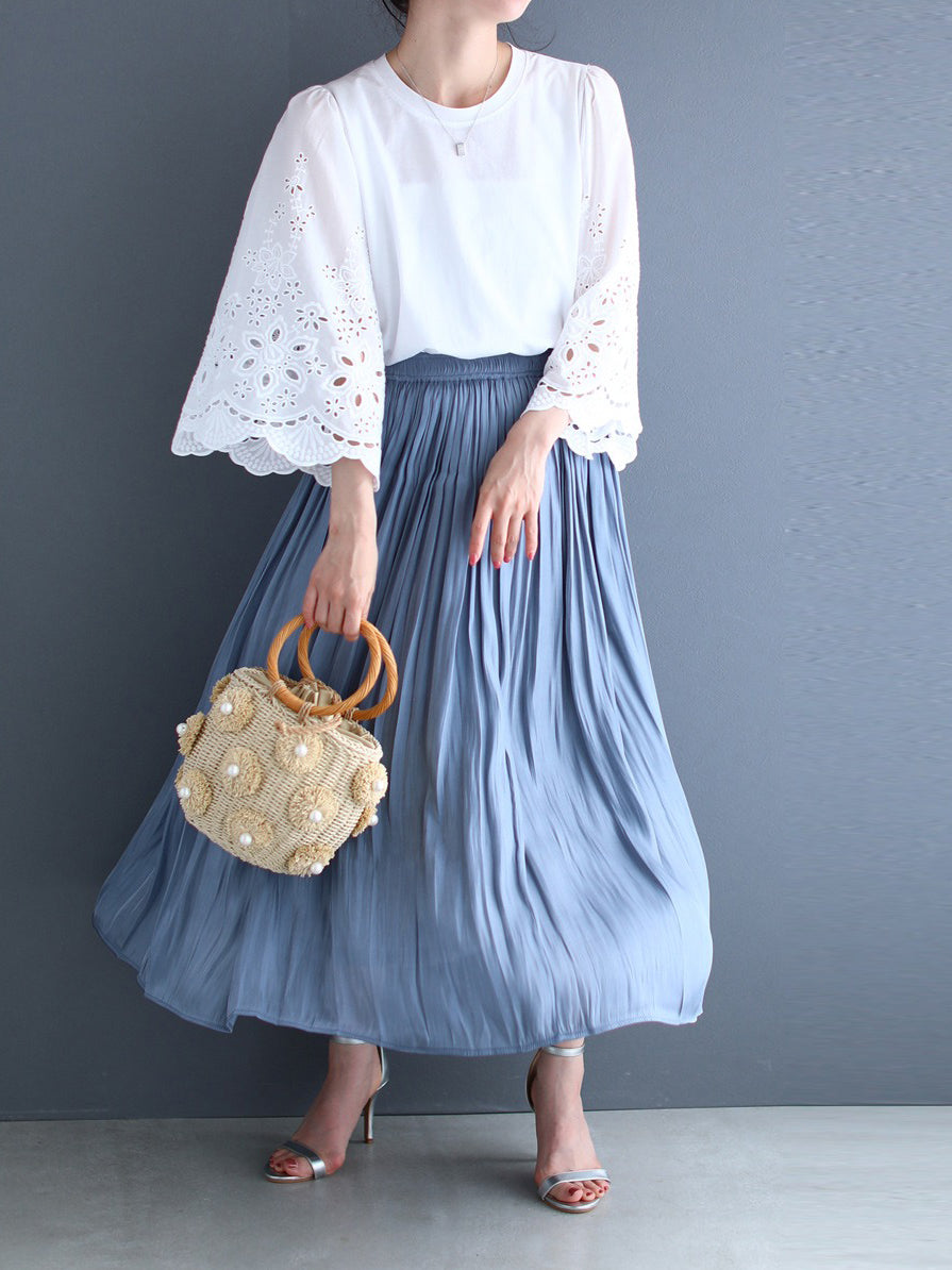 Another great thing about it is that it can be coordinated with any bottoms . If you wear it tucked in with slim pants, it will hide your stomach and buttocks.