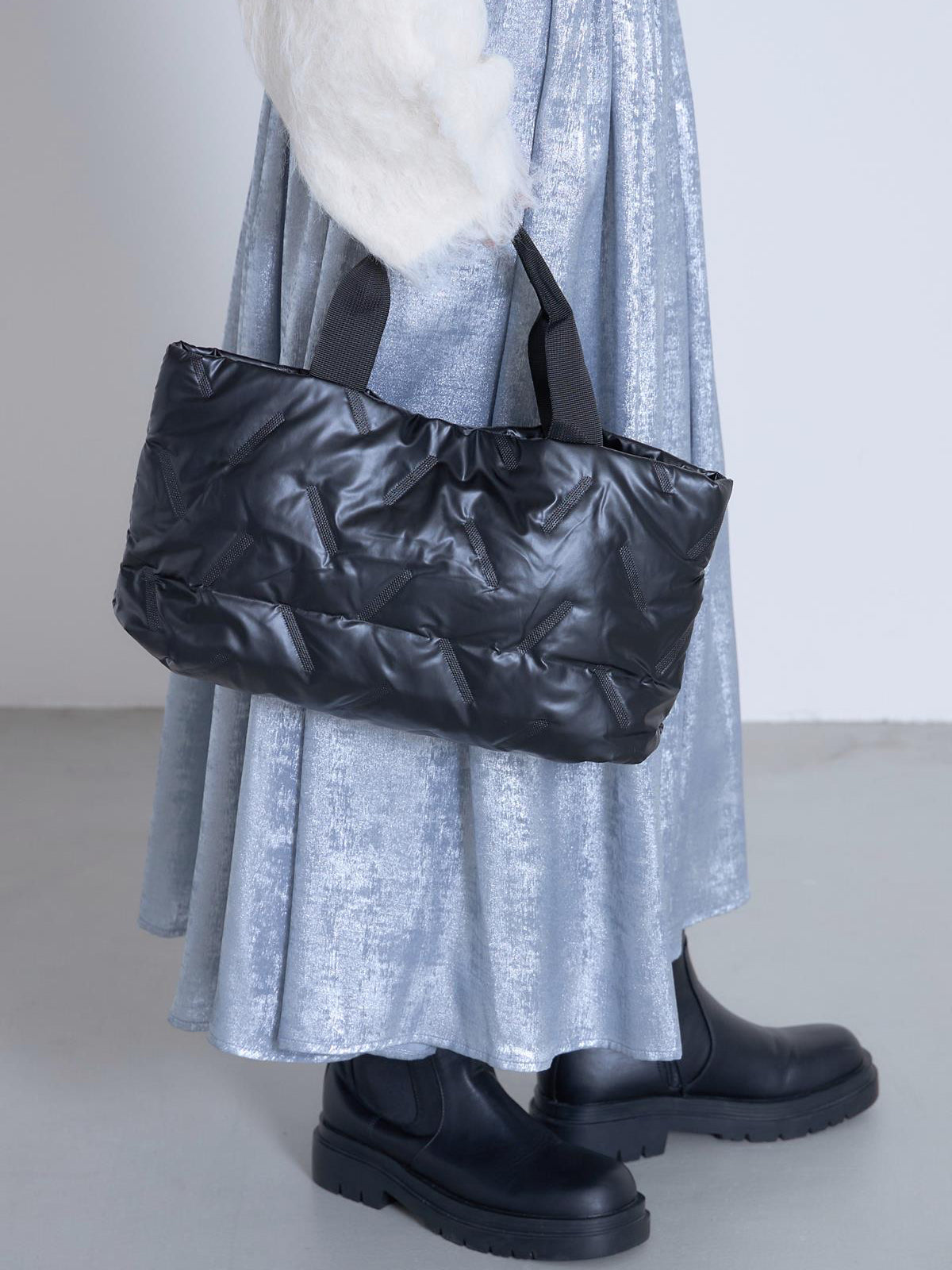 このキルティングトートバッグは、シンプルながらも洗練されたデザインで、どんなコーディネートにも合わせやすい万能アイテムです。