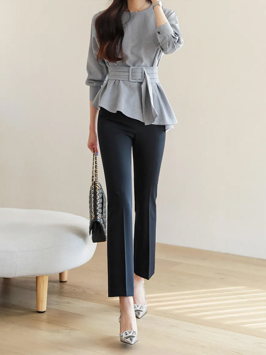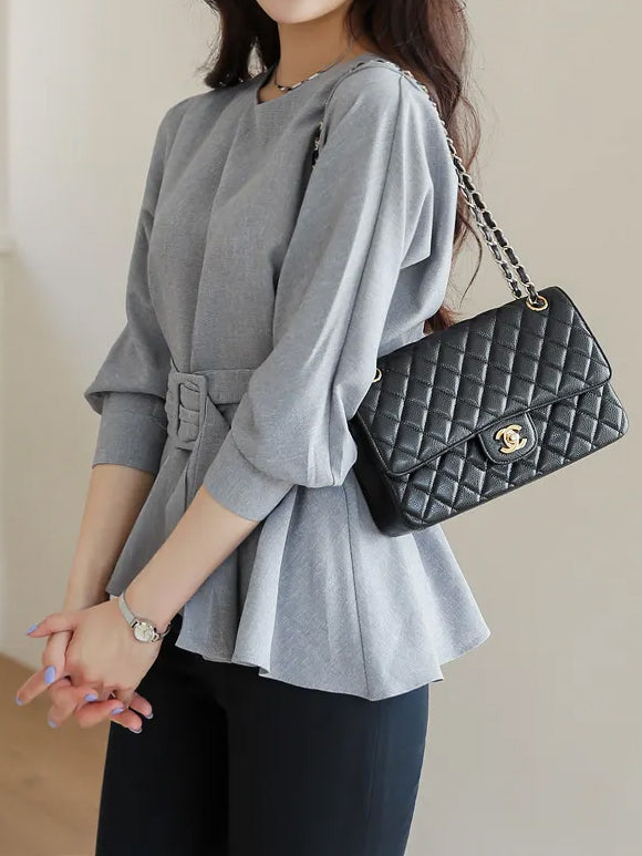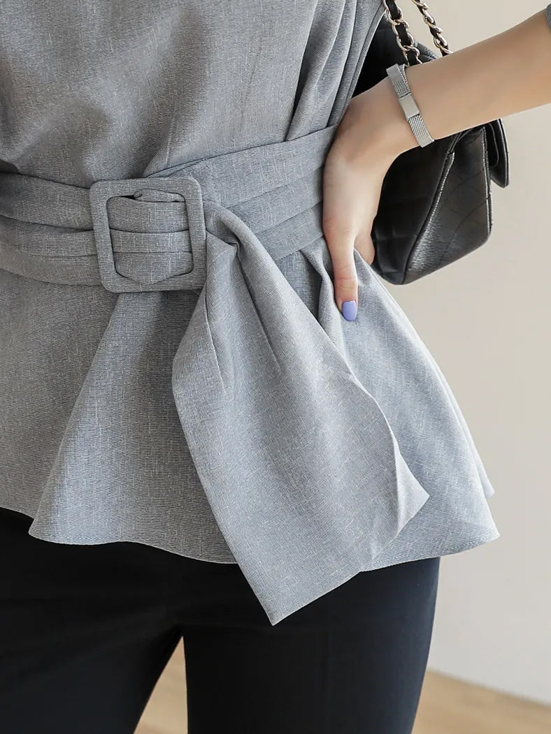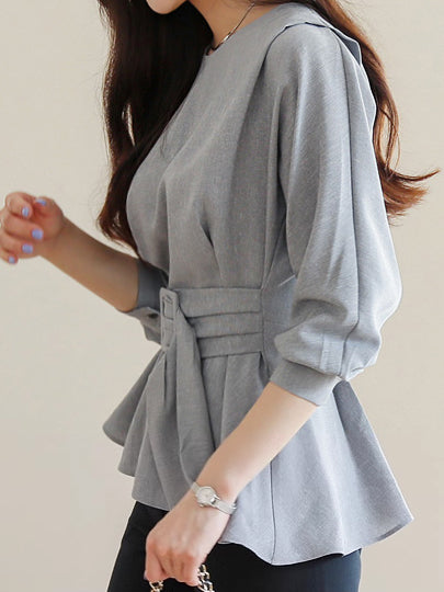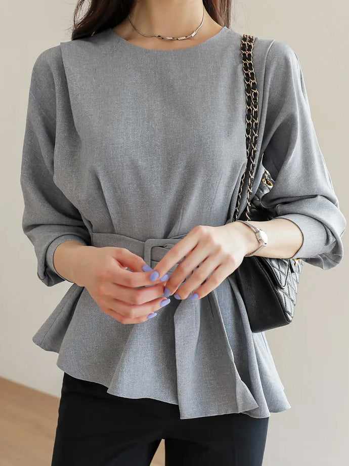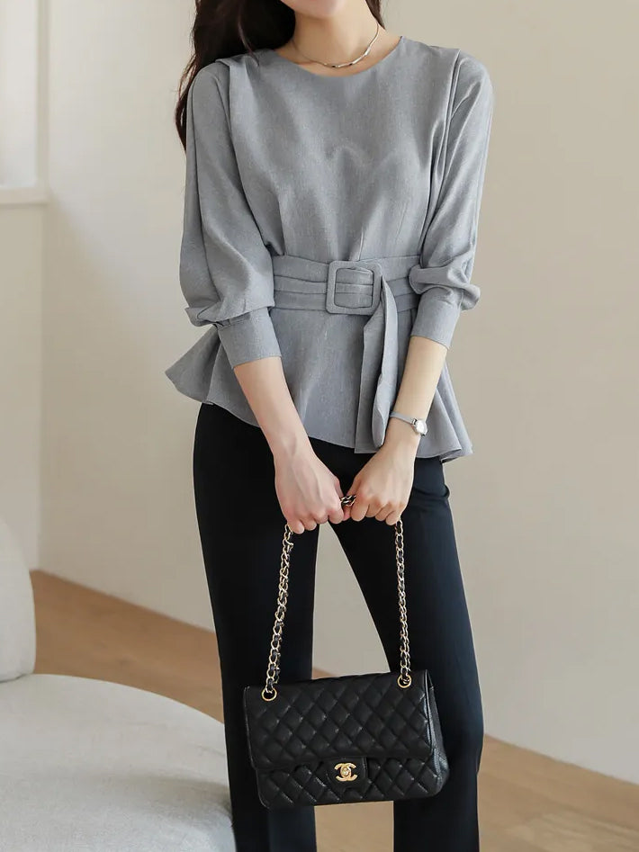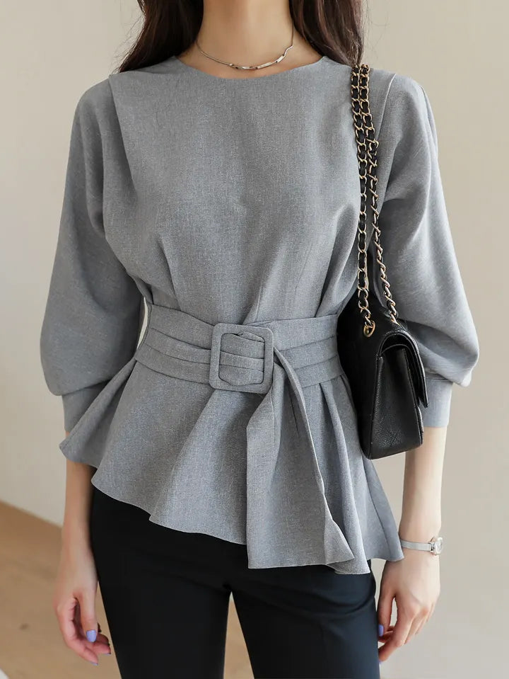 バックルベルテッドボリュームブラウス