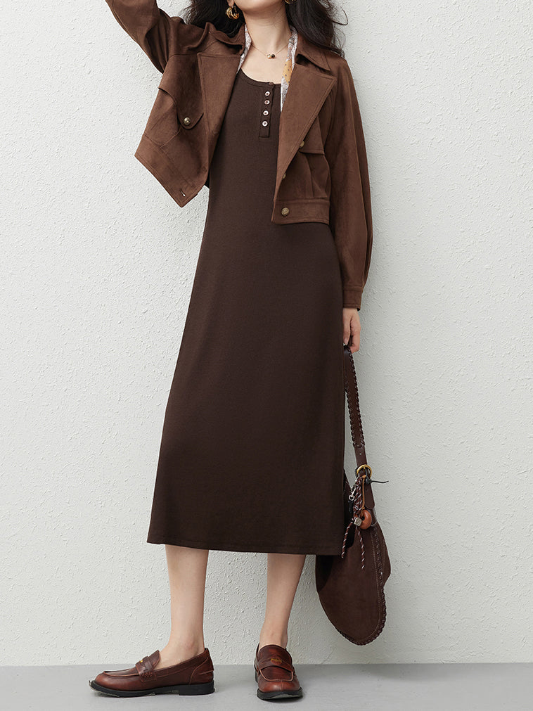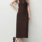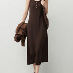 スッキリネックラインと美シルエット、シンプルなタンクワンピース。