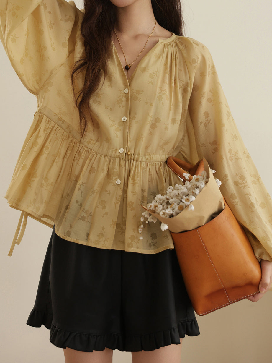 ドロストフラワープリントブラウス