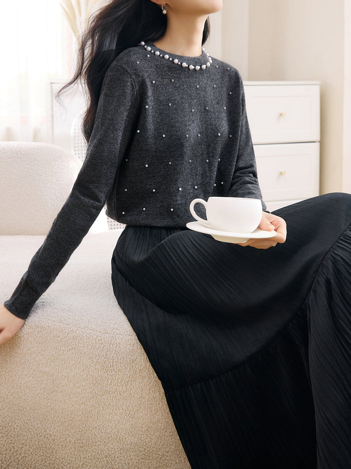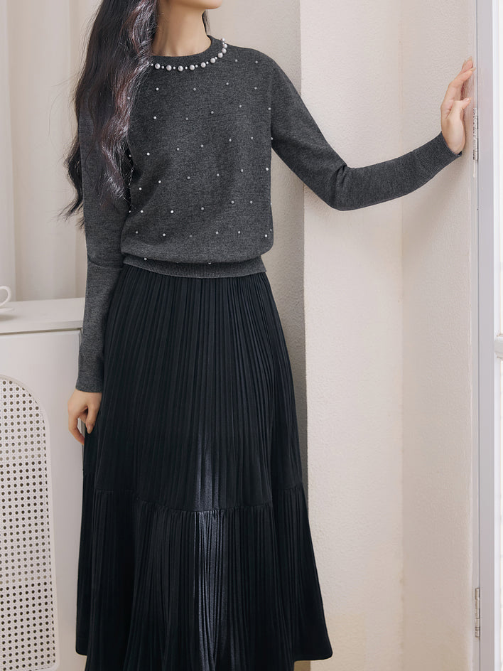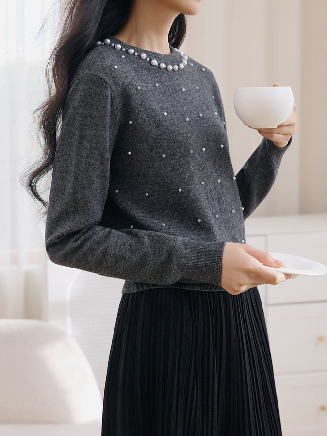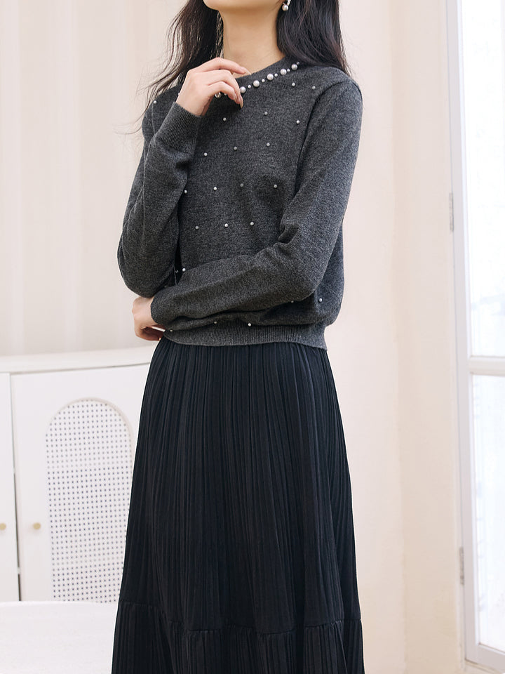 パールを散りばめ、大人上品なカジュアルコーデが叶います。