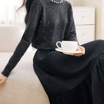 ☆首周りにパールが付いて見た目にも華やかでエレガントで上品に見え、顔周りを明るく見せる。