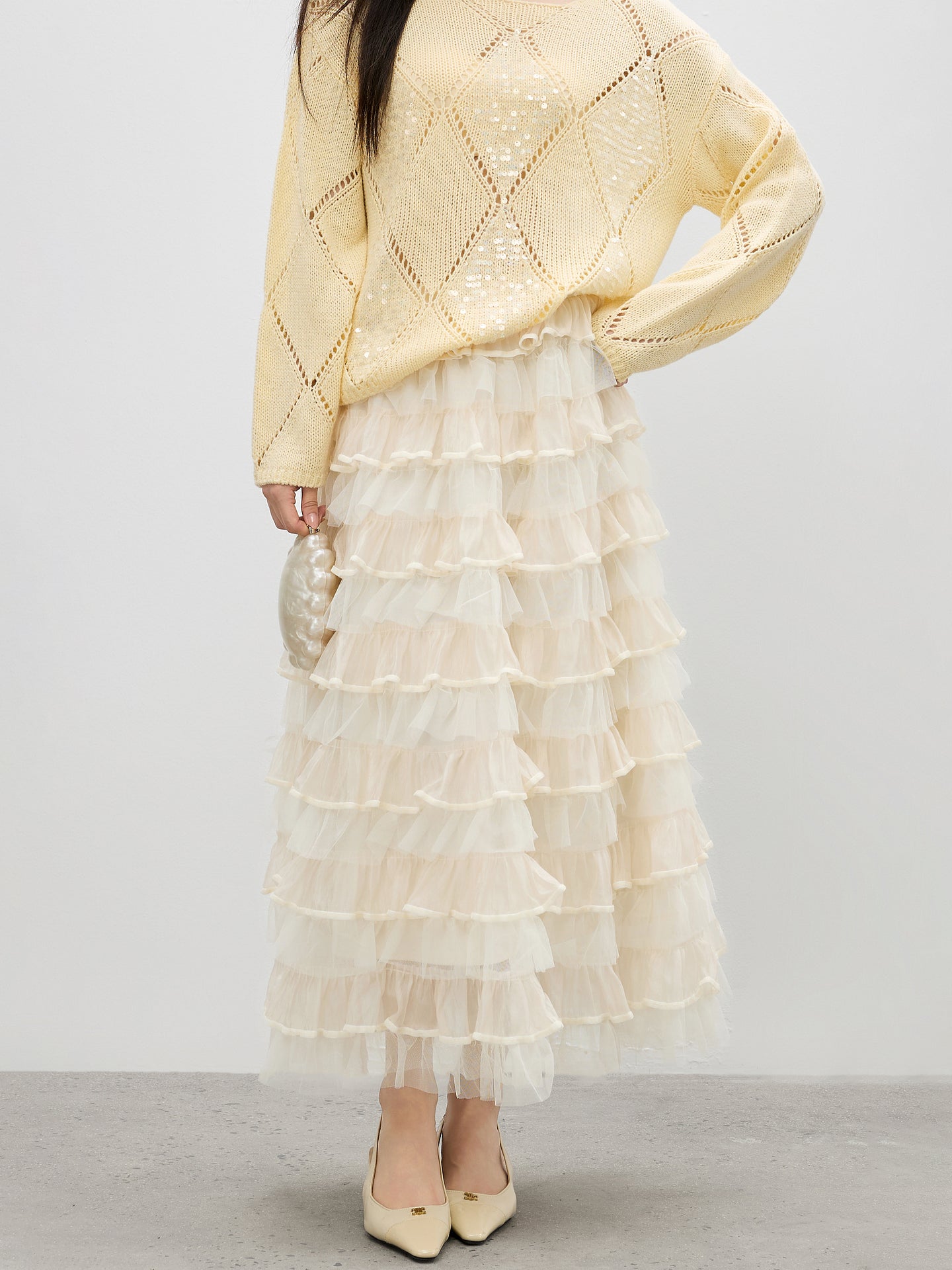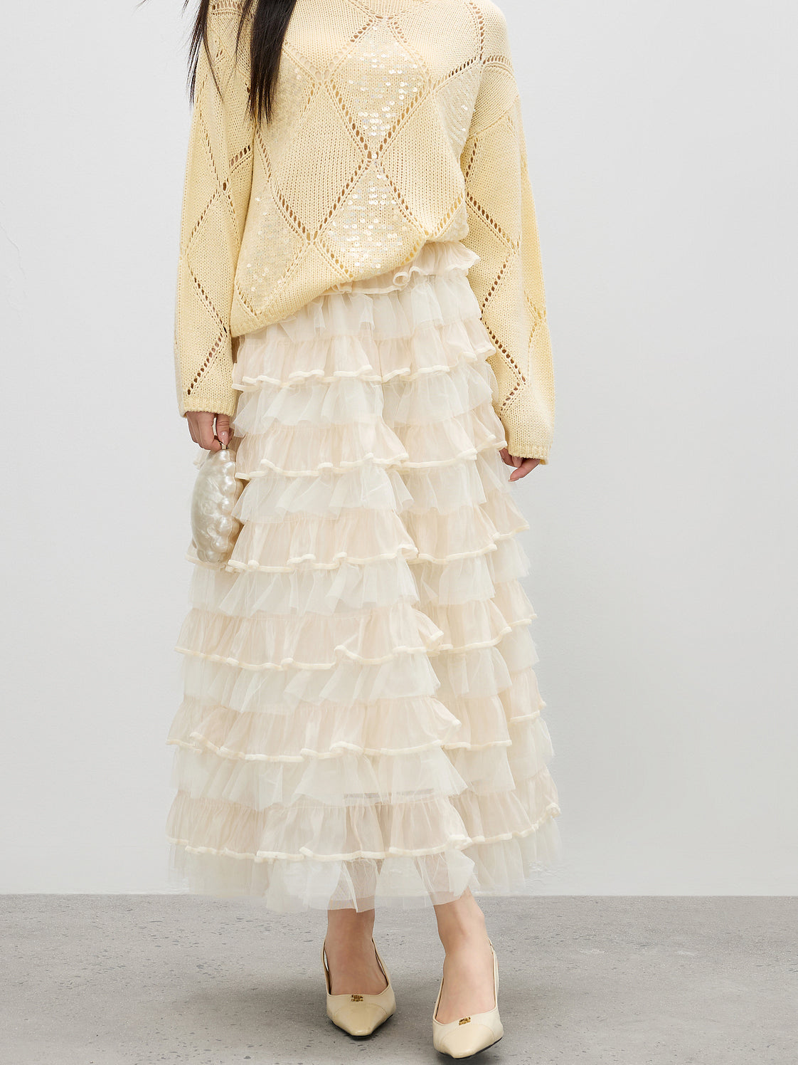 シアーフリルティアードスカート