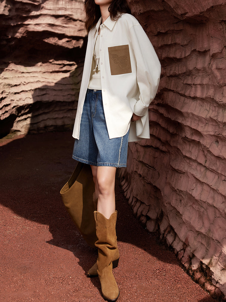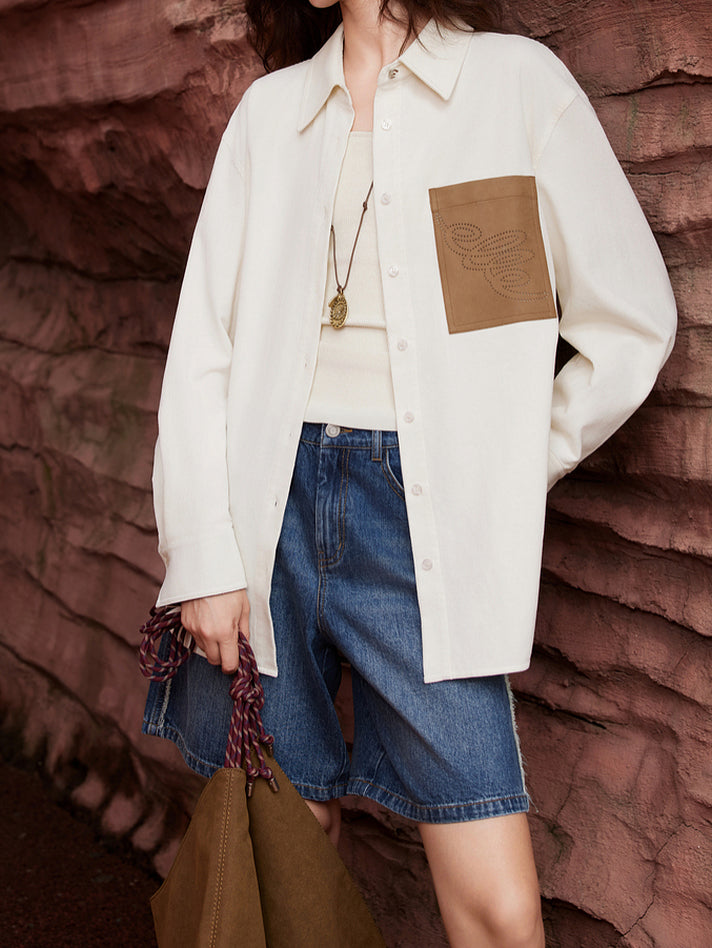 バイカラーポケットコーデュロイシャツ 2色入