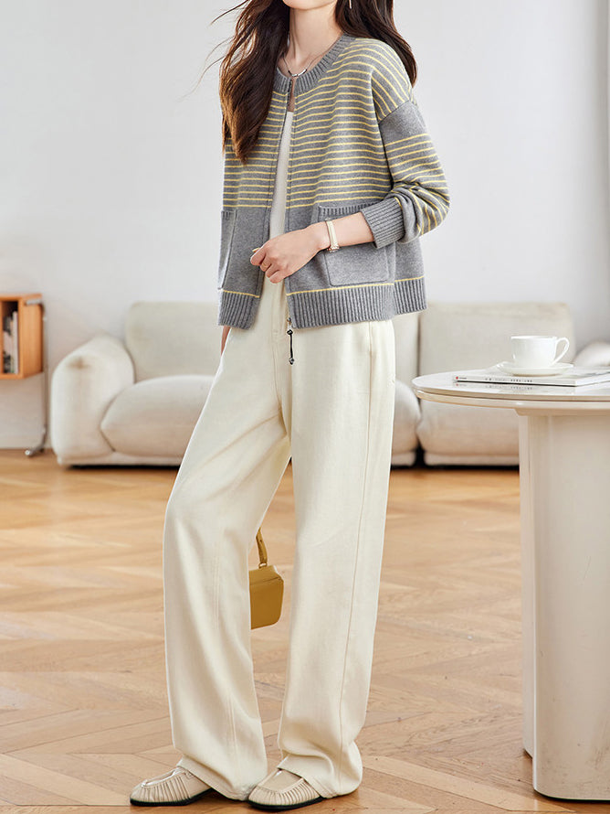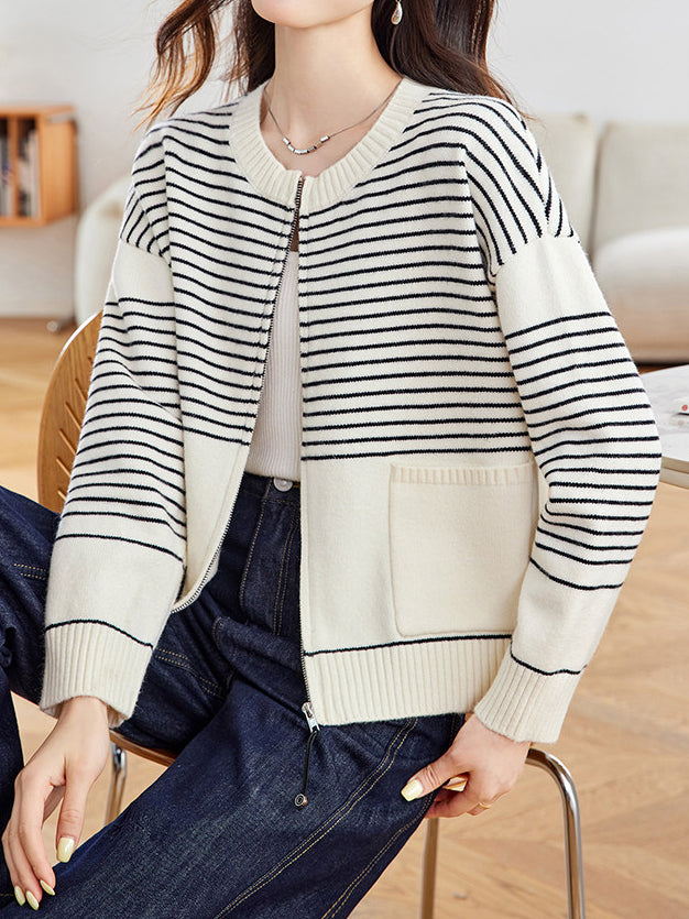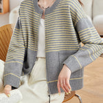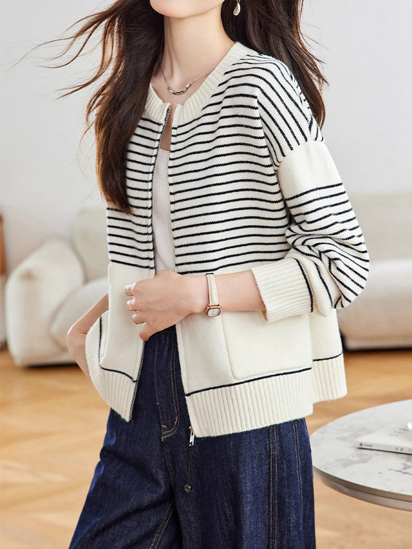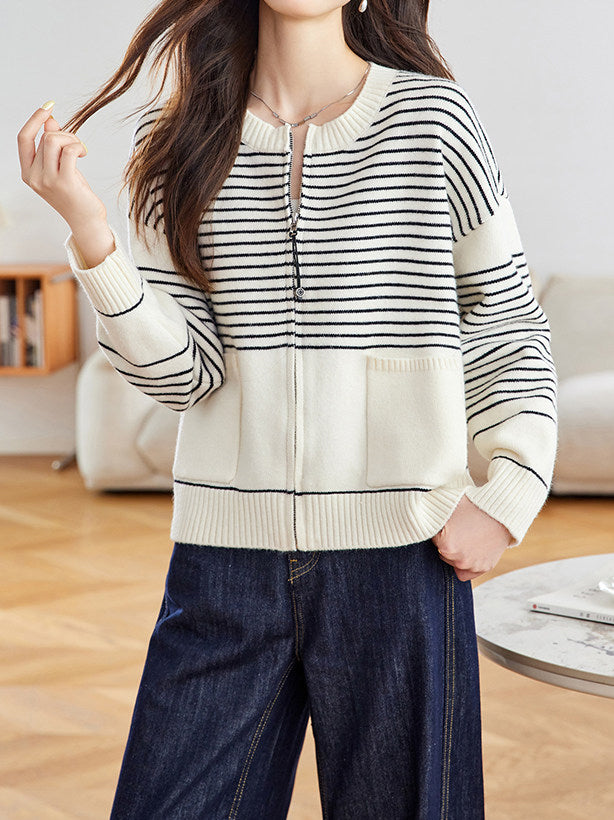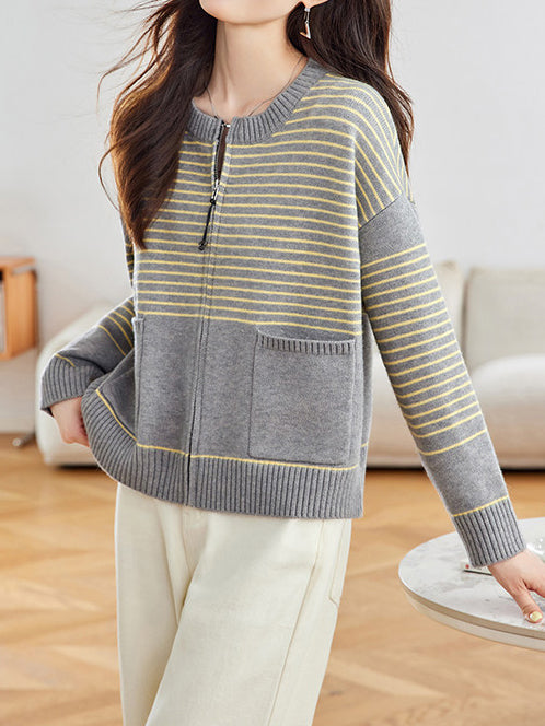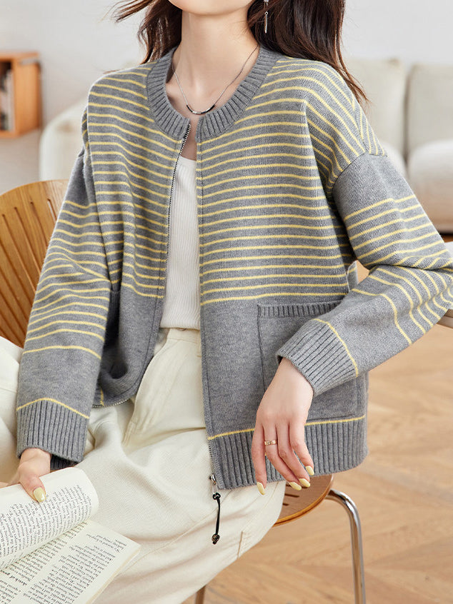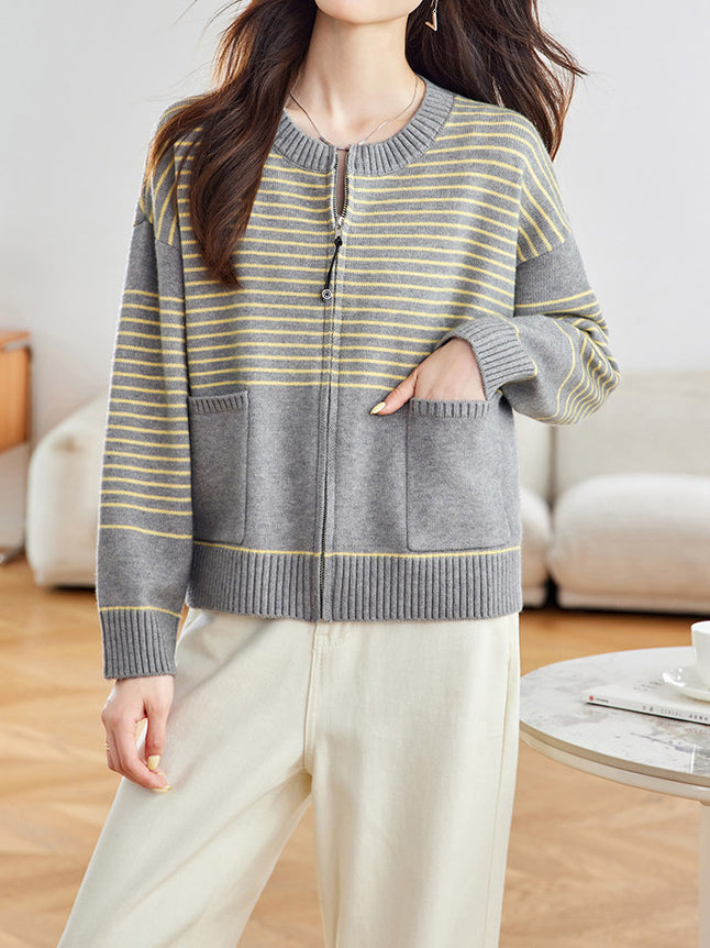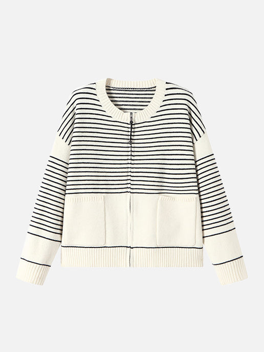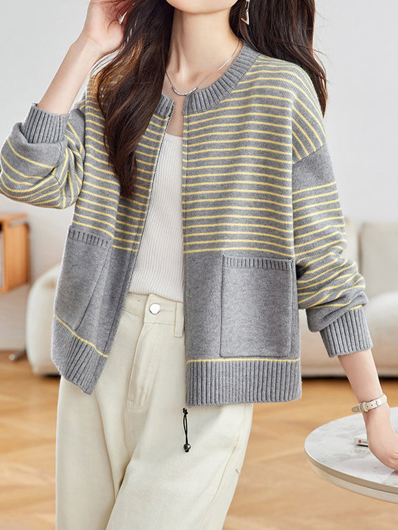 パネルボーダージップアップカーディガン 2色入
