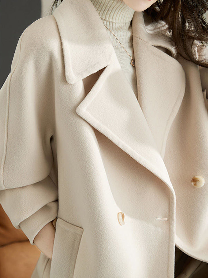 シンプルながらも洗練されたダブルテーラード衿デザインで、一着持っているだけでオンオフ問わず幅広く活躍してくれる優秀アウター。