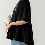 ☆気になる二の腕を隠してくれる五分袖で、さりげなく体型カバーしてくれるのも嬉しいポイントです。