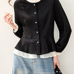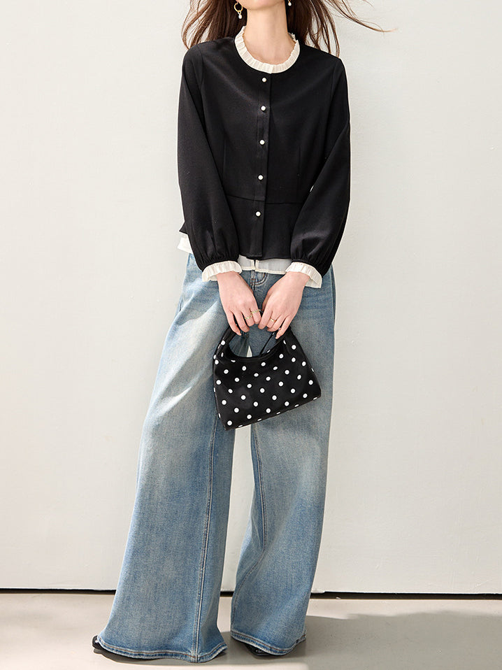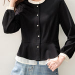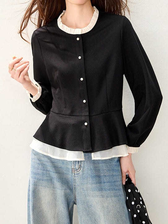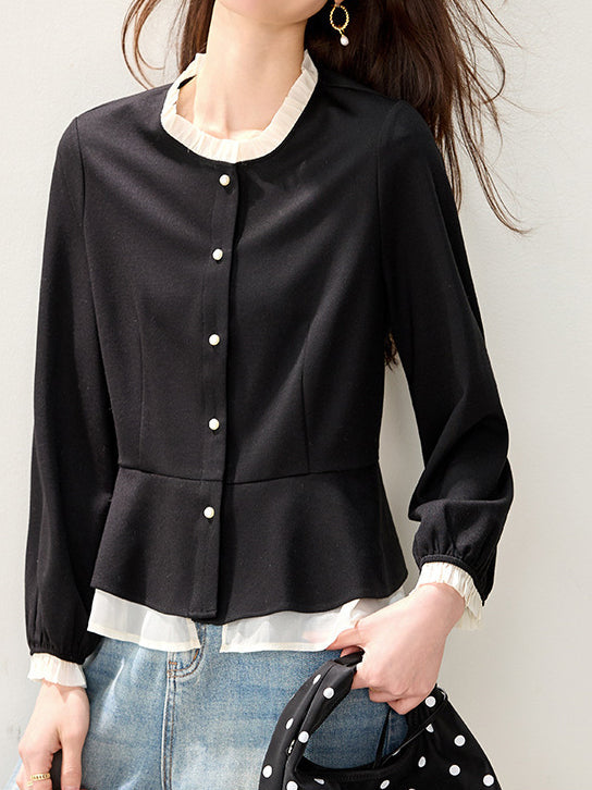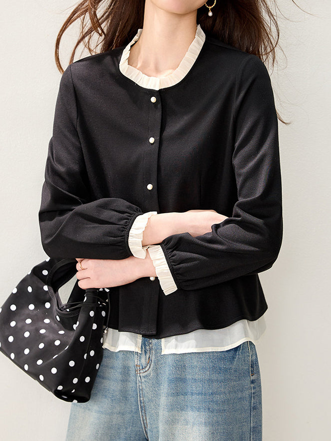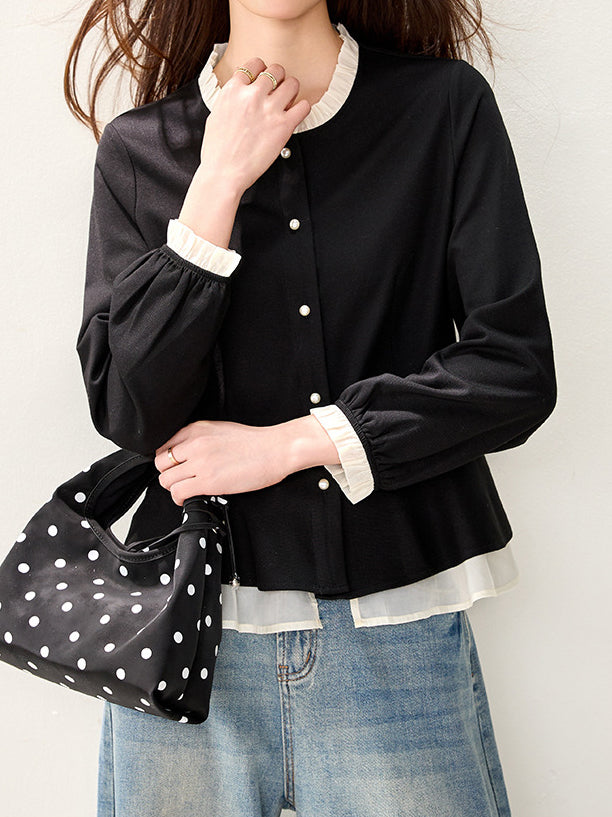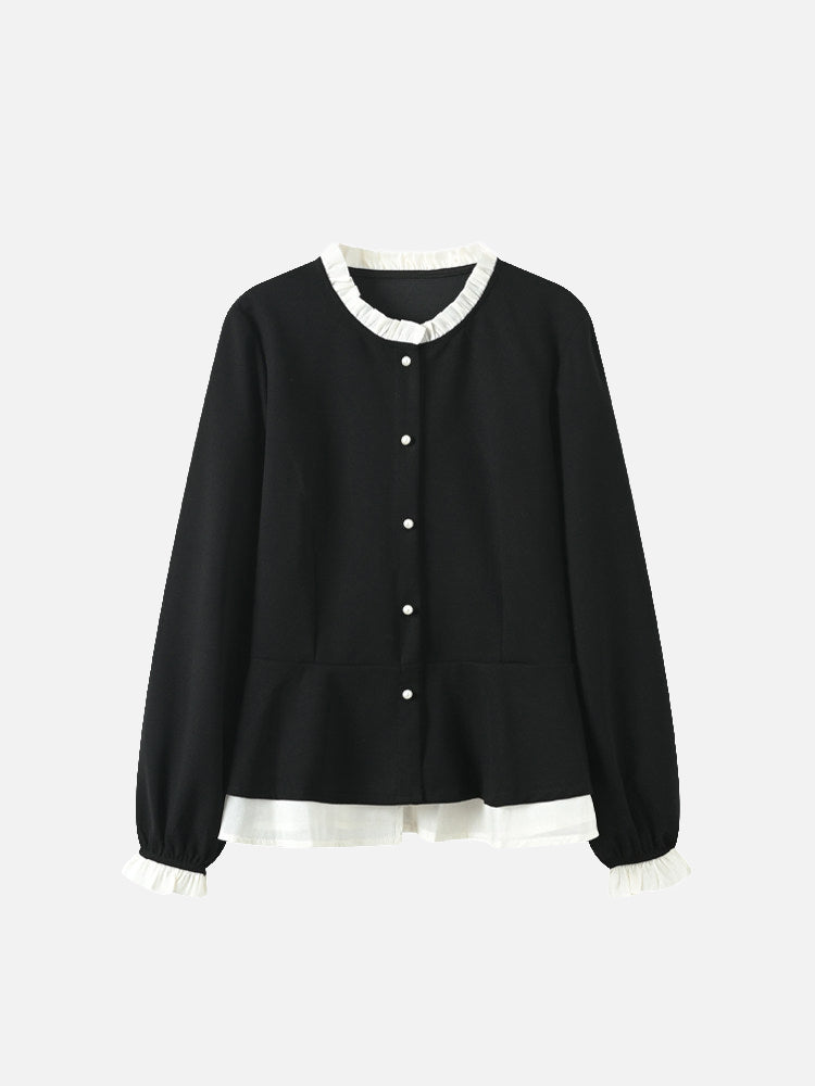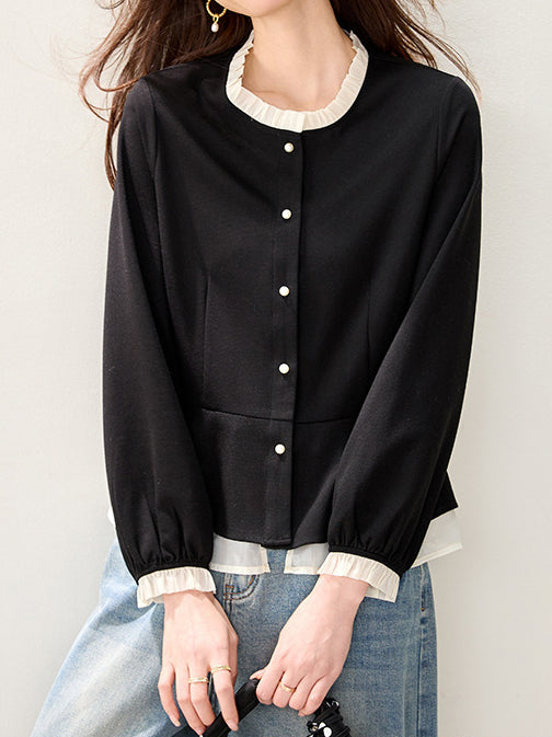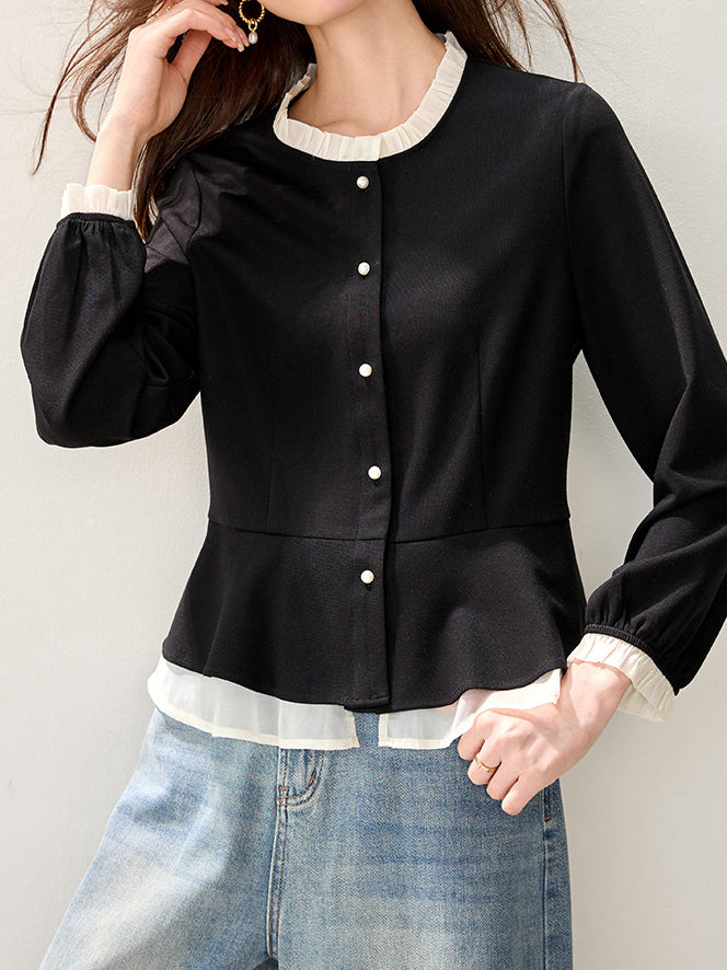 バイカラーフリルブラウス