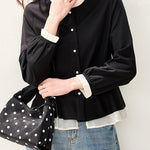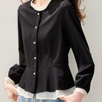 バイカラーデザインが華やかな上品見えブラウス。
