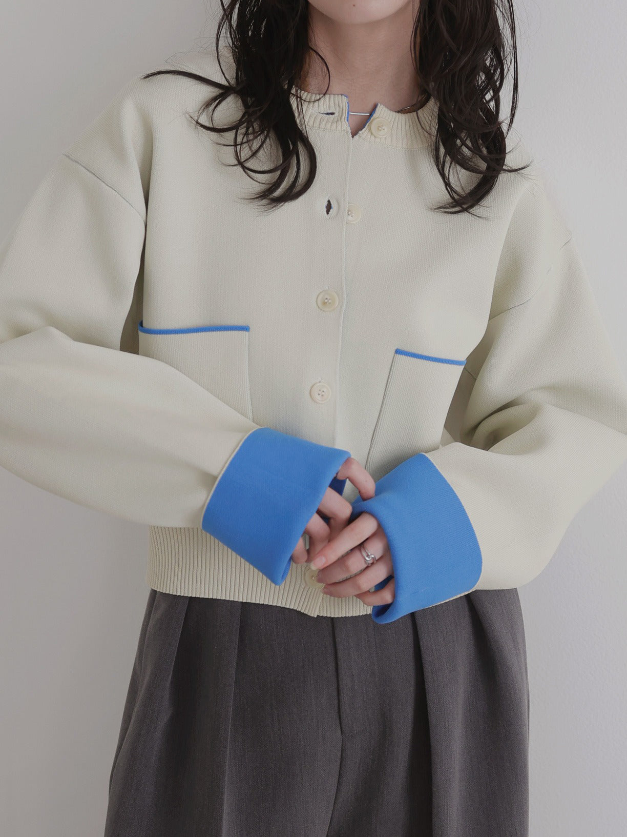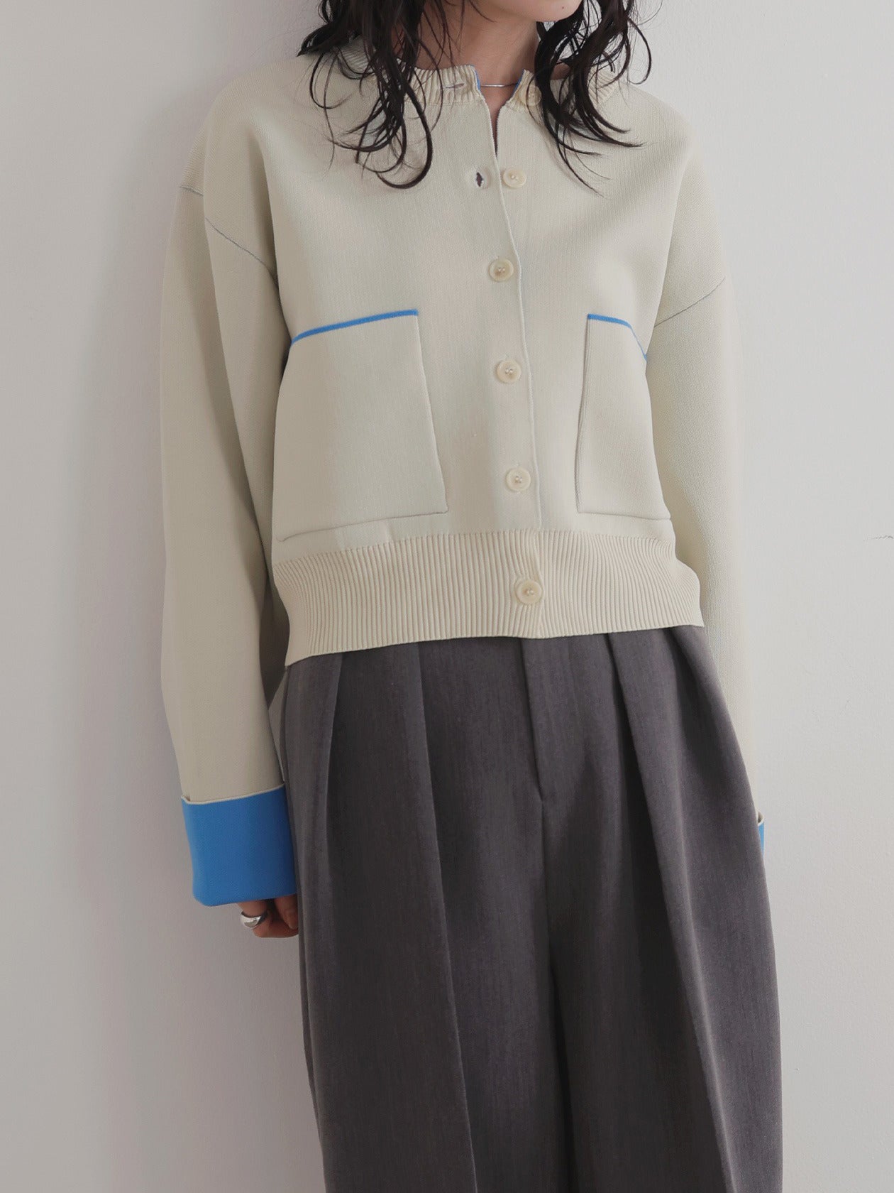 ボタンをとめてカーディガンを主役としても、ワンピースに肩掛けしてきれい目にもON/OFF問わず着ていただける一枚。