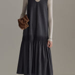 ☆裾にプリーツフレアをドッキングして、すっきりと見せつつも身体のラインを拾いすぎず、楽に着ていただけるデザインに仕上げています。