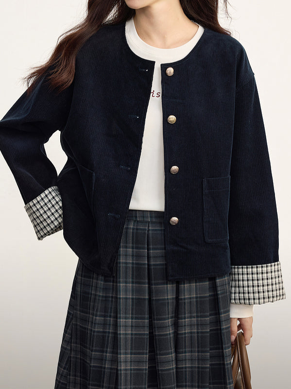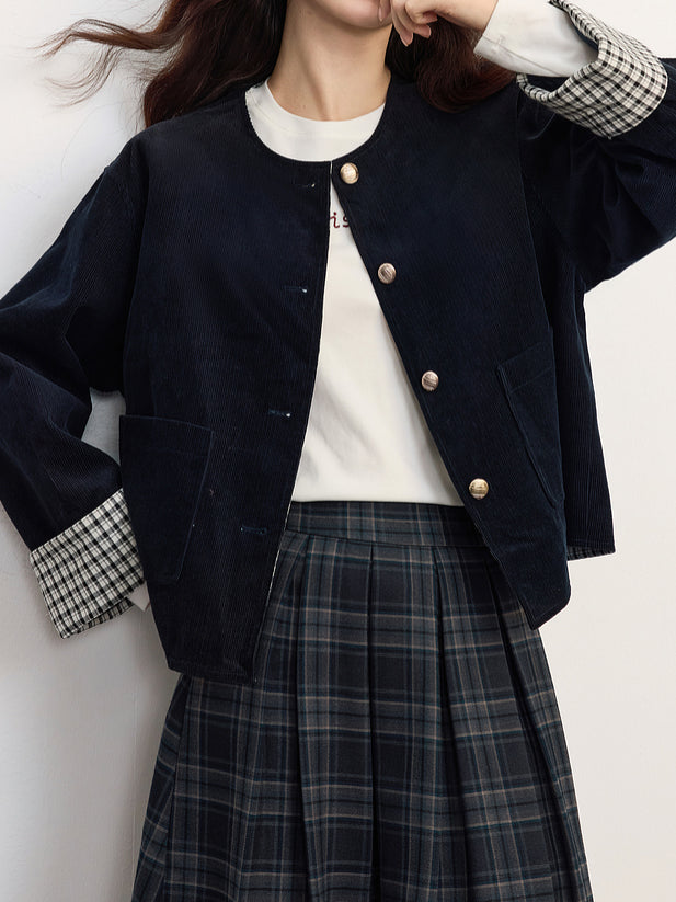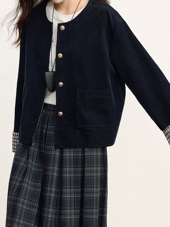 チェック柄ドッキングコーデュロイジャケット 2色入