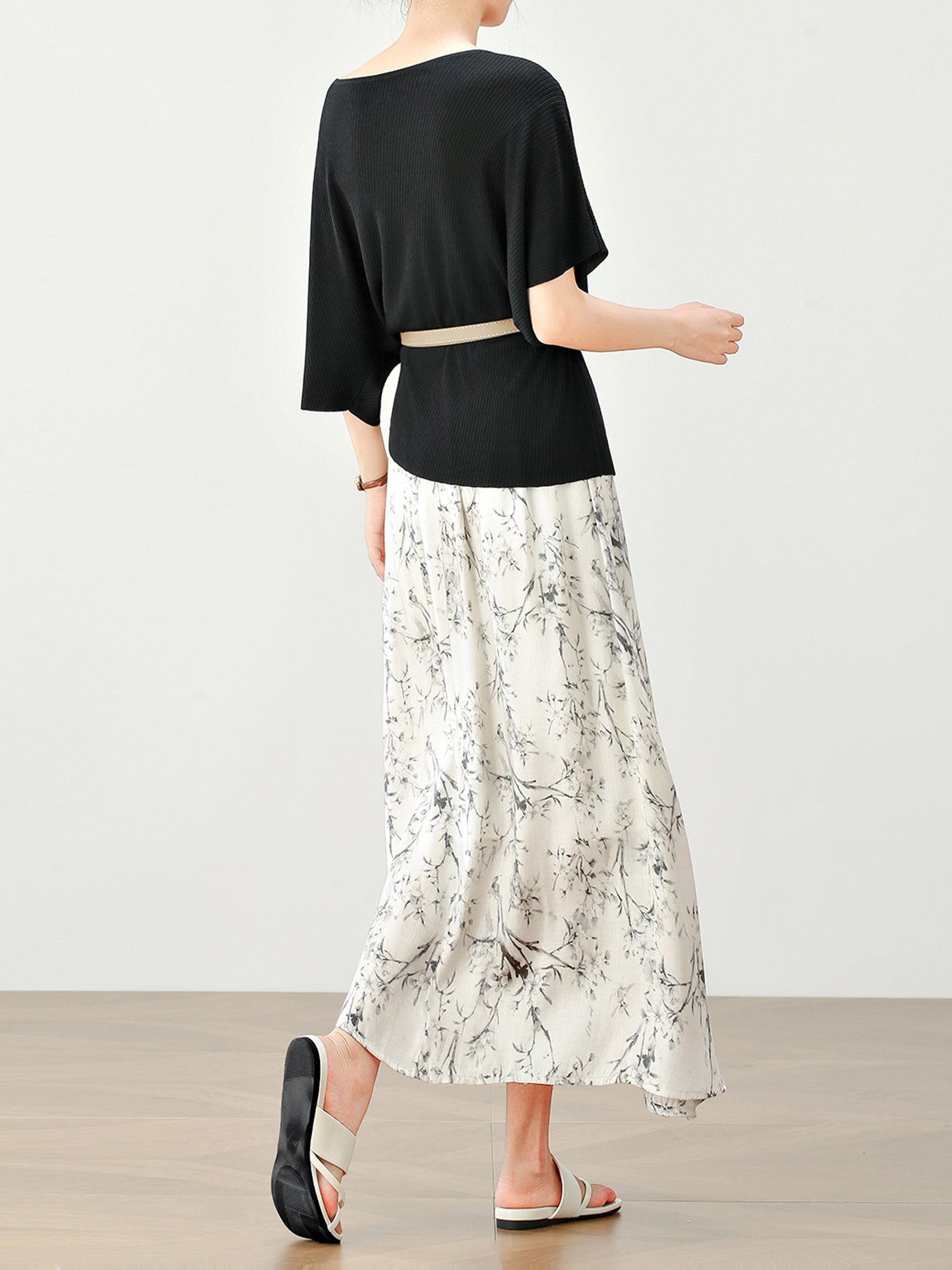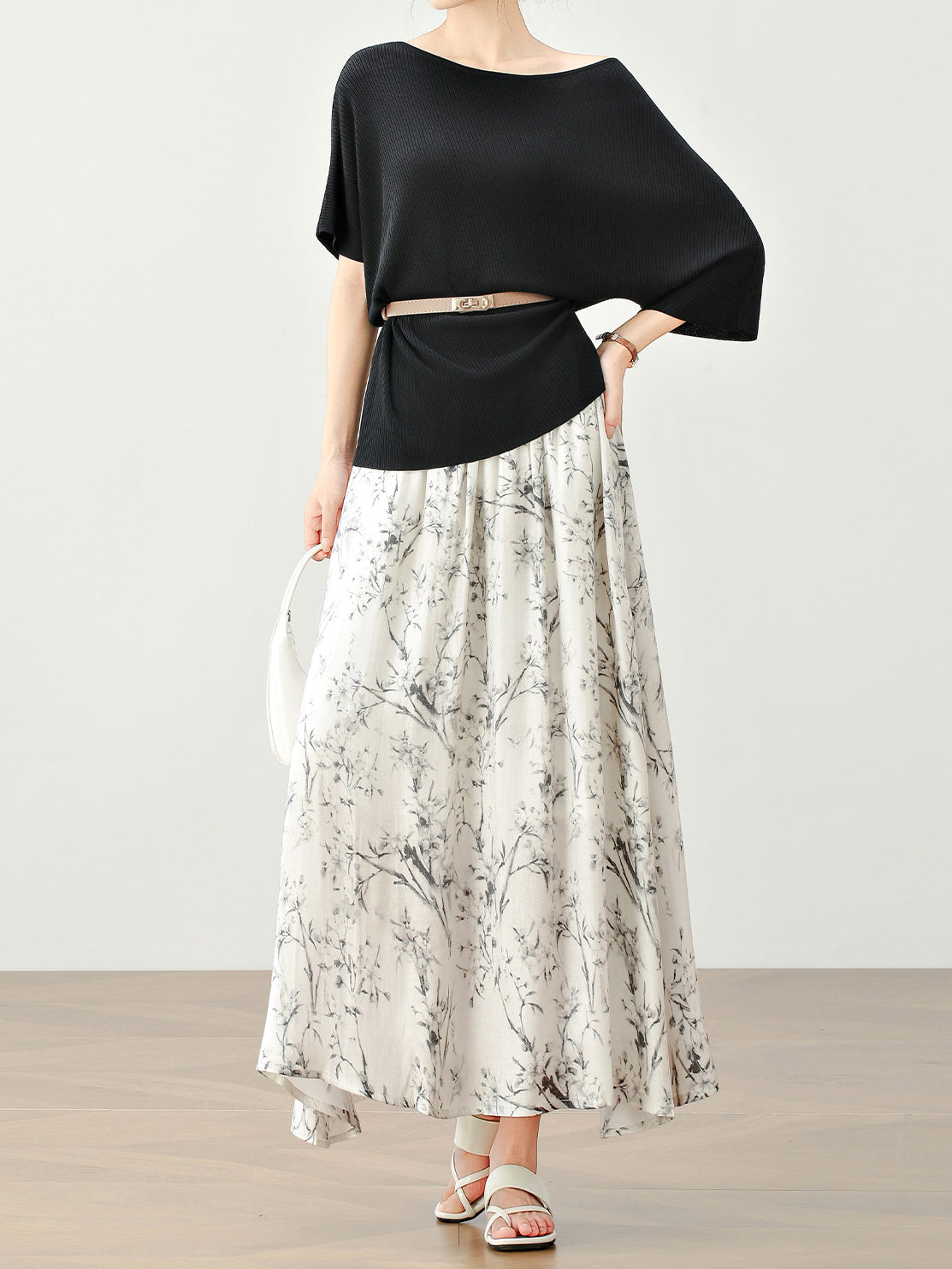 派手すぎない上品な深みのあるカラーと花柄が大人の落ち着きを感じさせる一着。