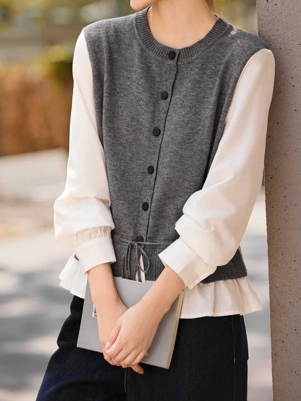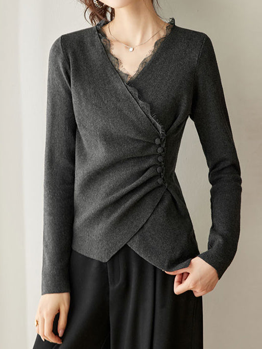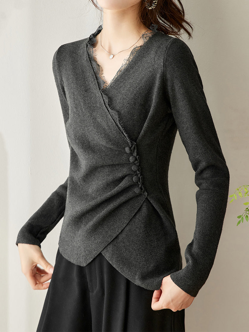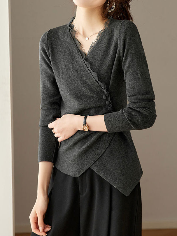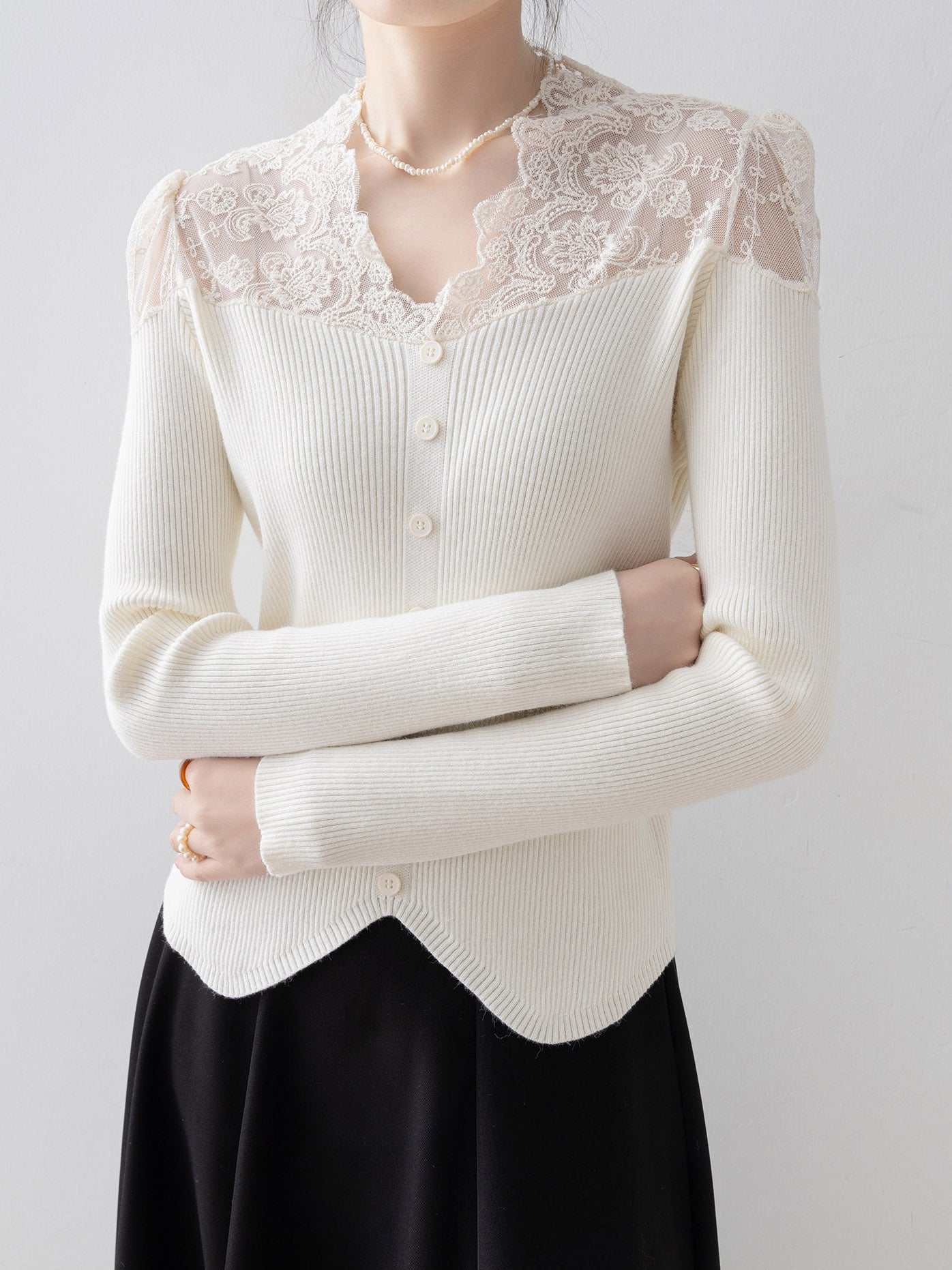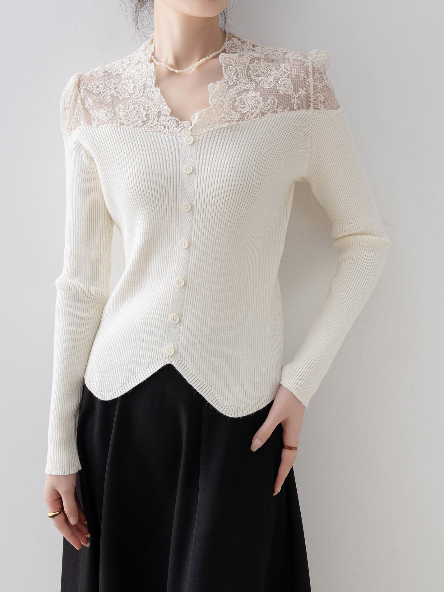 レースドッキングクロスデザインサイドボタンニット 3色入