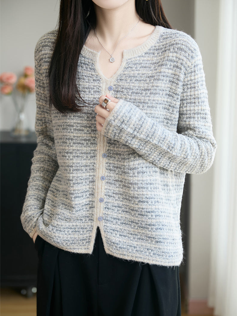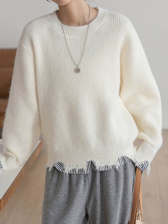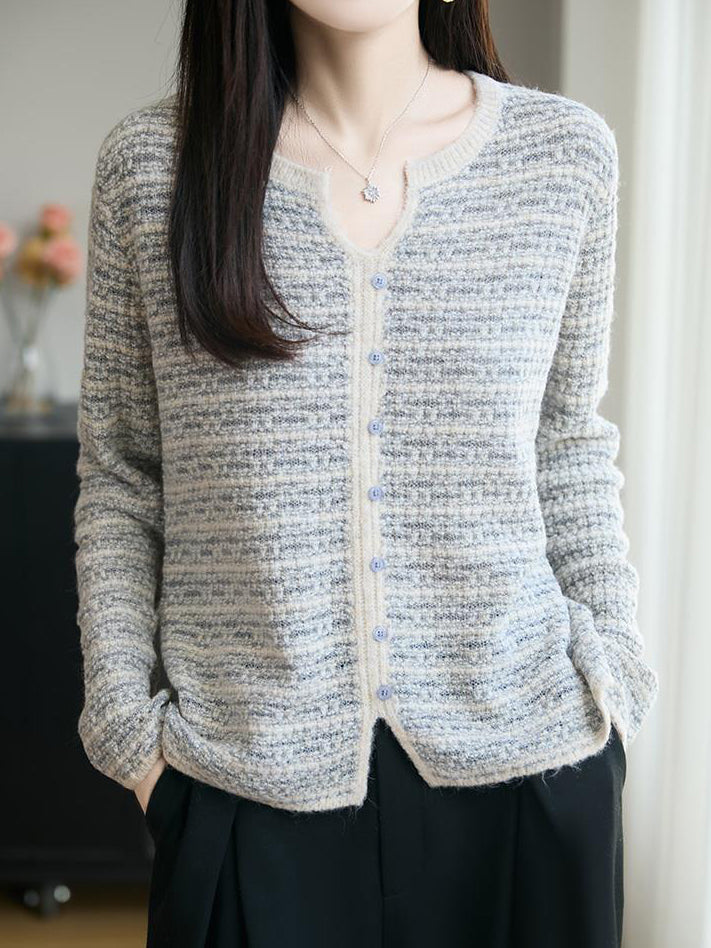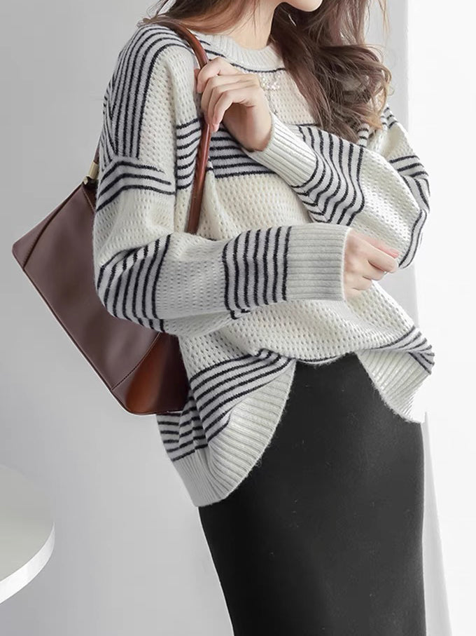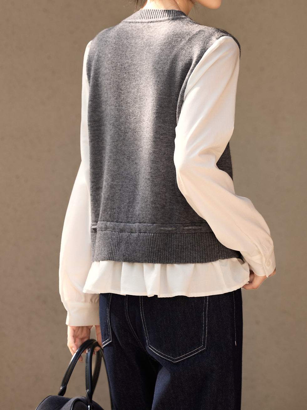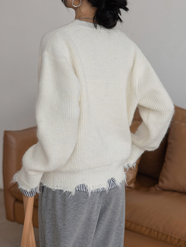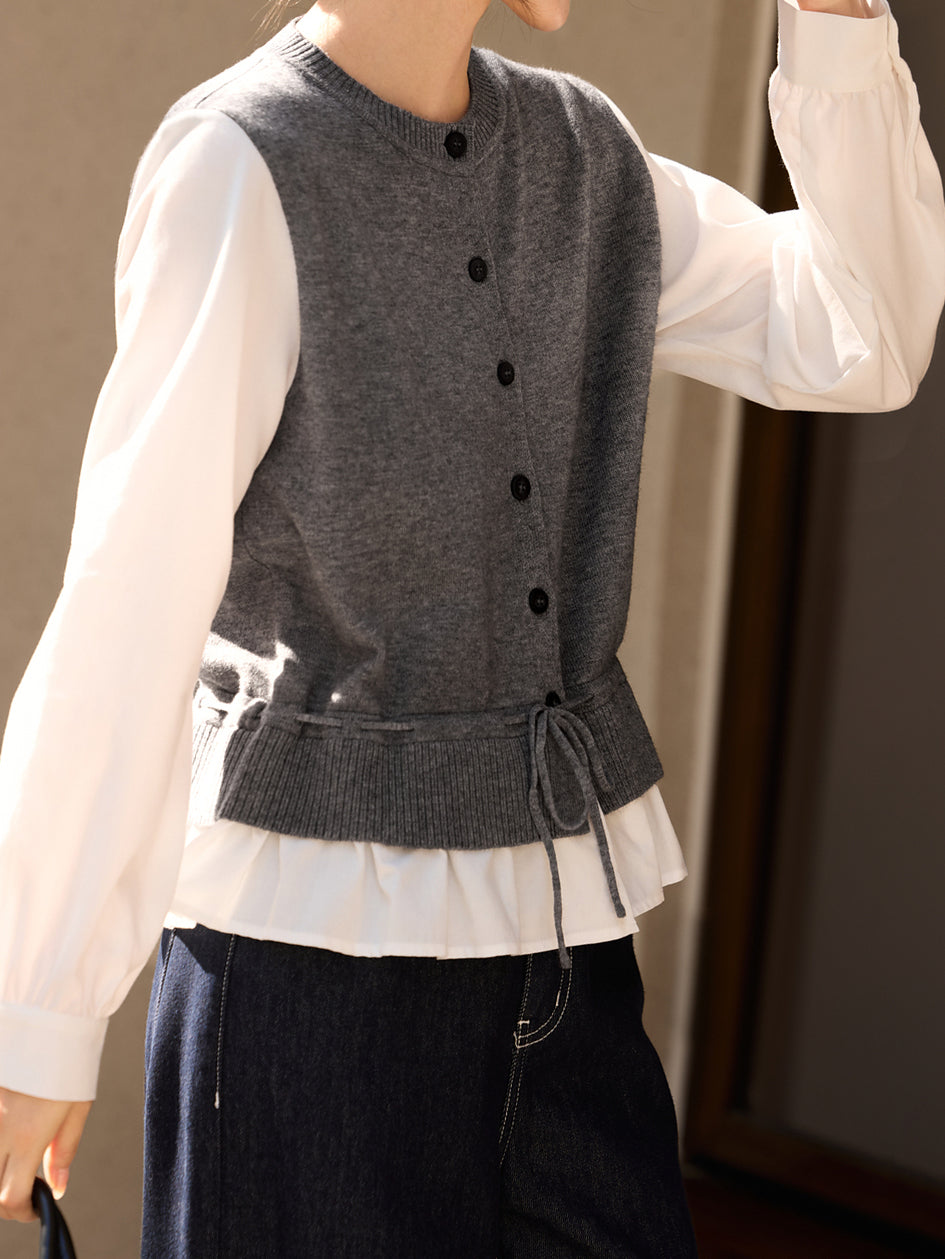 レースドッキングクロスデザインサイドボタンニット 3色入