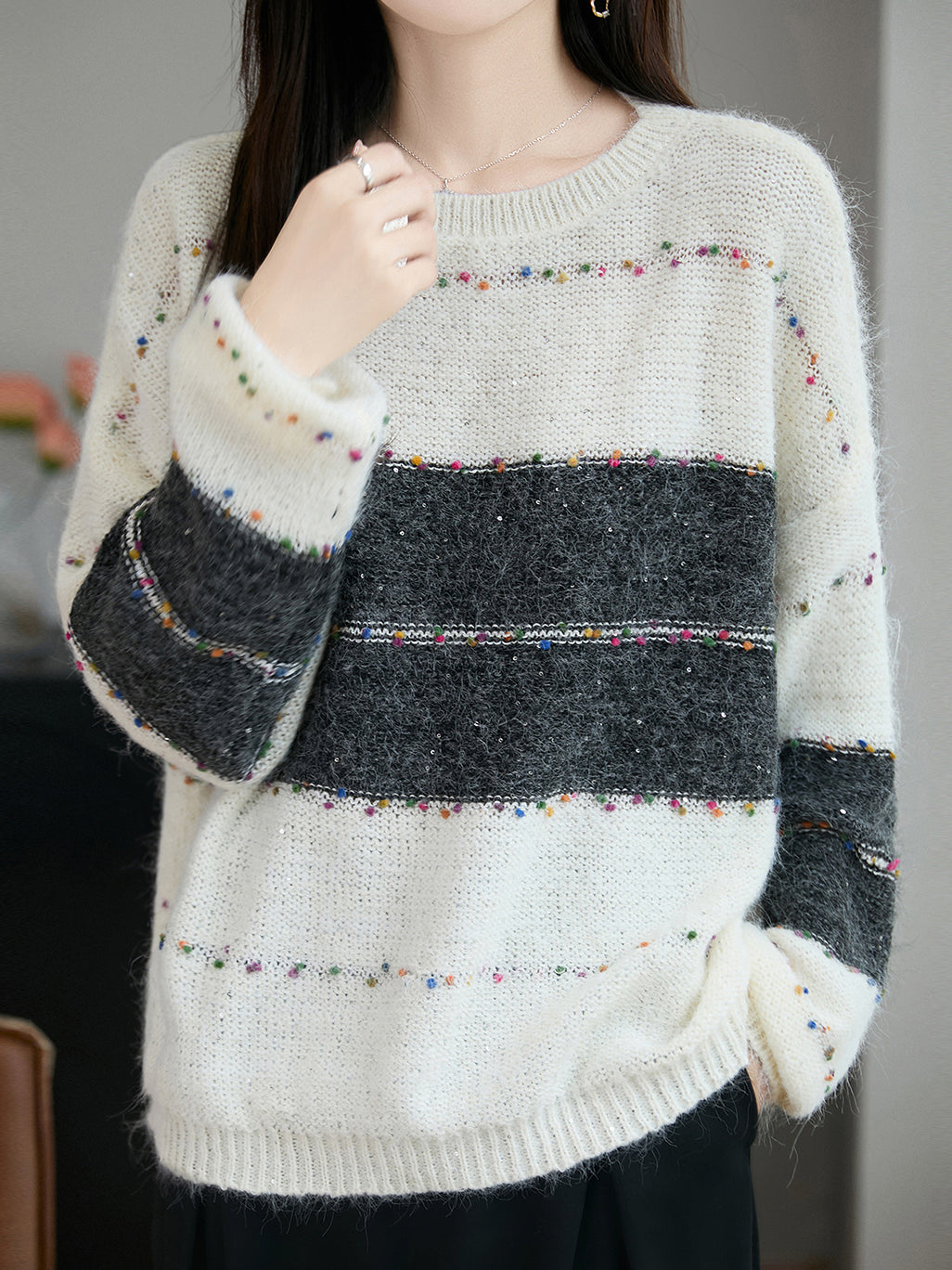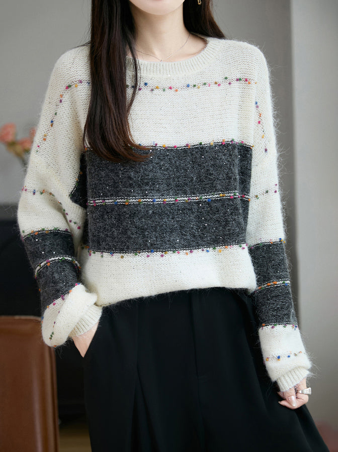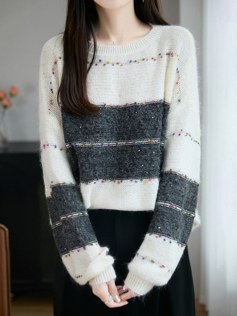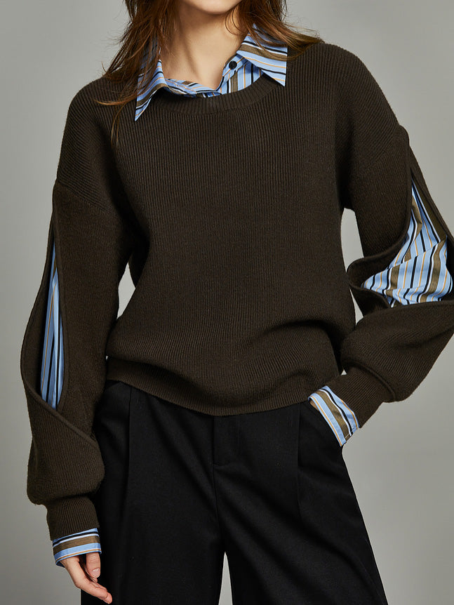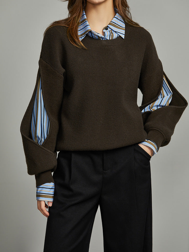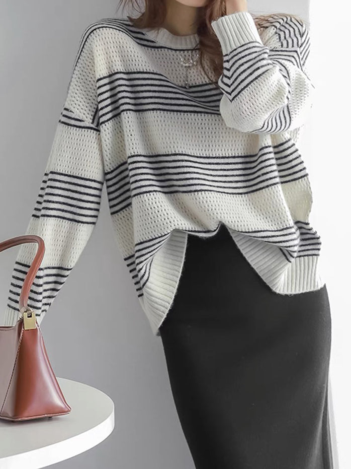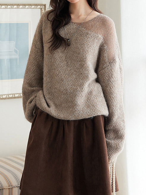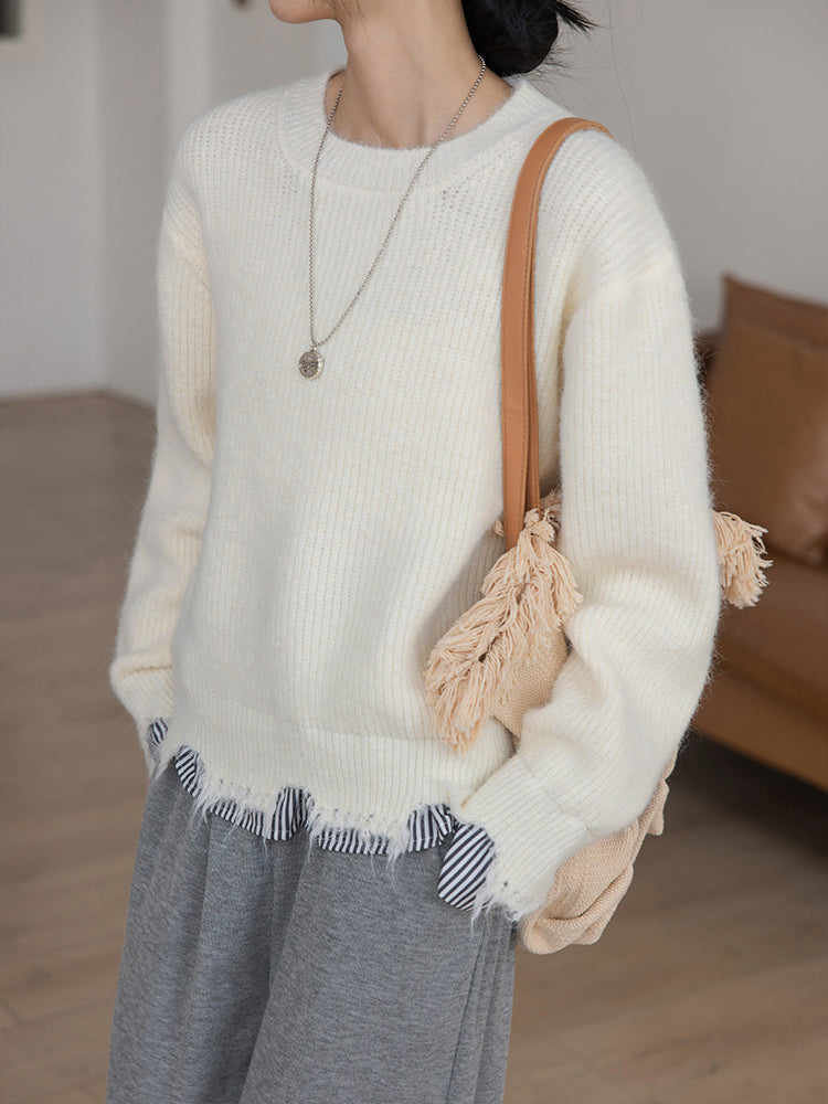 レースドッキングクロスデザインサイドボタンニット 3色入