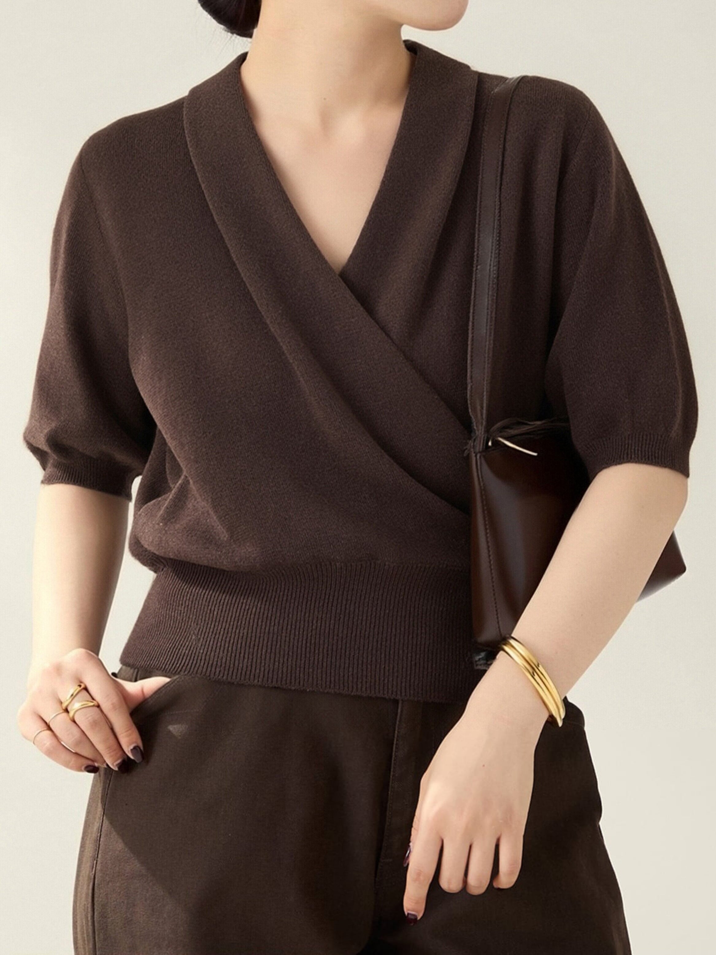 カシュクール半袖ニット 4色入