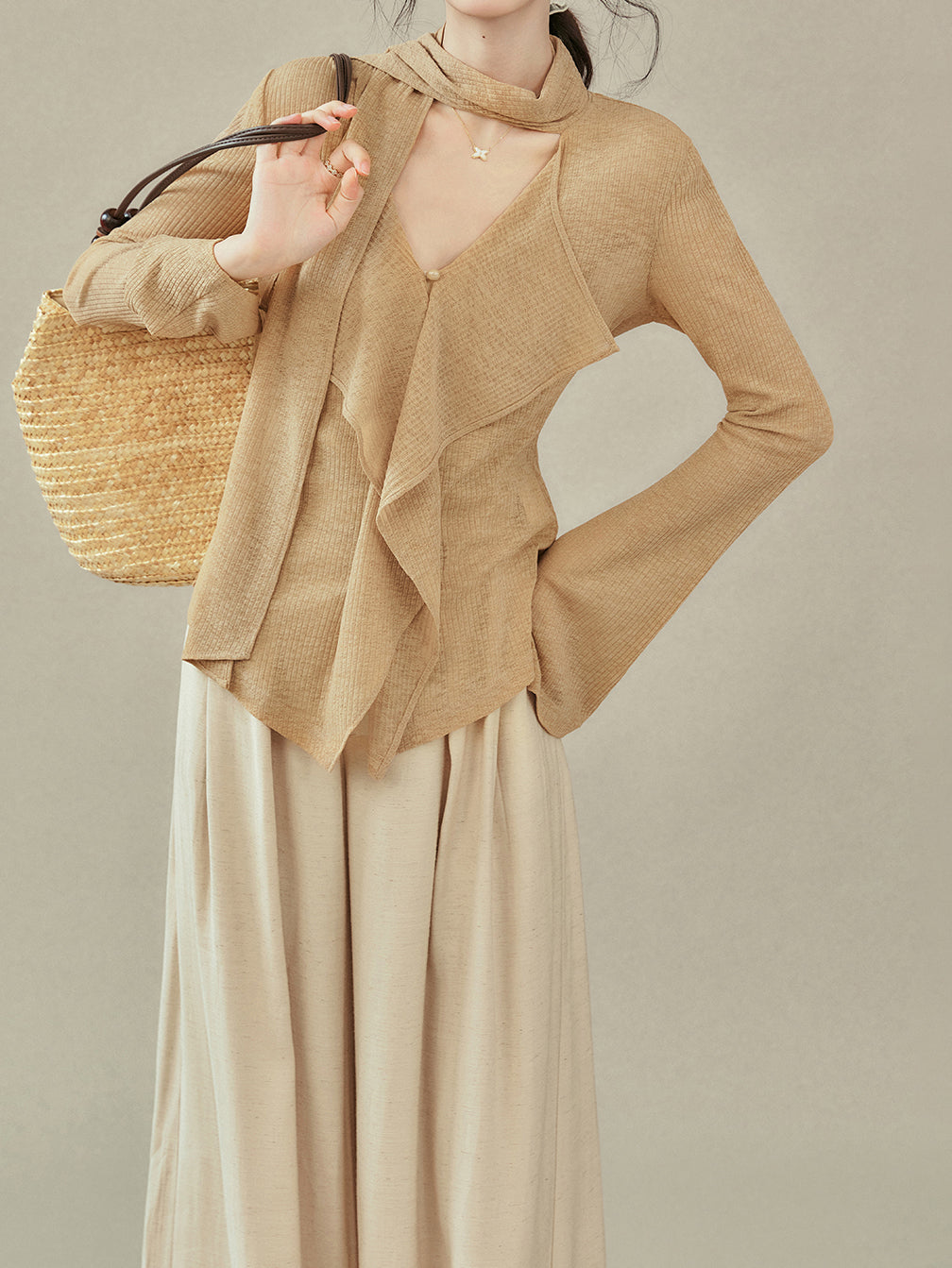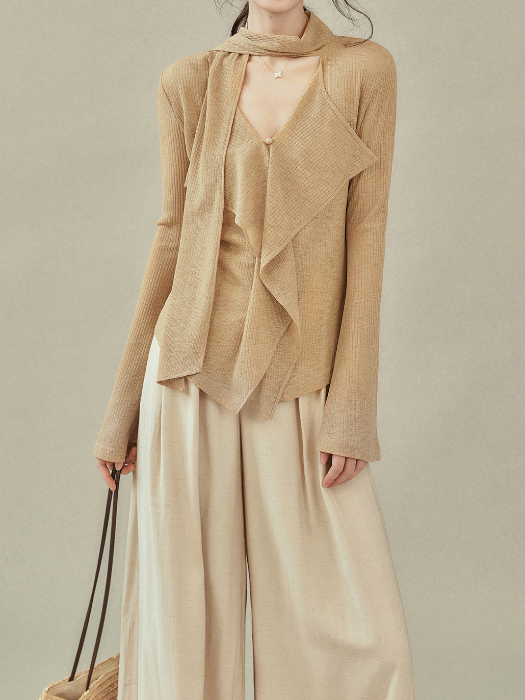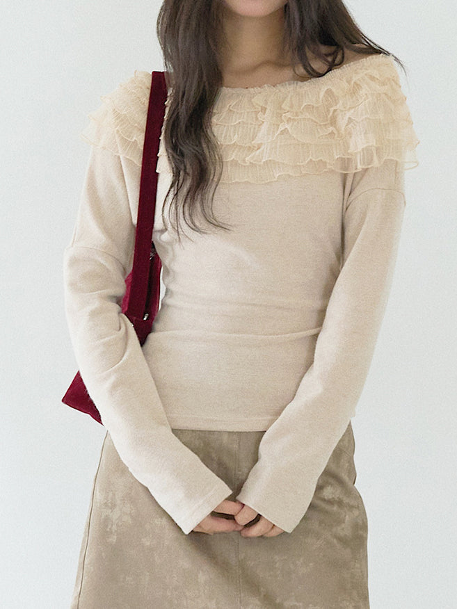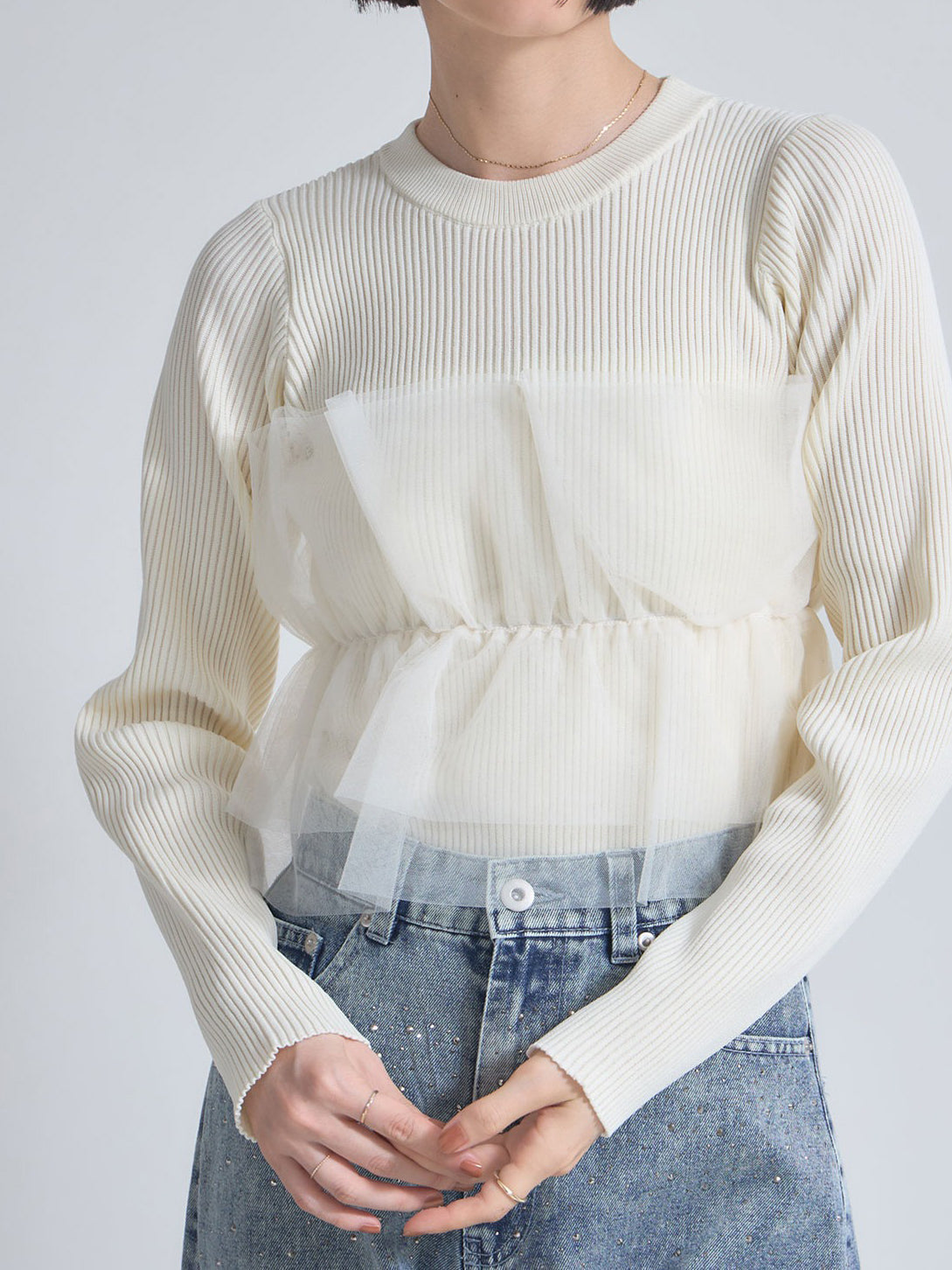 フロントラッフルデザインニットトップス<セットアップ可能>
