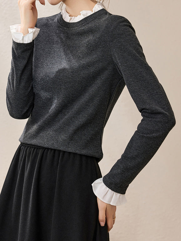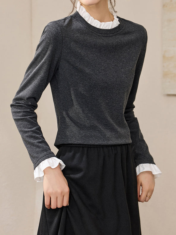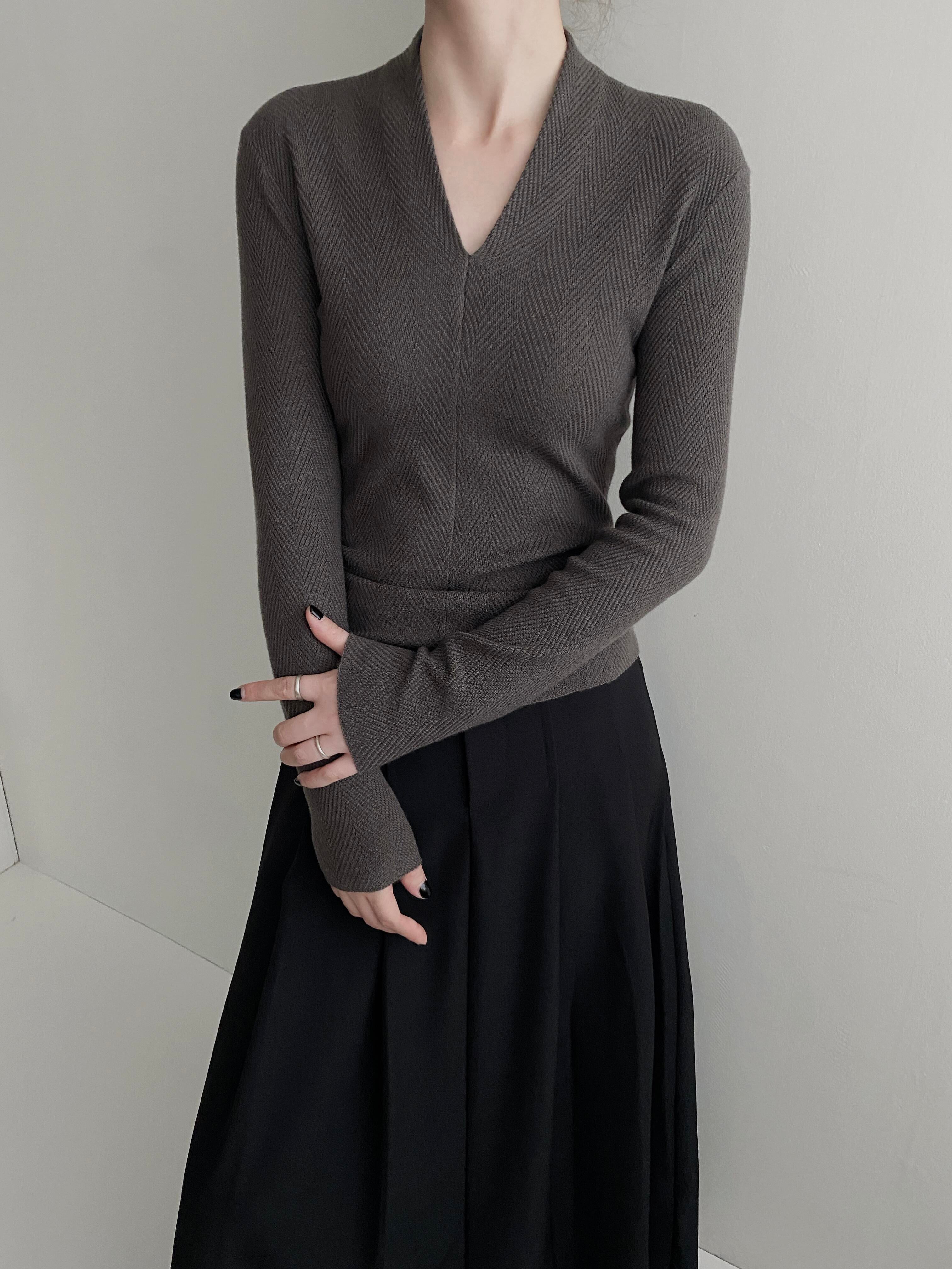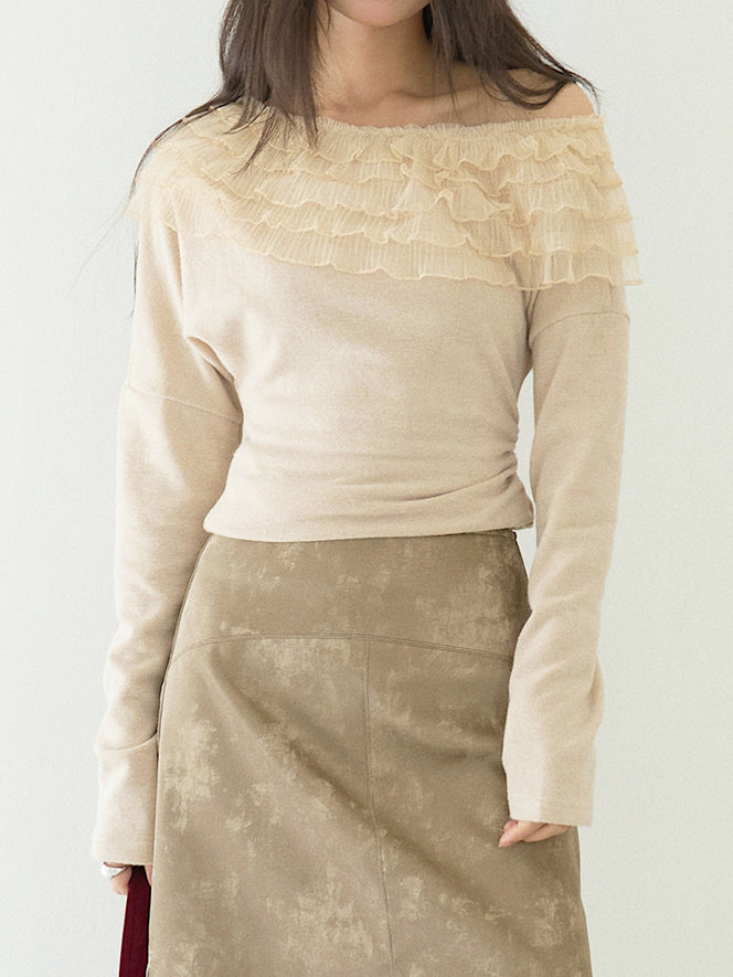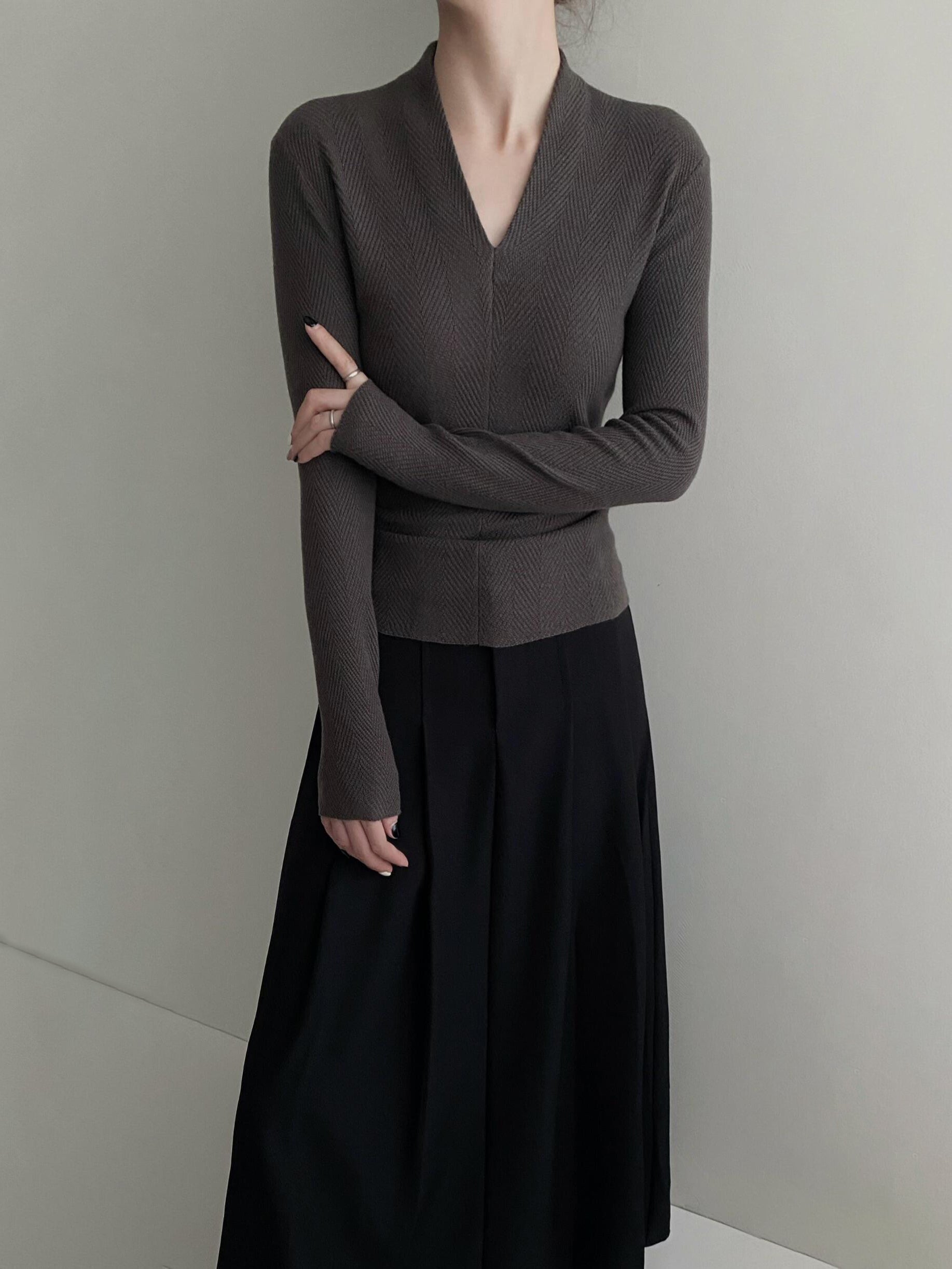 フロントラッフルデザインニットトップス<セットアップ可能>