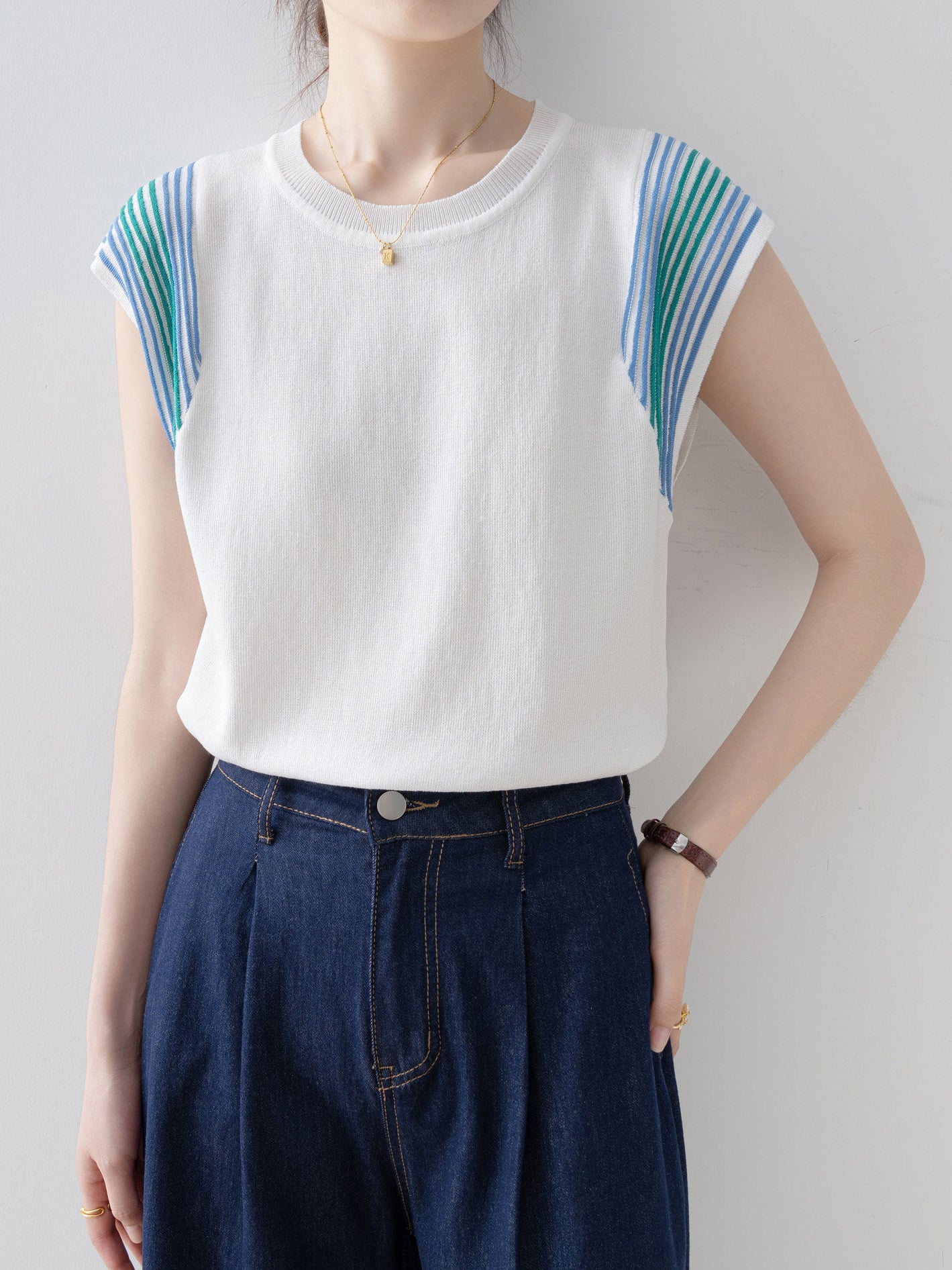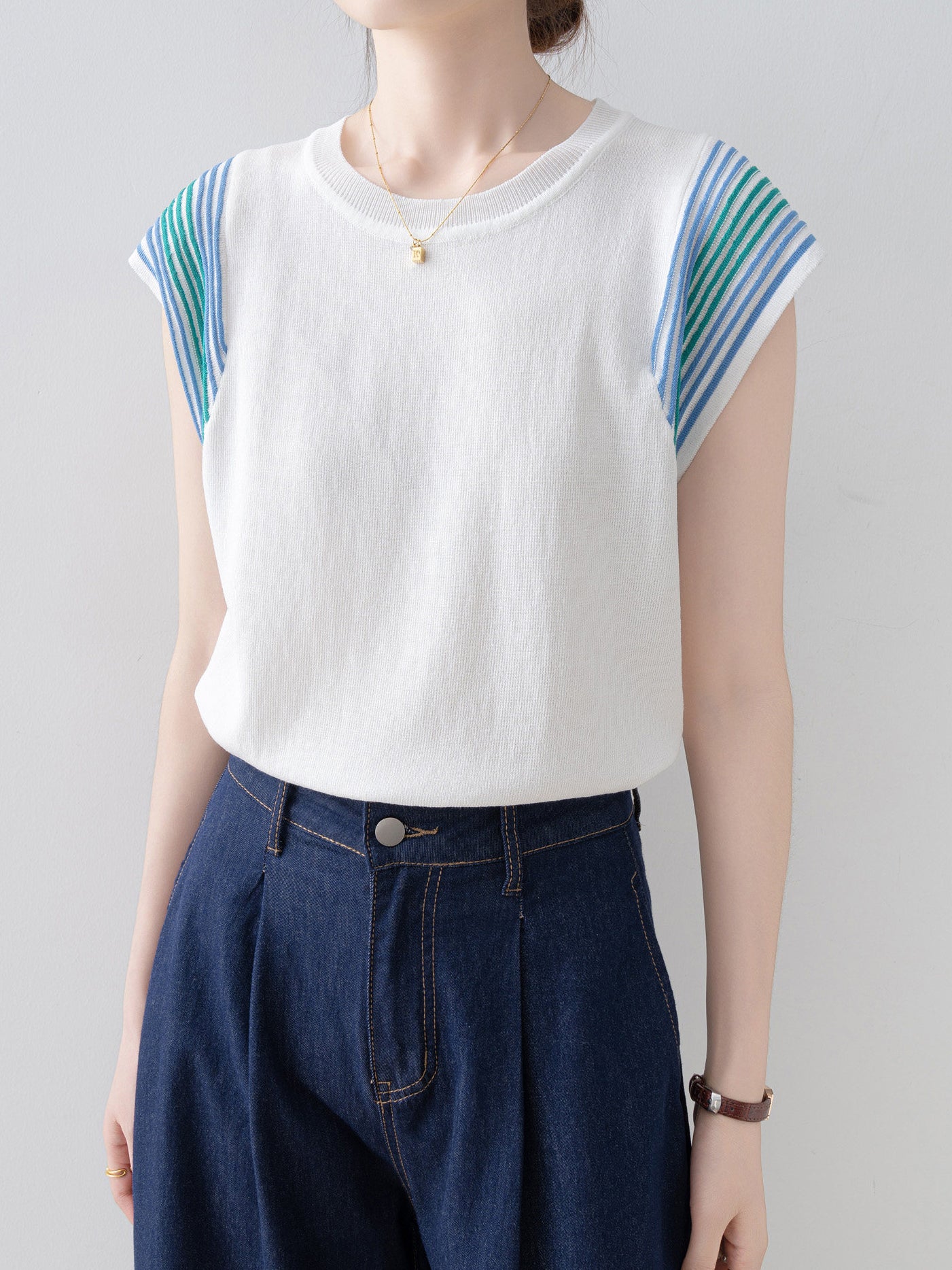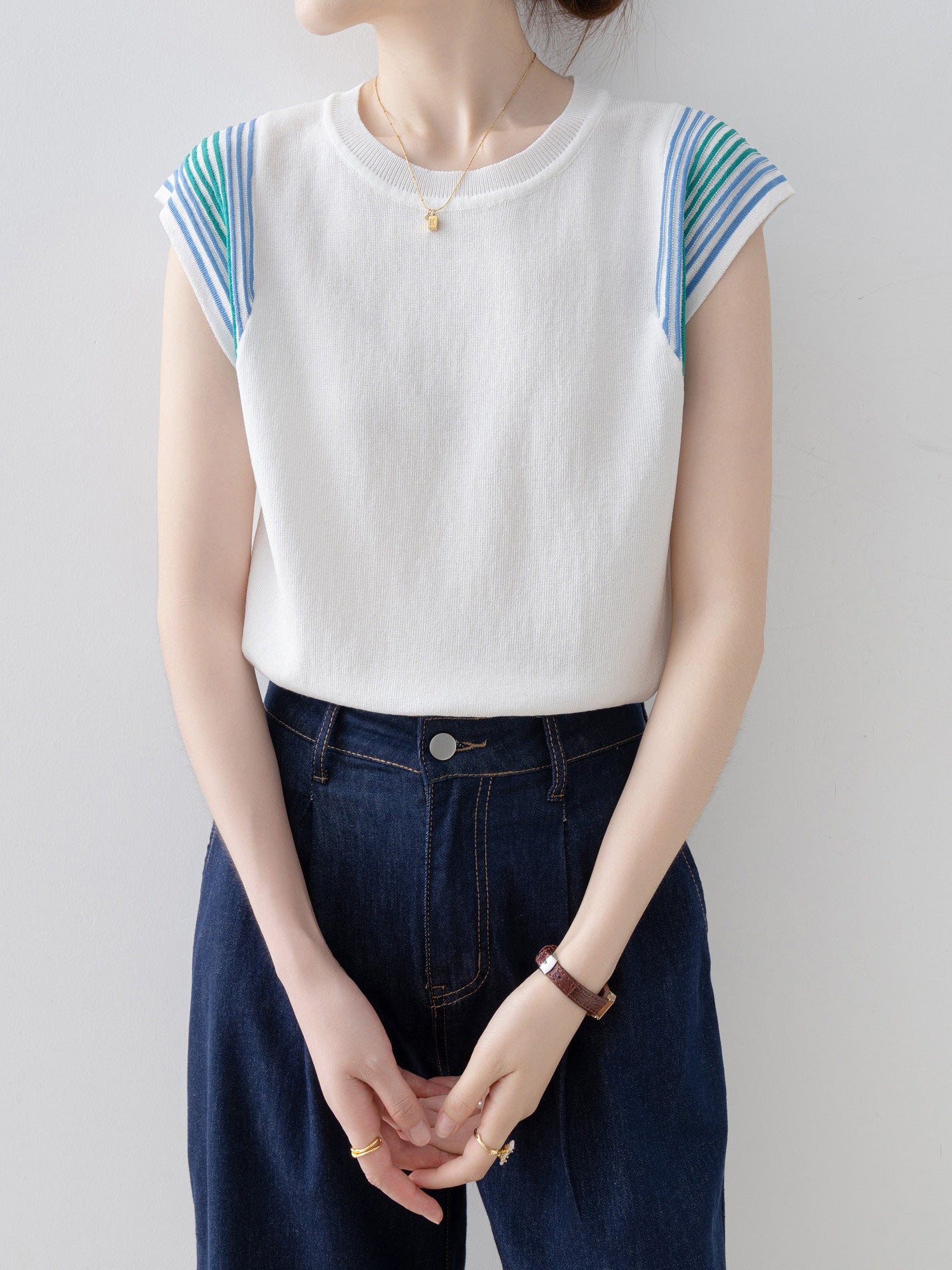 配色ショルダーラインフレンチニット