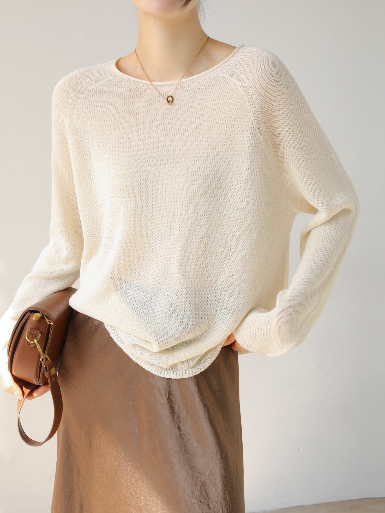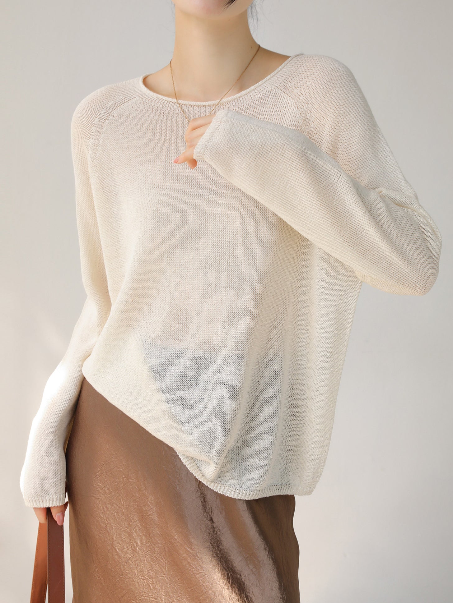 畦編みクルーネックニットプルオーバー 3色入