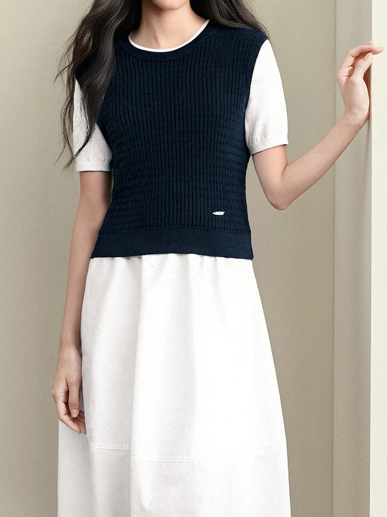 キーネックレイヤードデザインニット 2色入