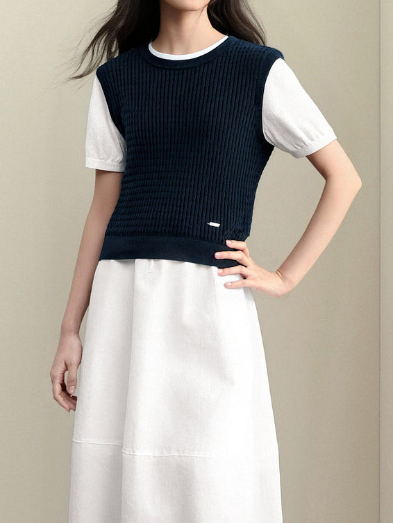 パフ袖ドッキング畦編みニット