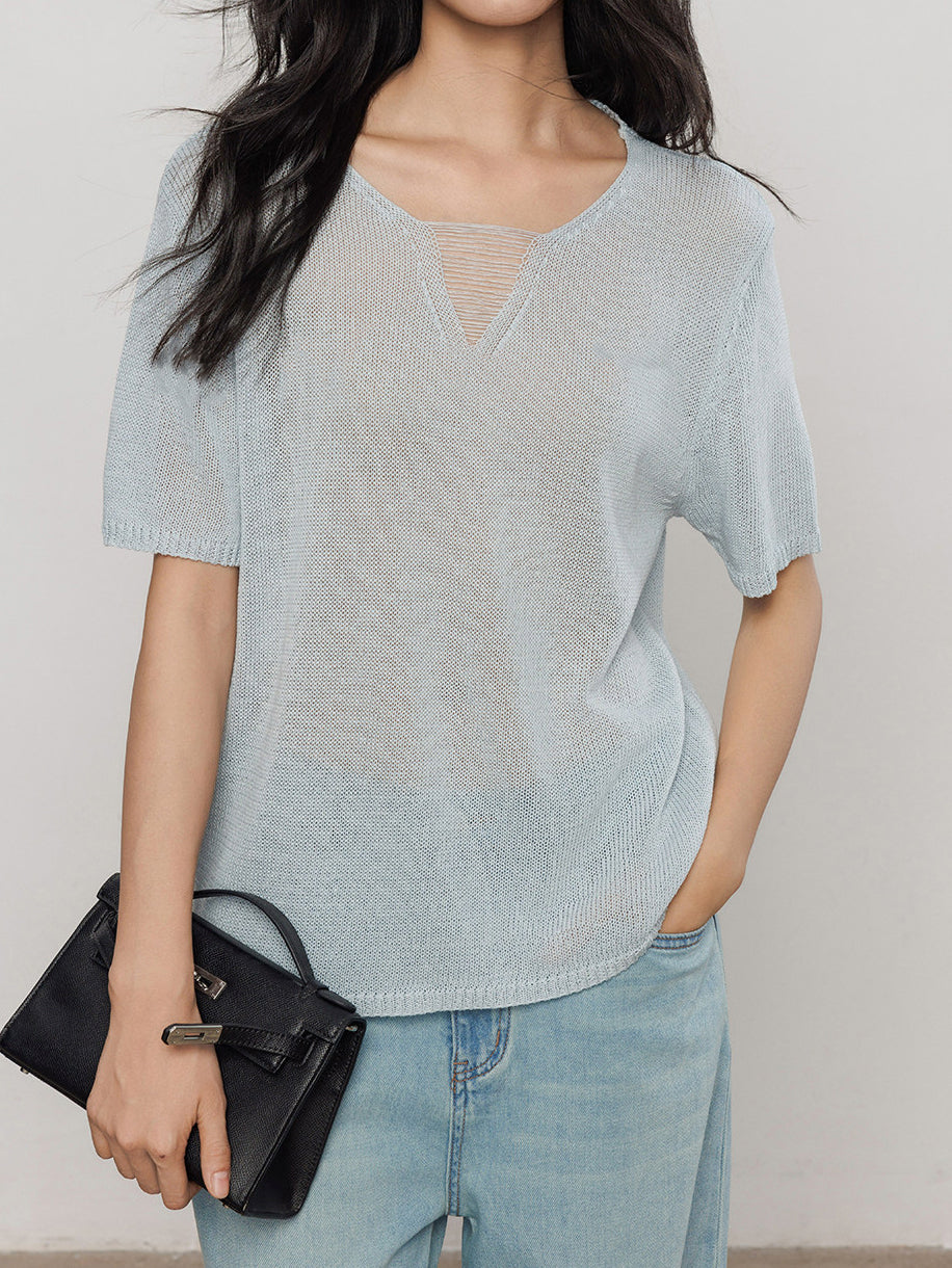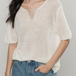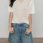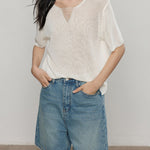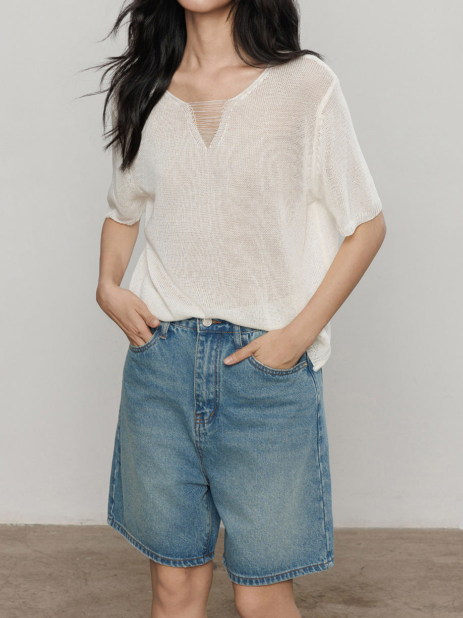 ・定番デニムと合わせて、清涼感のある大人カジュアルなスタイルに。