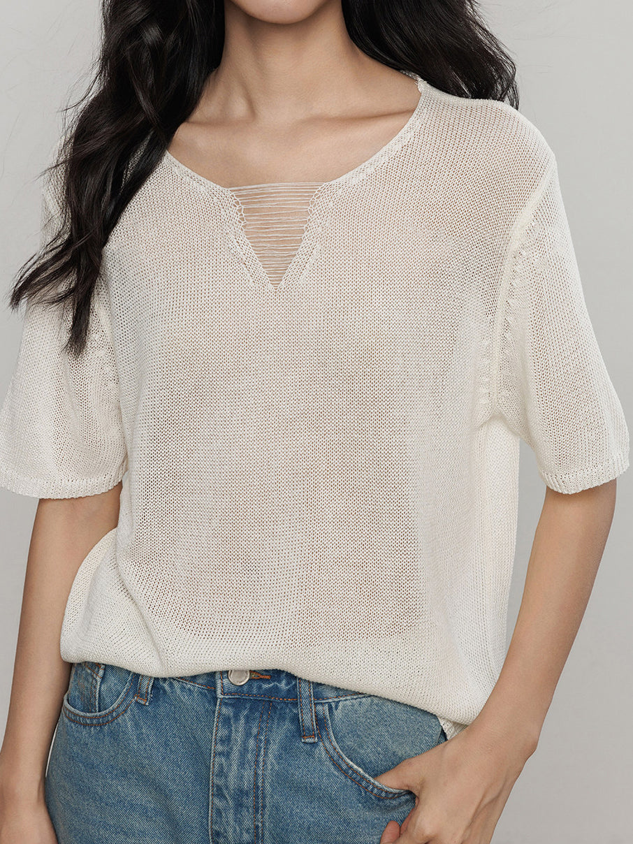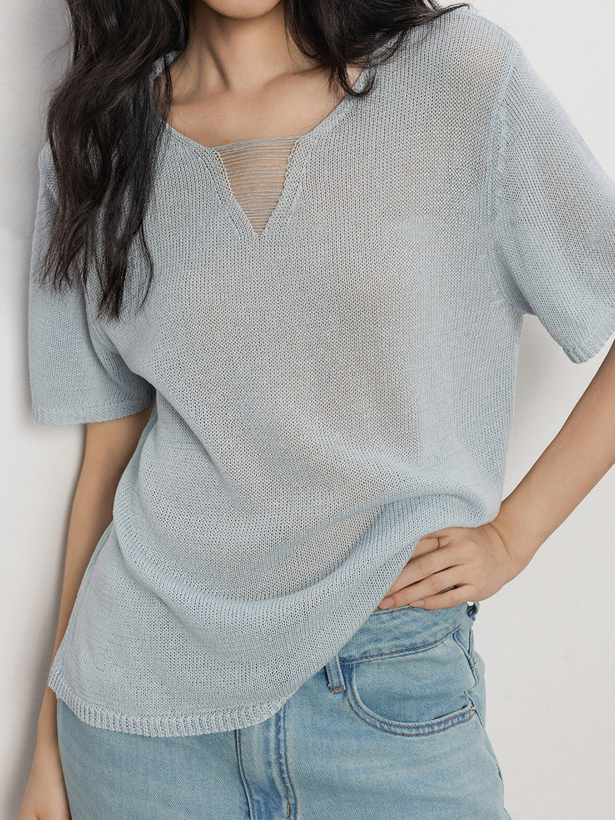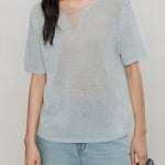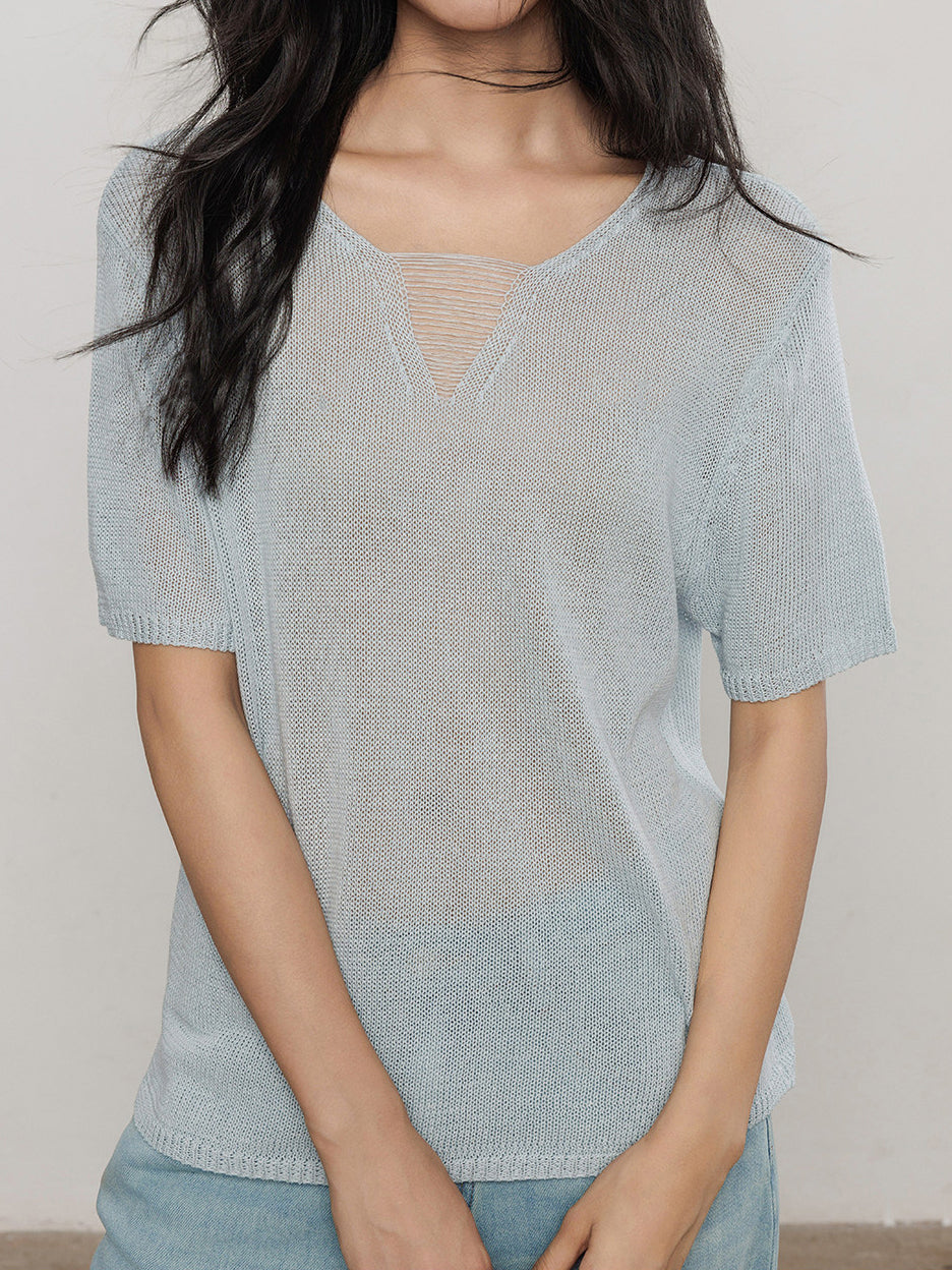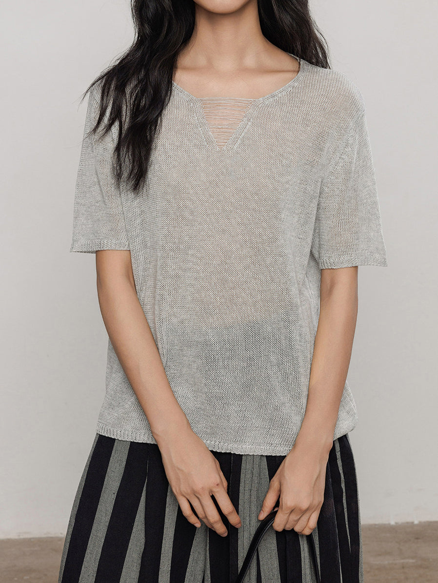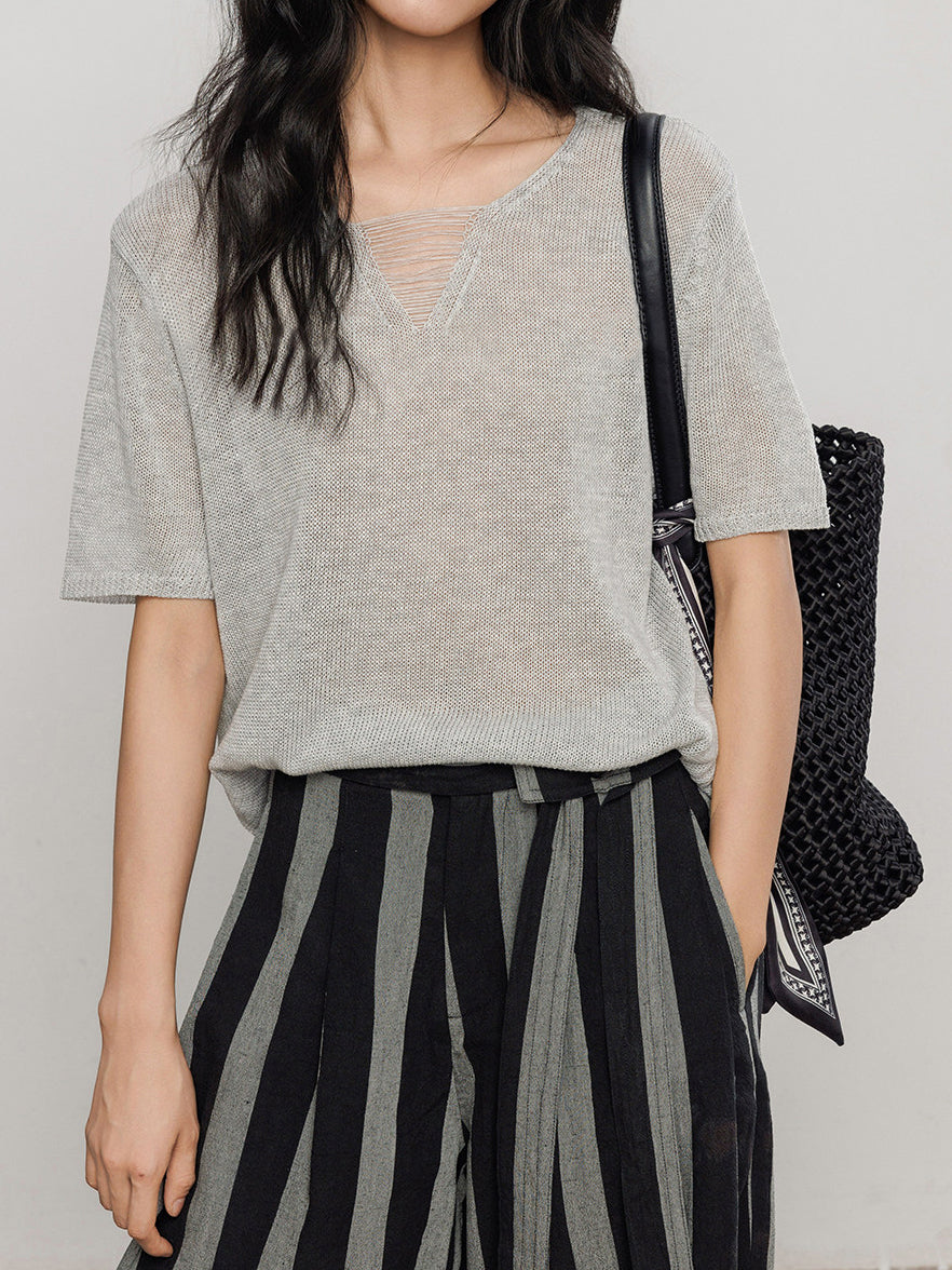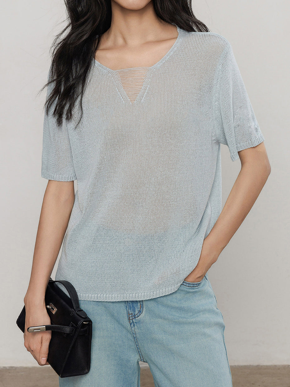 メッシュ組織ですが、目をそこまで大きくしていないため、適度なシアー感でトレンドを取り入れやすいデザインです。