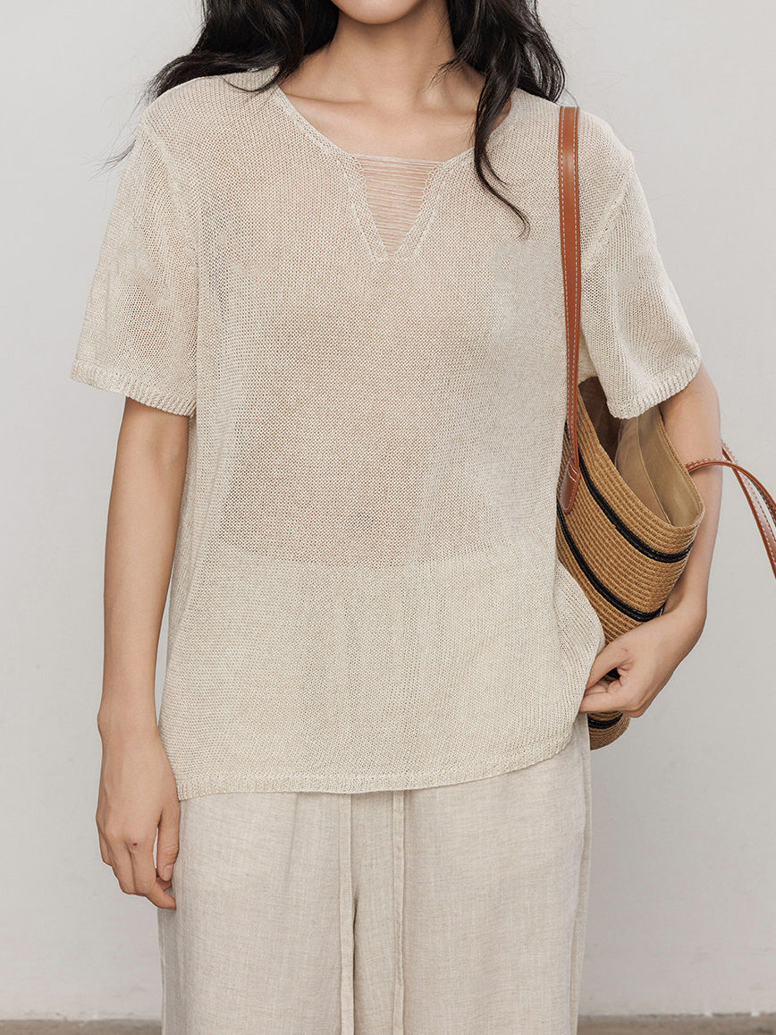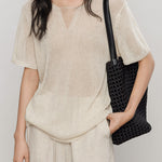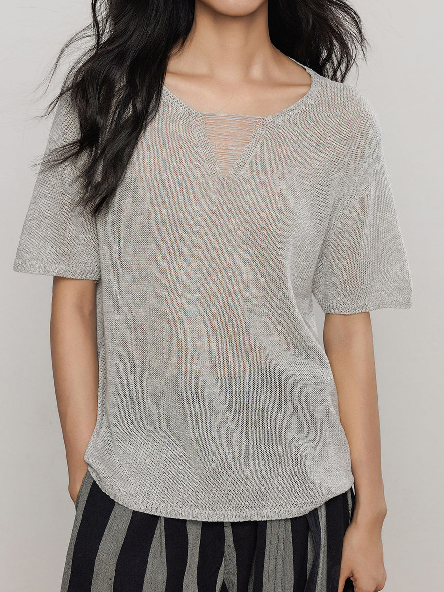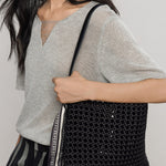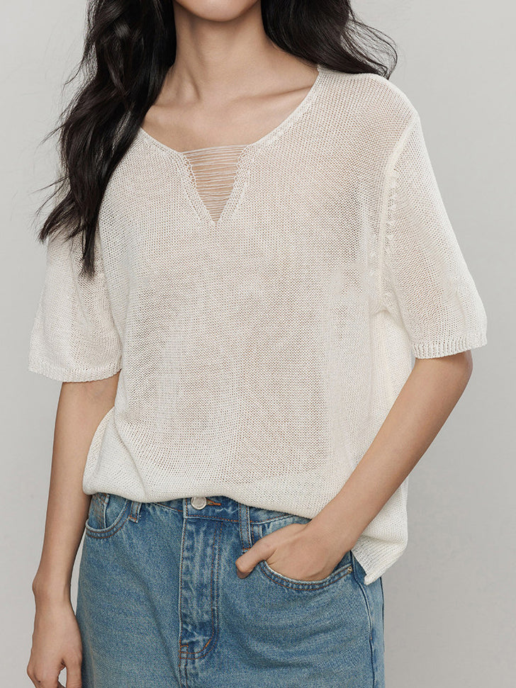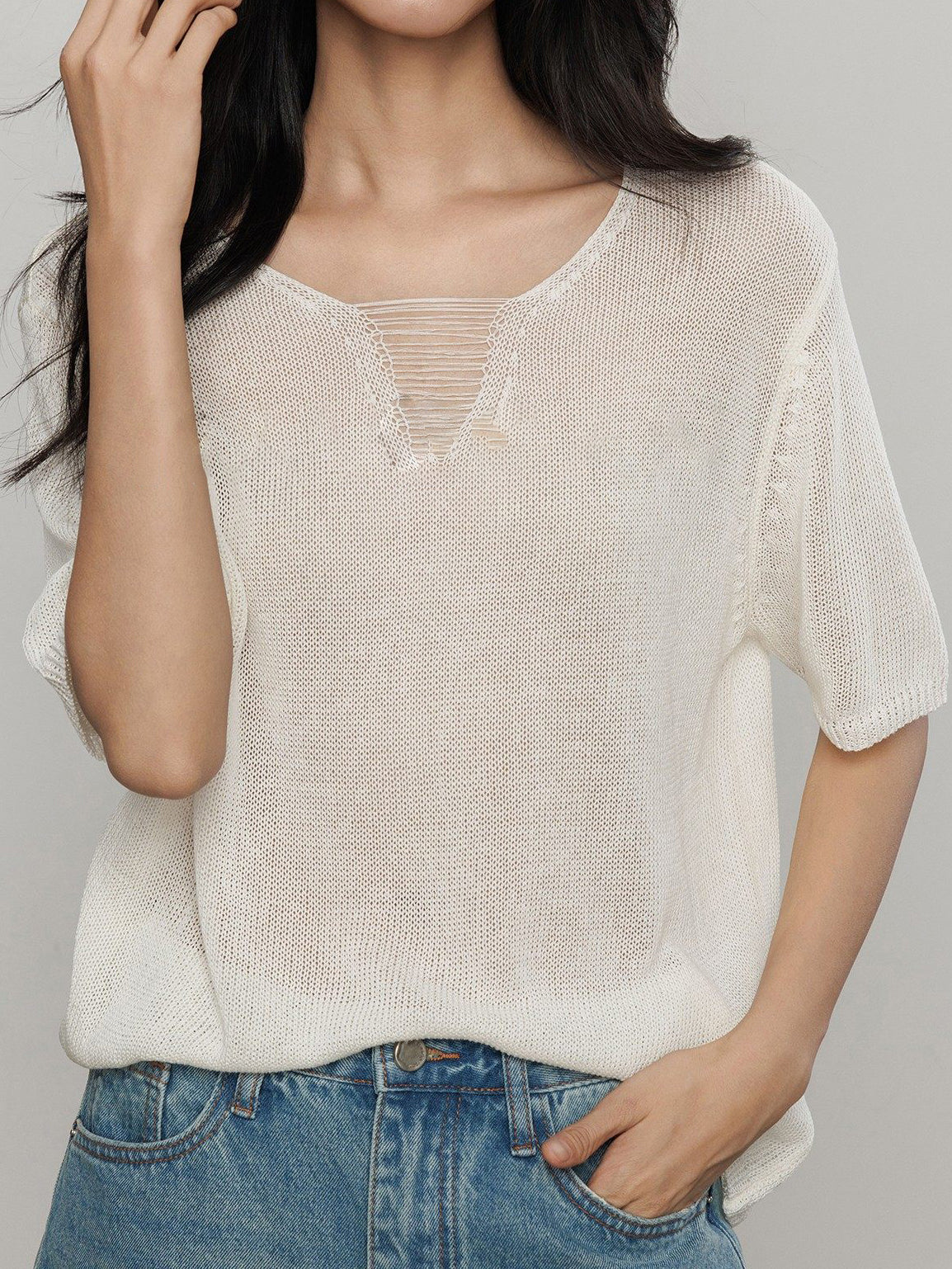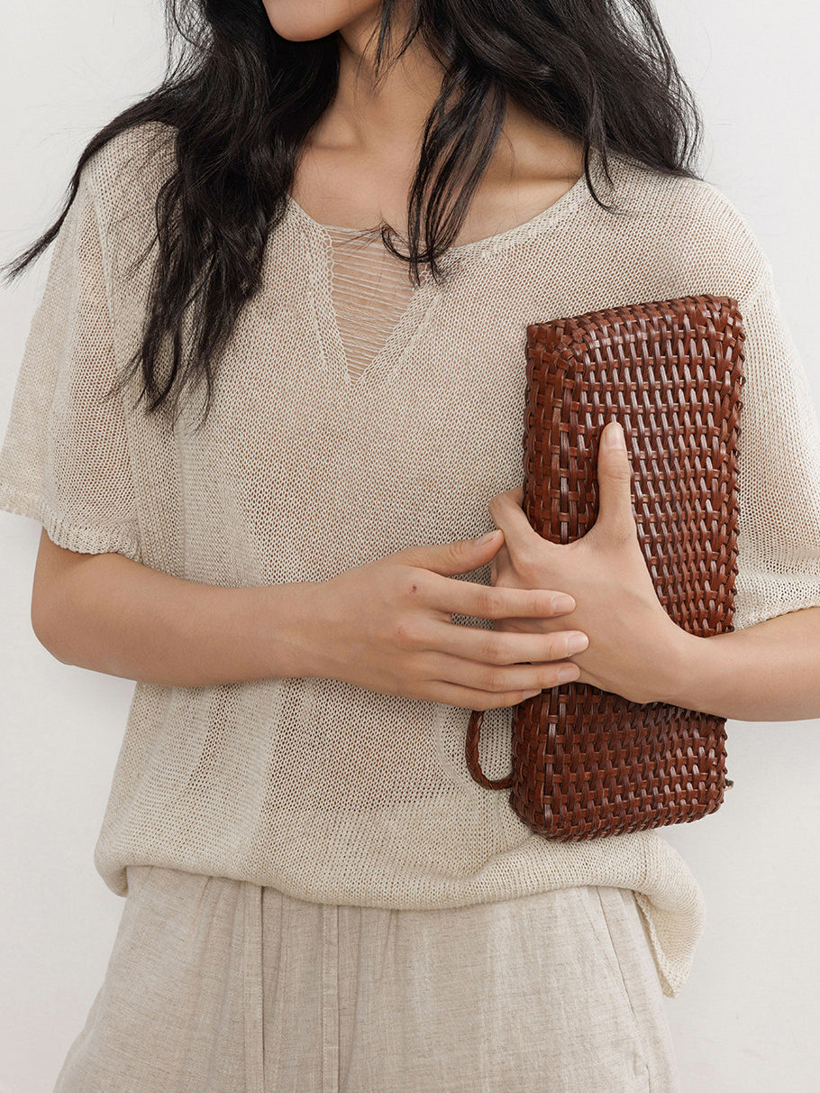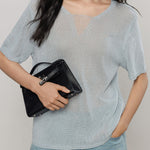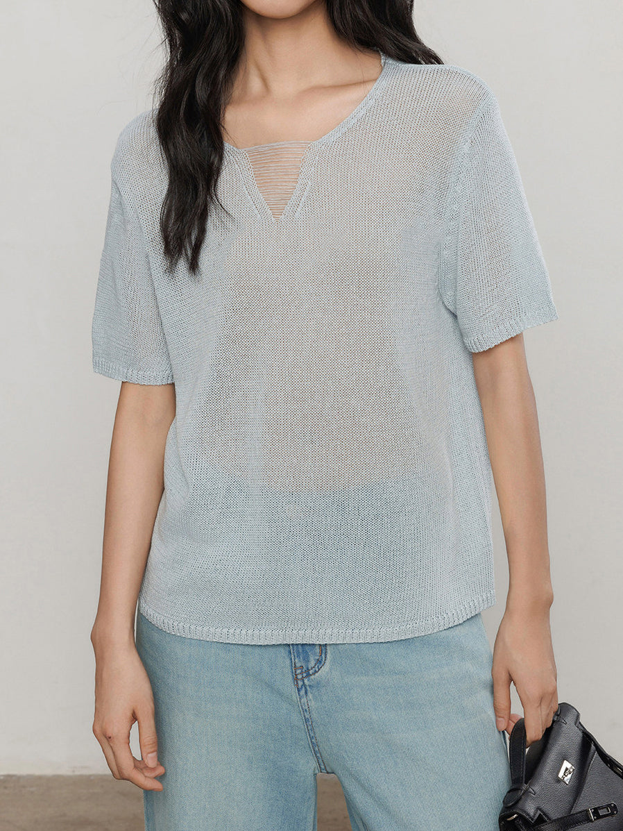 メッシュ組織ですが、目をそこまで大きくしていないため、適度なシアー感でトレンドを取り入れやすいデザインです。