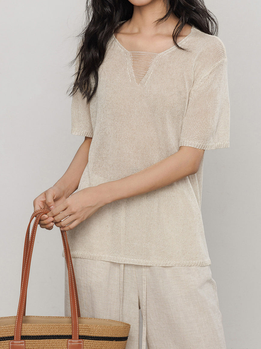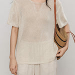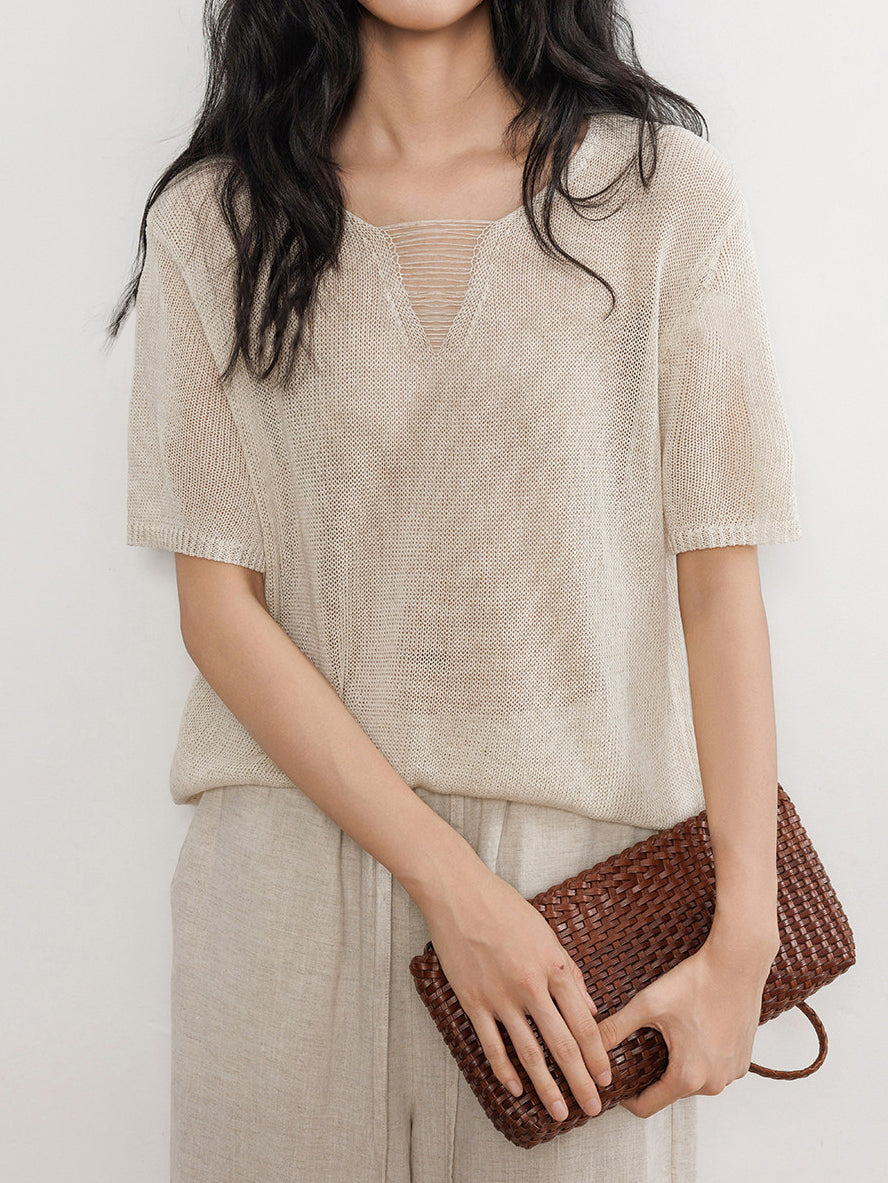 ☆首元にはシアー感のあるデザインを施し、デコルテラインをきれいに見せて女性らしさを際立たせます。