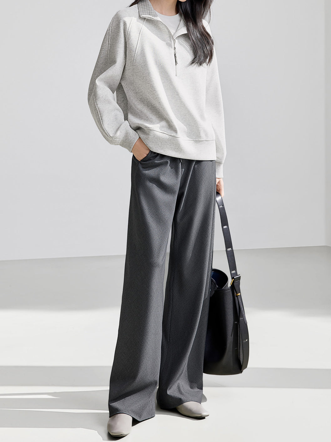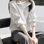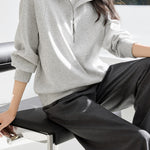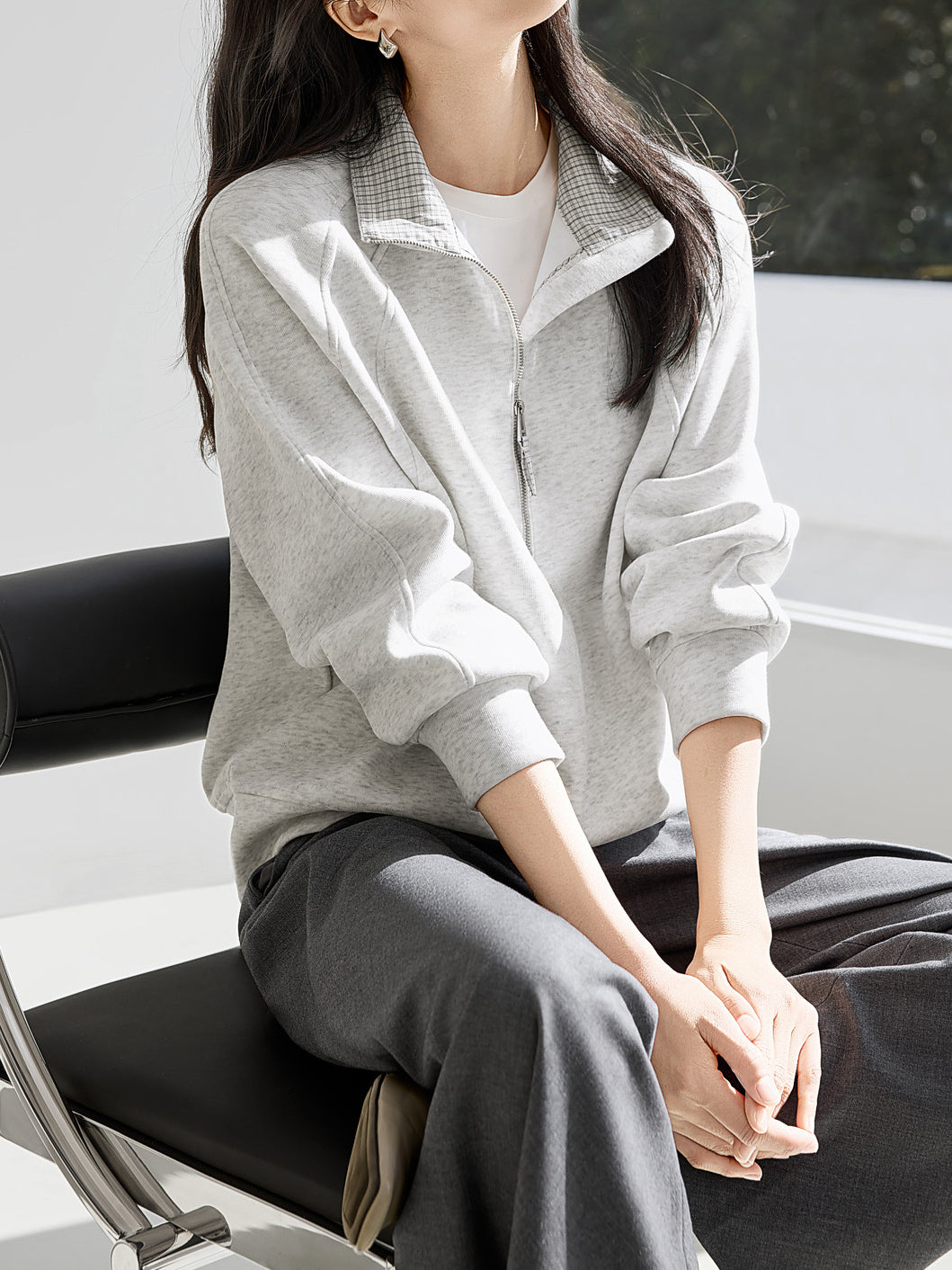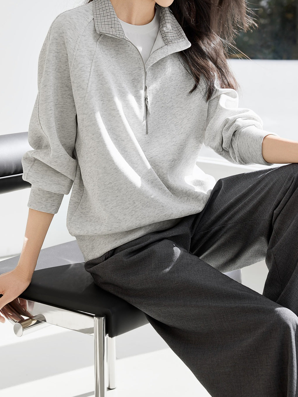 ☆首元にハーフジップが付いており、ファスナーの開閉で温度調節や抜け感を自由に演出できます。