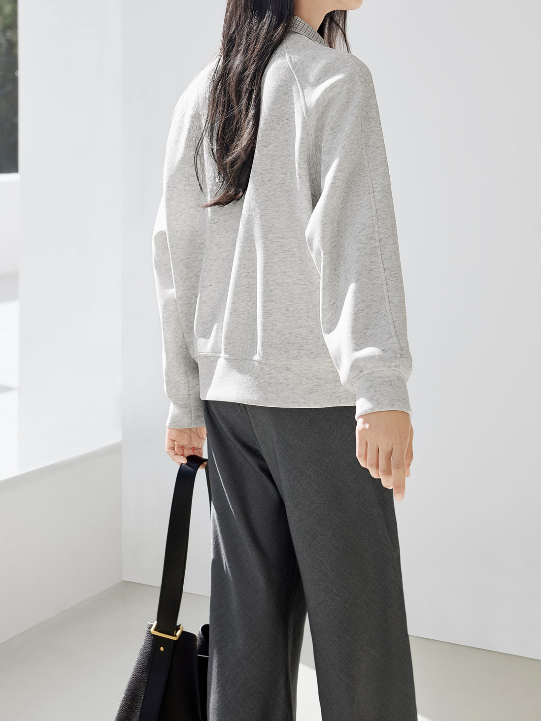 ☆ラグランスリーブは長めの設定で二の腕をさりげなくカバーしています。
