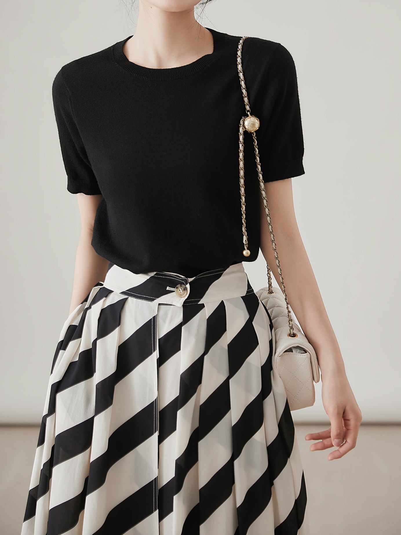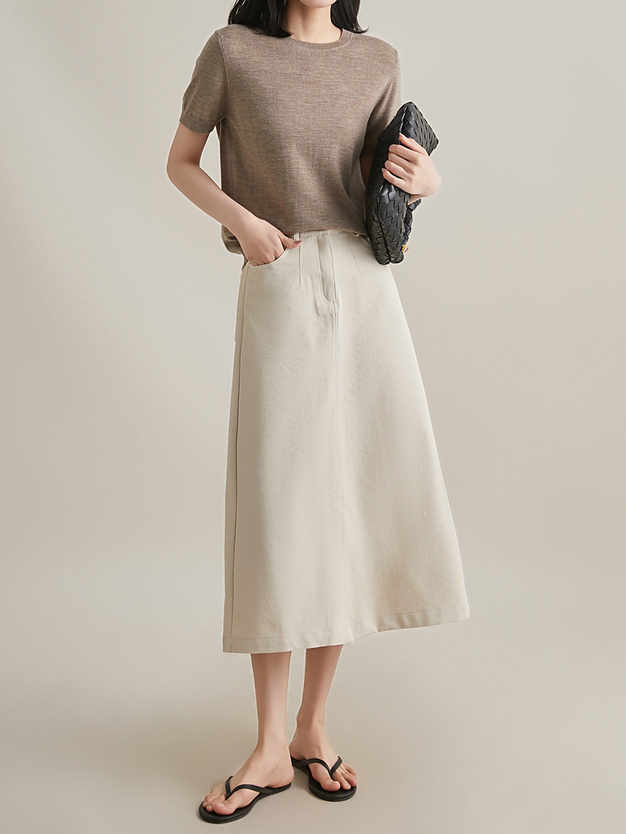 さらっとした素材感が魅力のシンプルスタイル。