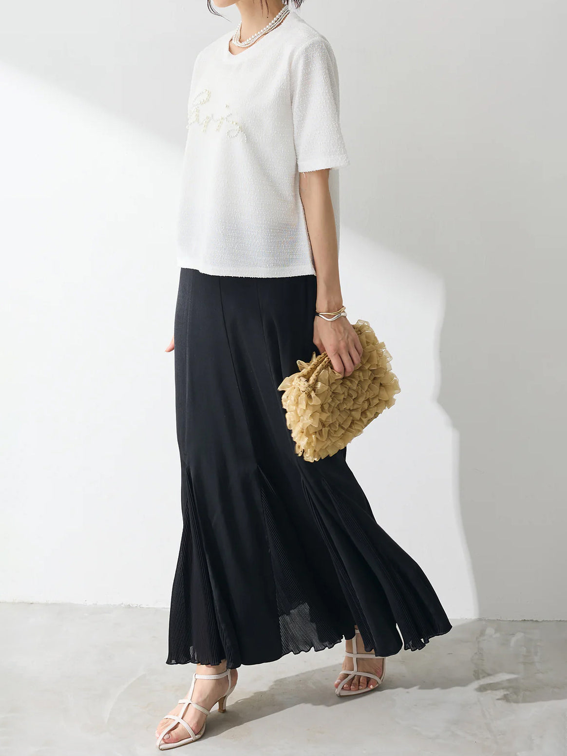 一枚でコーデが華やかに格上げできる、おすすめのアイテムです。