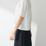 ☆ほどよく肩のラインを落としたゆとりのあるシルエットで、二の腕まわりを自然にカバー。