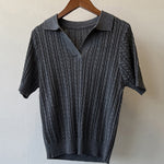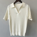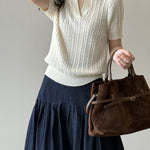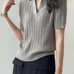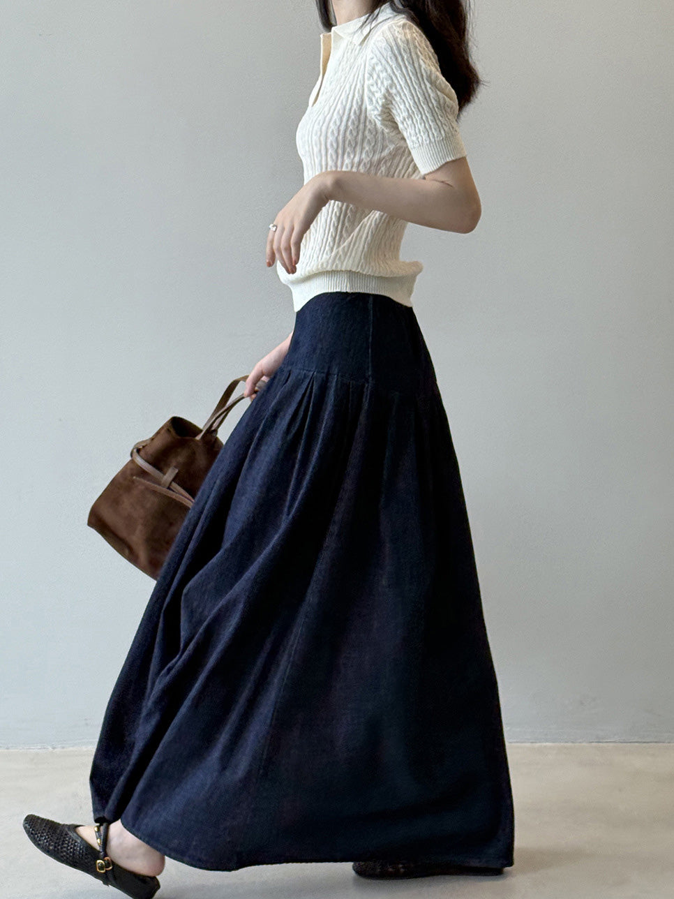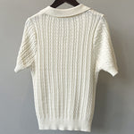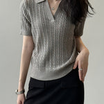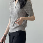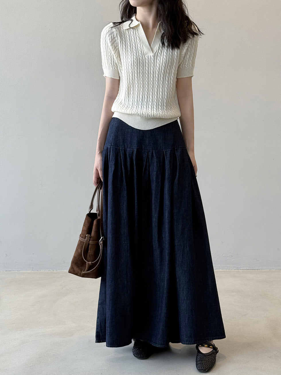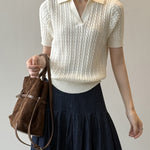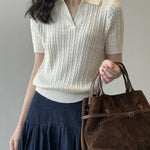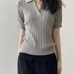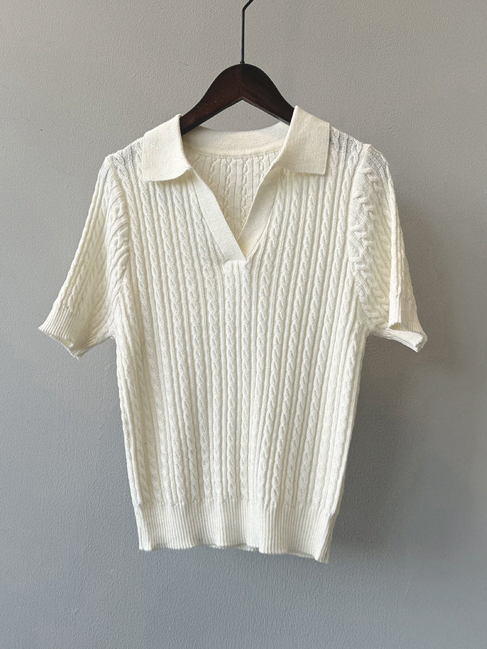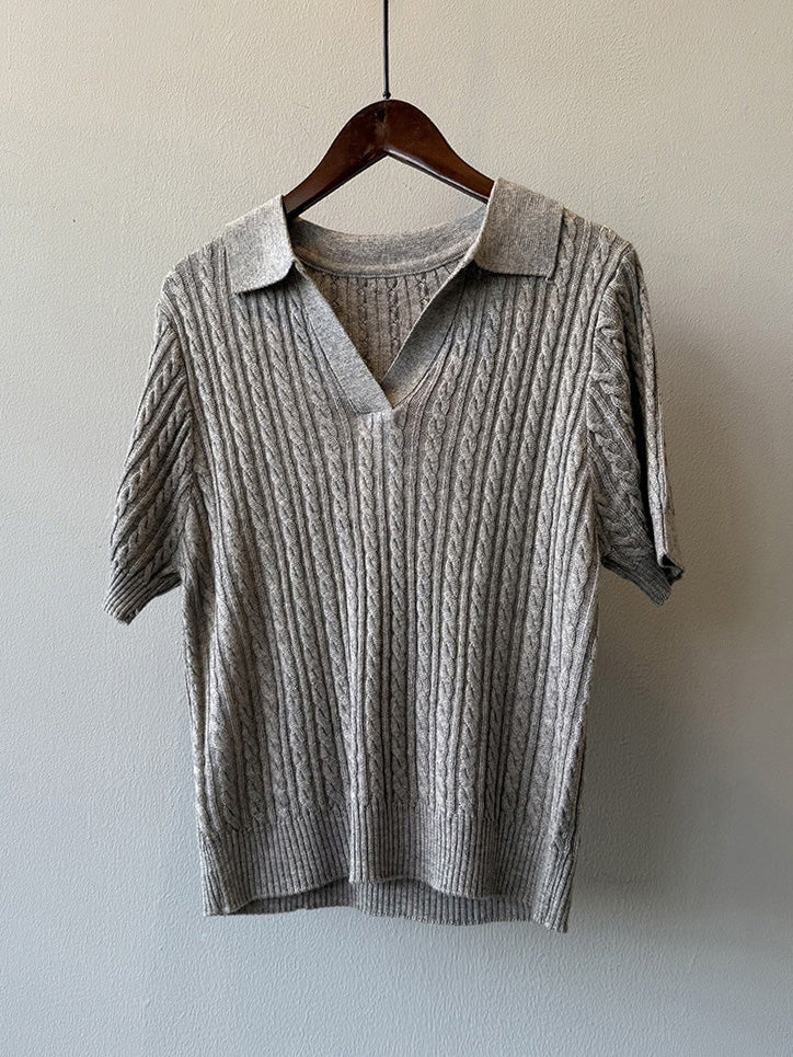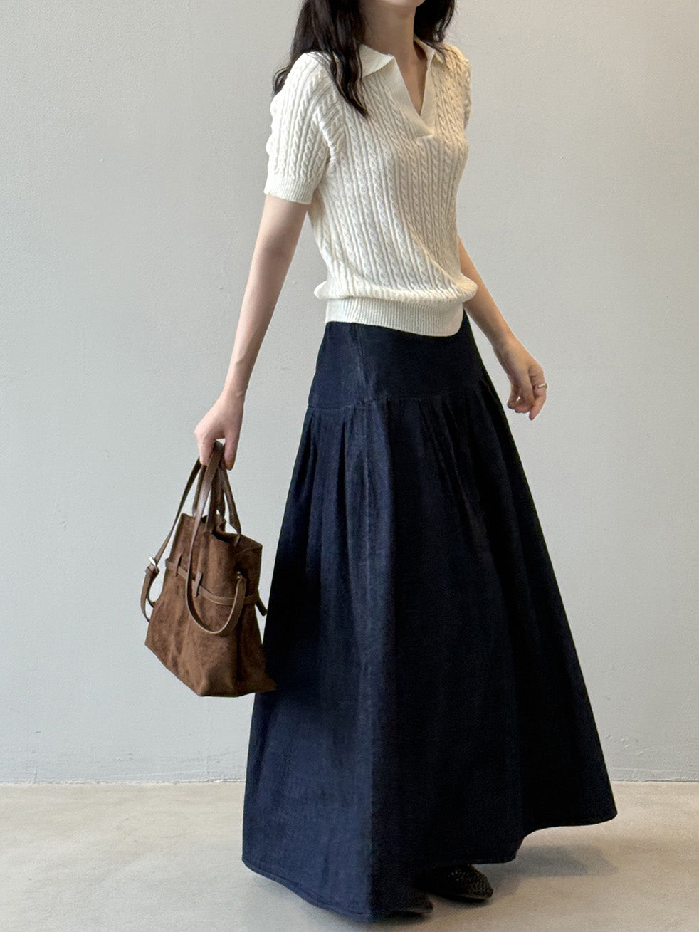 洗練された大人の休日スタイルを演出する、アラン模様のスキッパーカラーニット。