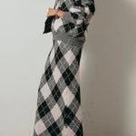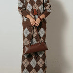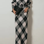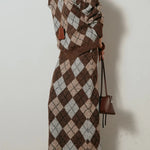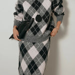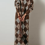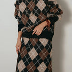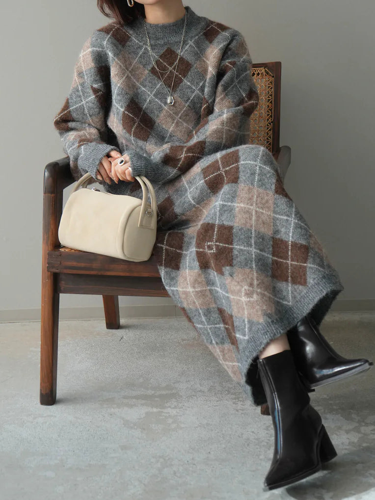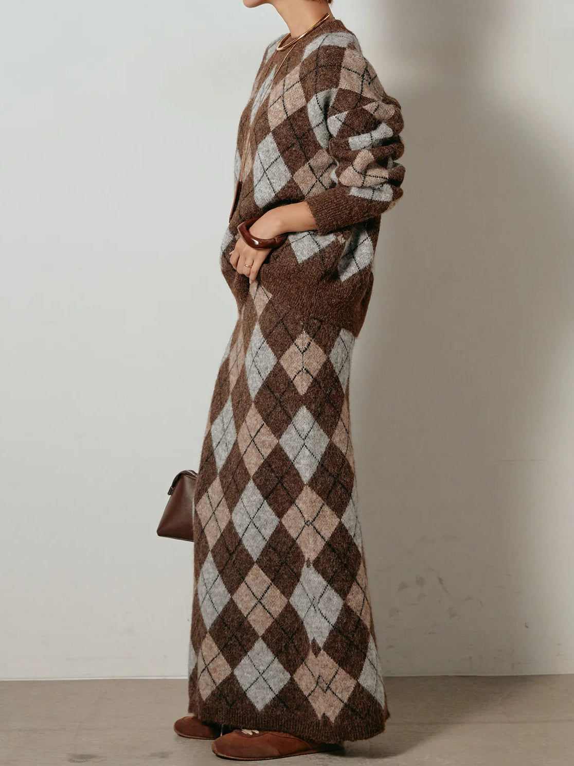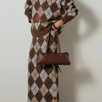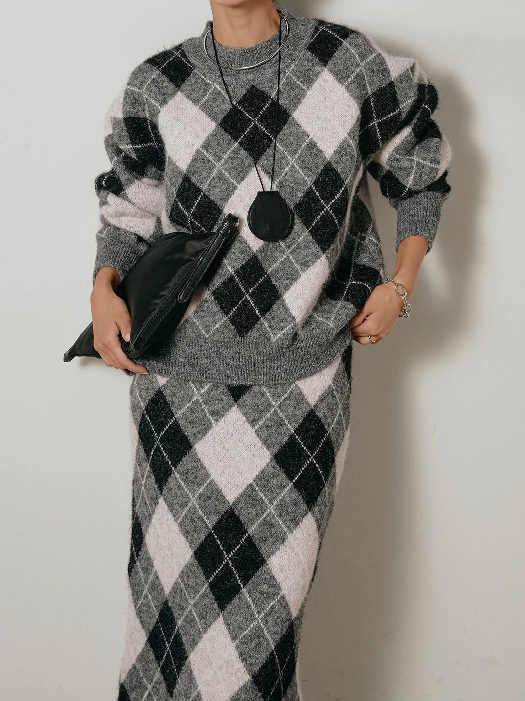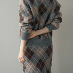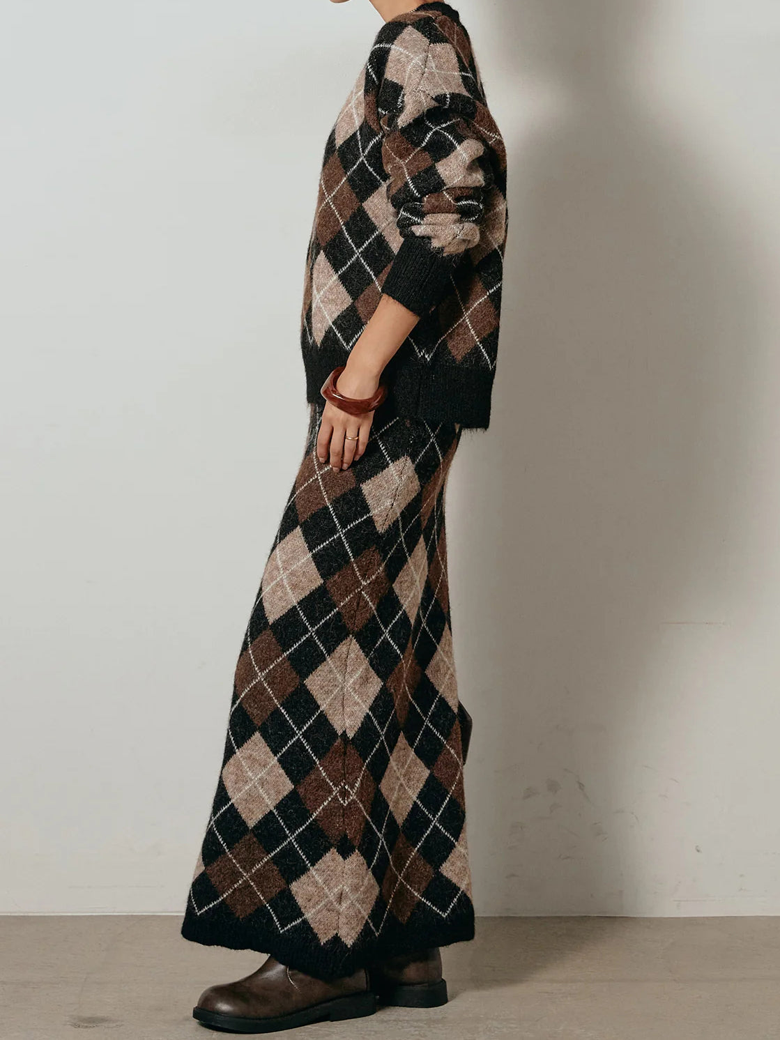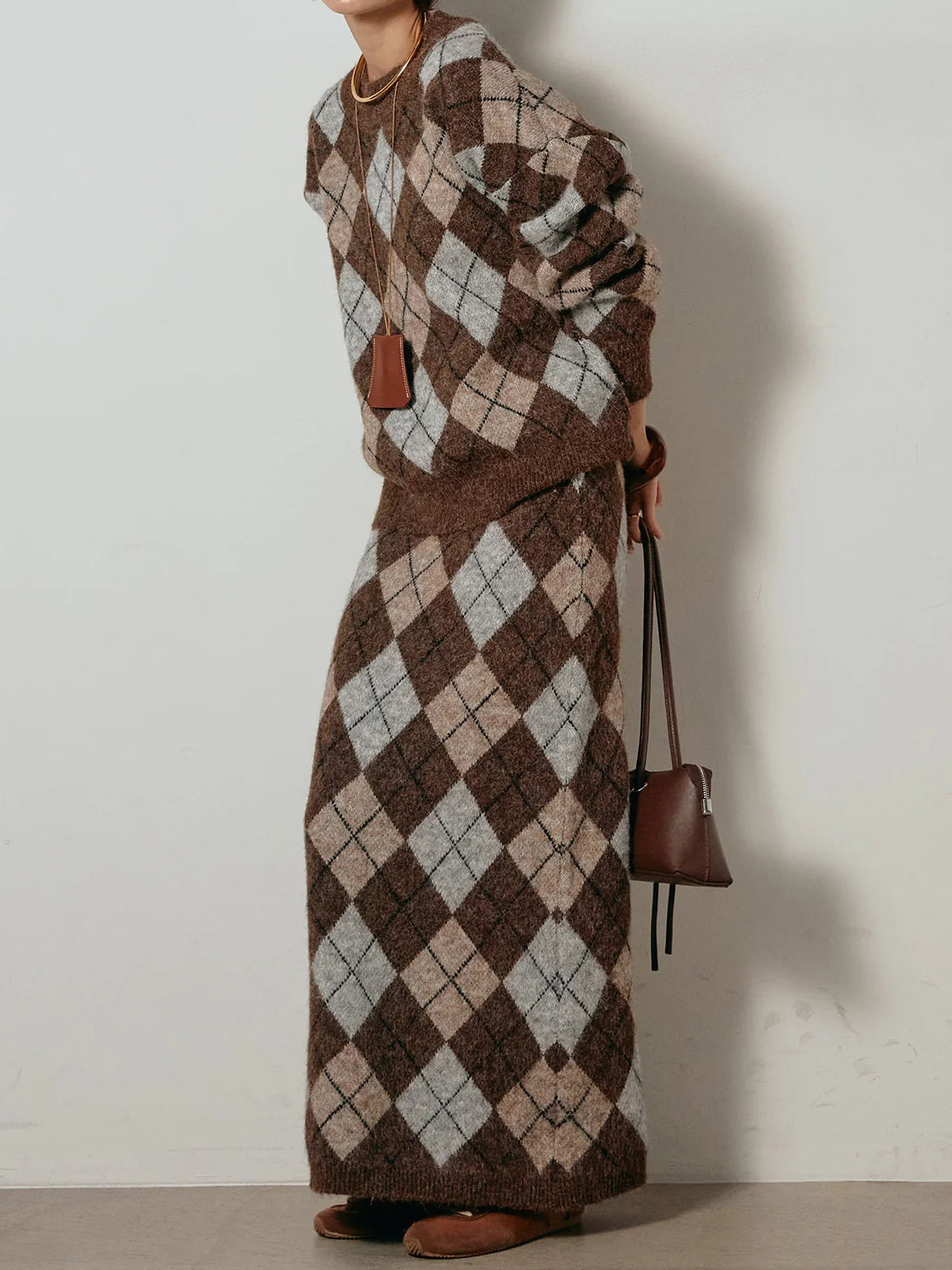 アーガイルニットプルオーバー+ロングスカートSET 3色入