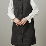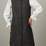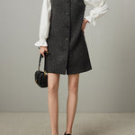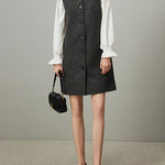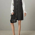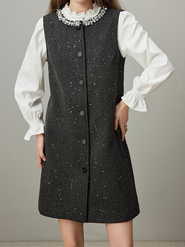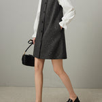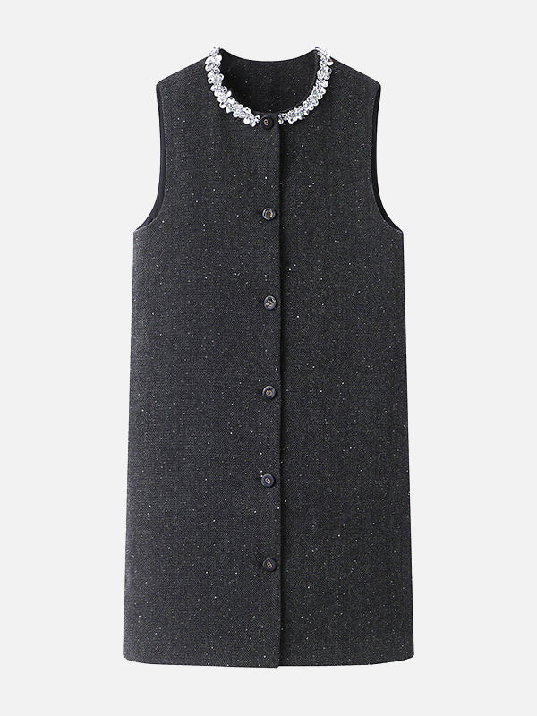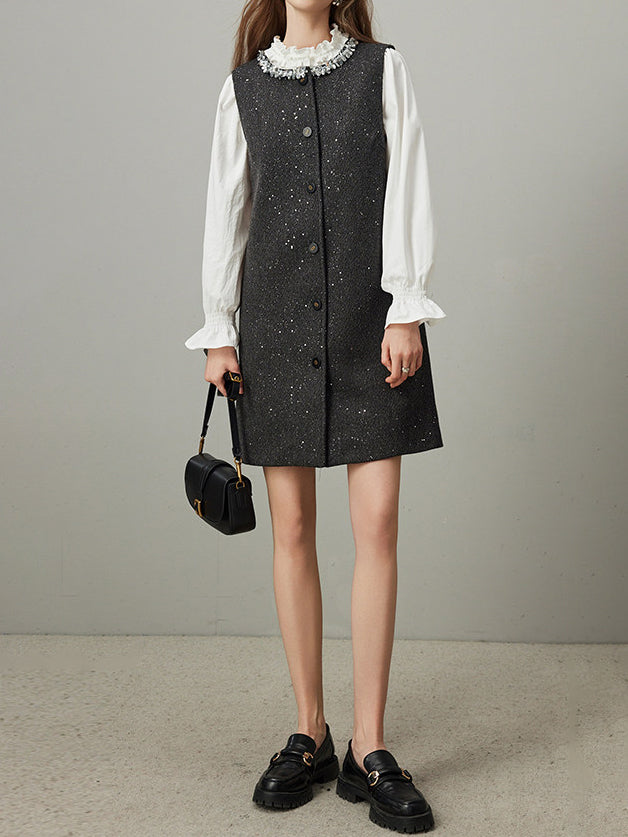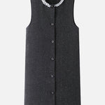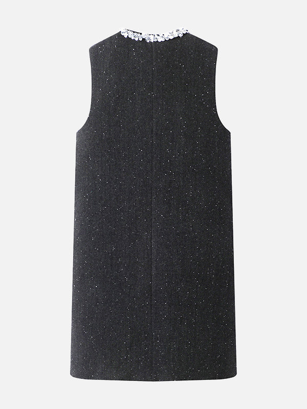 襟に連結したビーズを贅沢にあしらった、華やかなタンクワンピース。