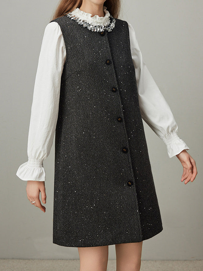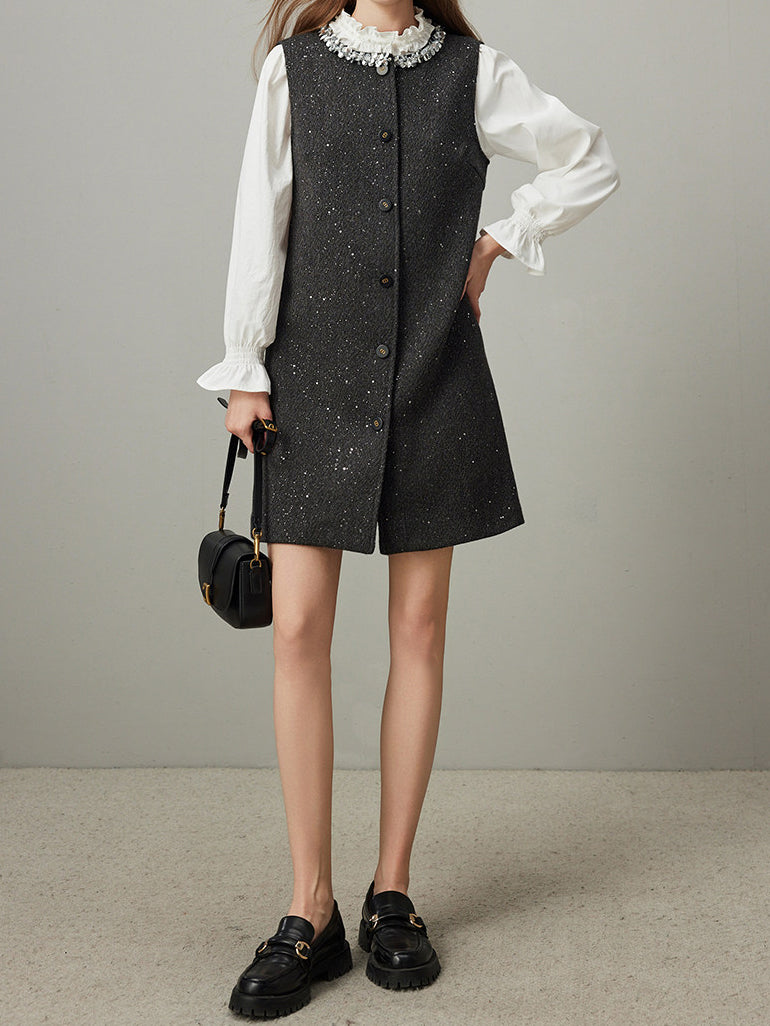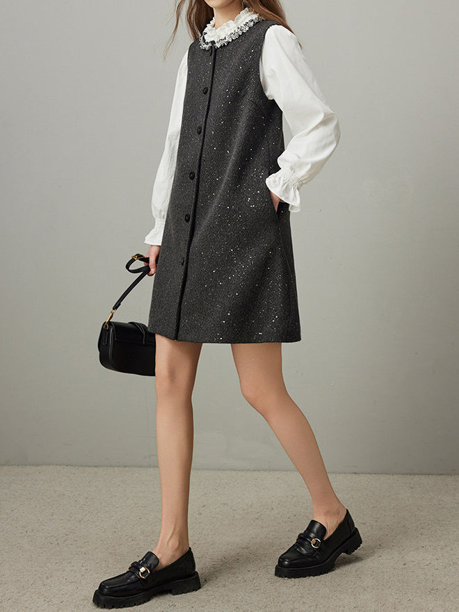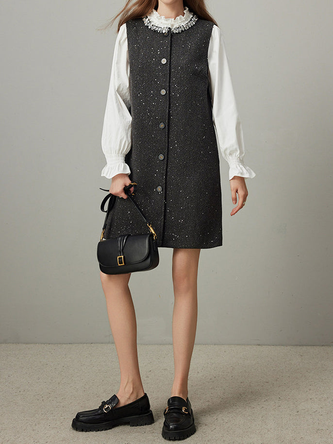 控えめなスパンコールが、エレガントさと機能美を調和させ、着る人に心地よい喜びと開放感をもたらします。