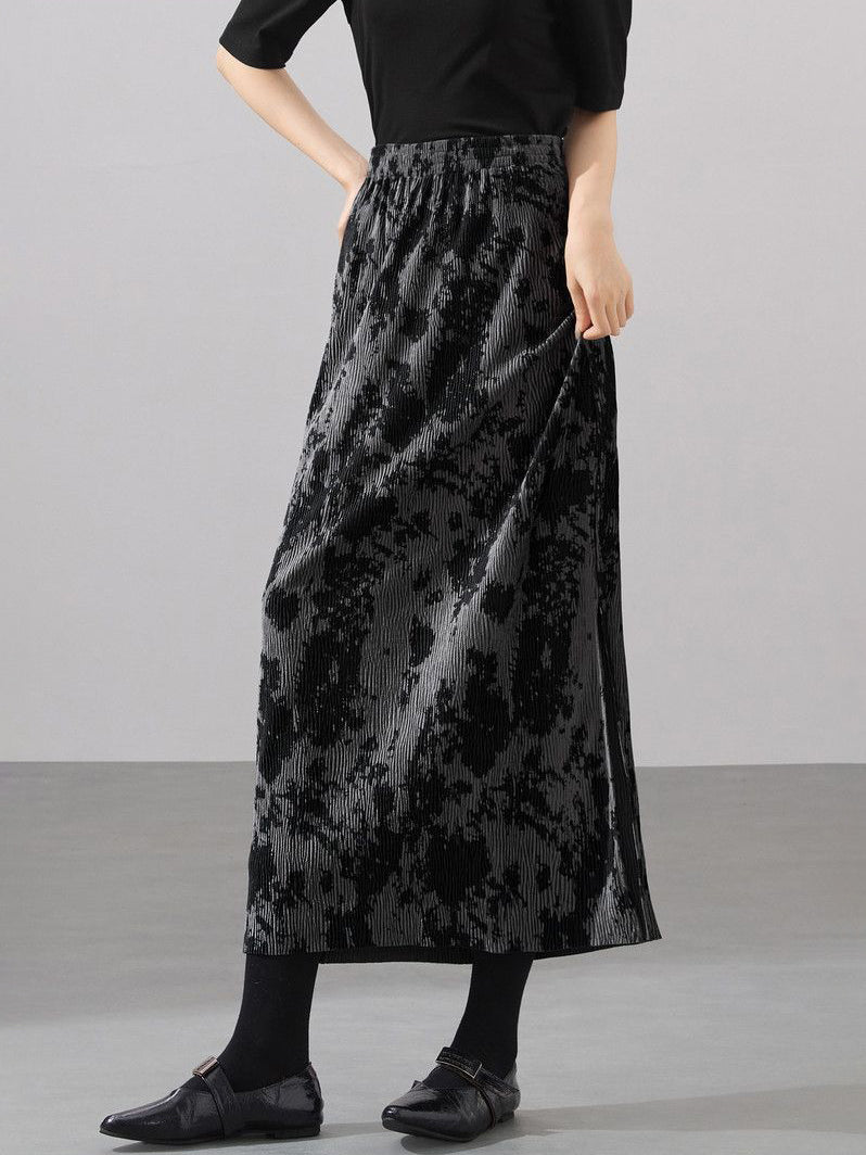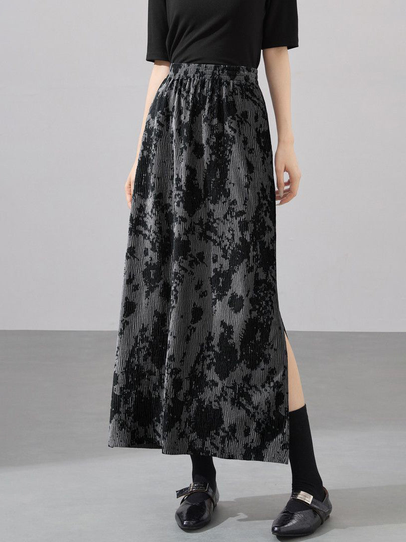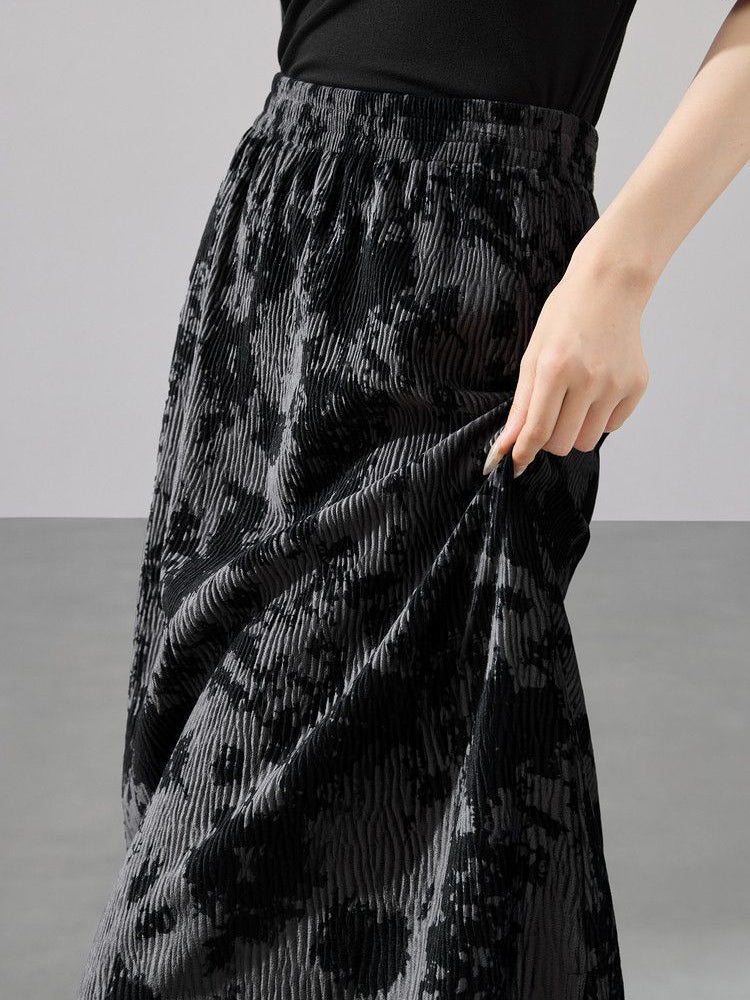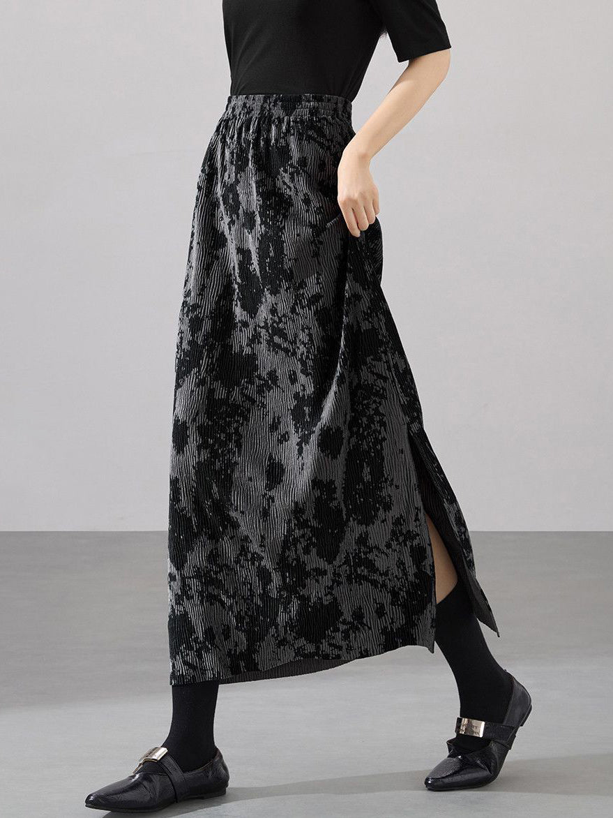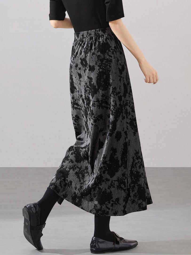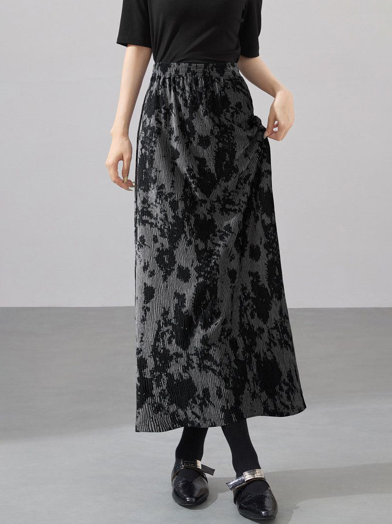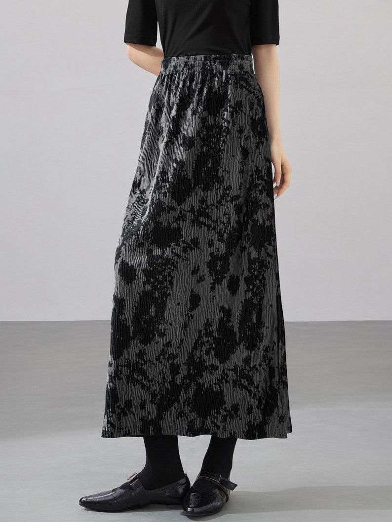 ☆アートプリントの色合いと太さのあるプリーツがヴィンテージライクな雰囲気で、大人の女性の遊び心を演出します。