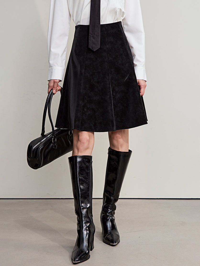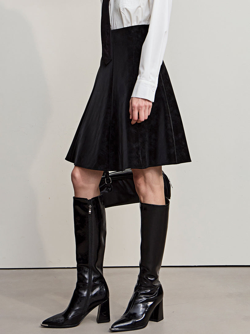 なめらかなスエード素材でシーズンムード高まるフレアスカート。