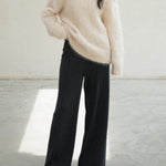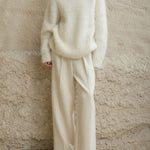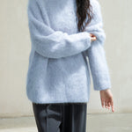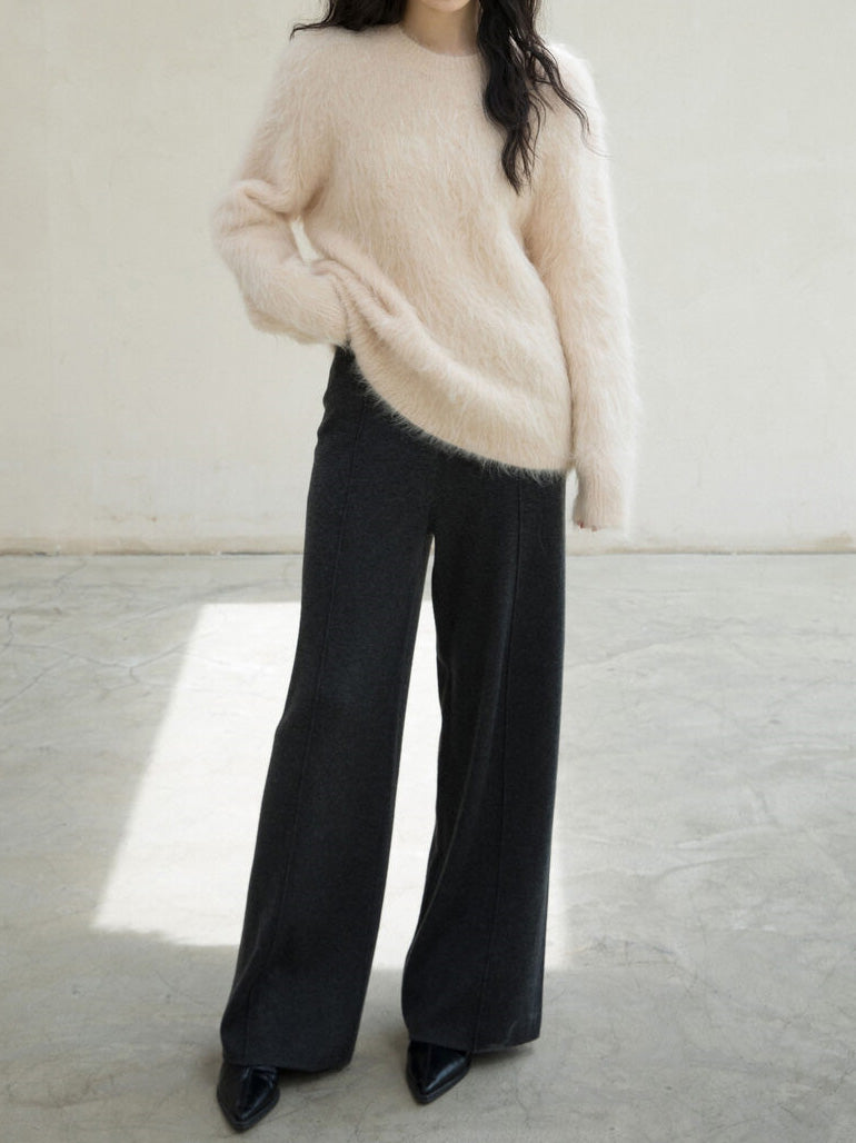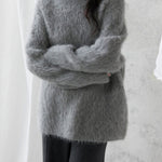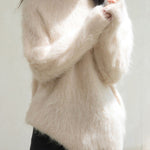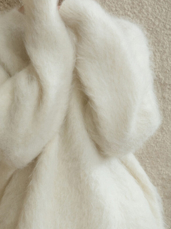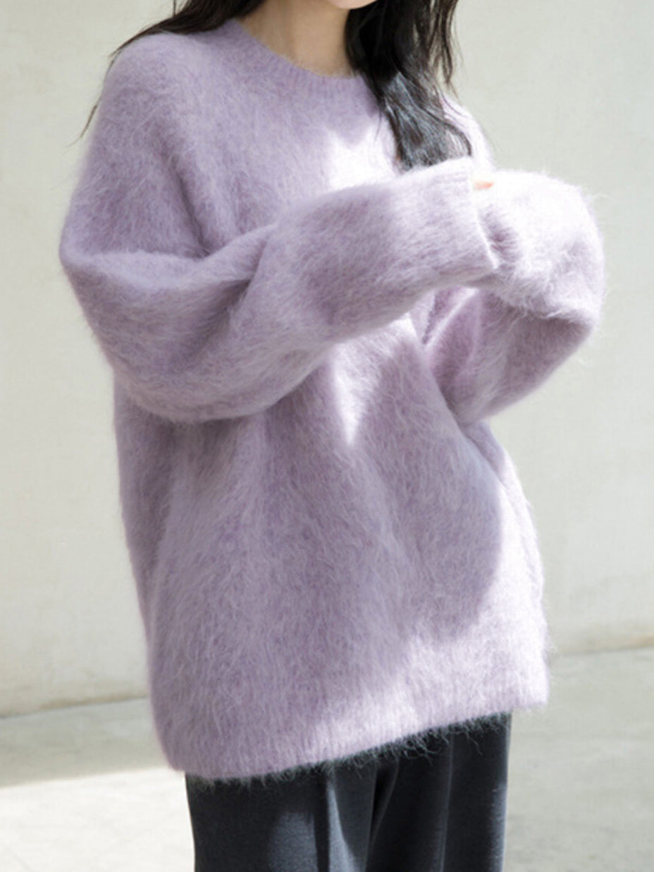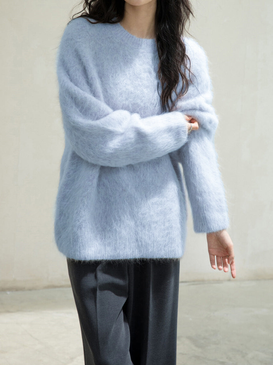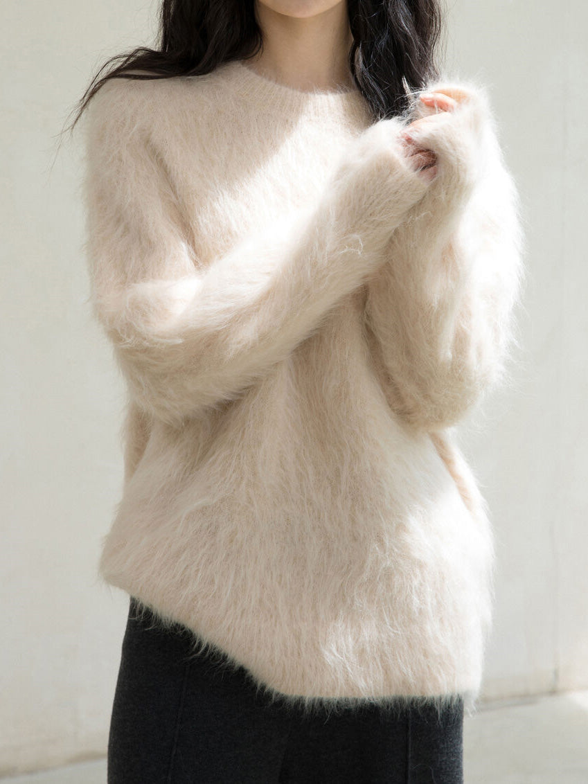 ふわふわの素材が可愛いシャギーニットは、柔らかく優しい印象に。