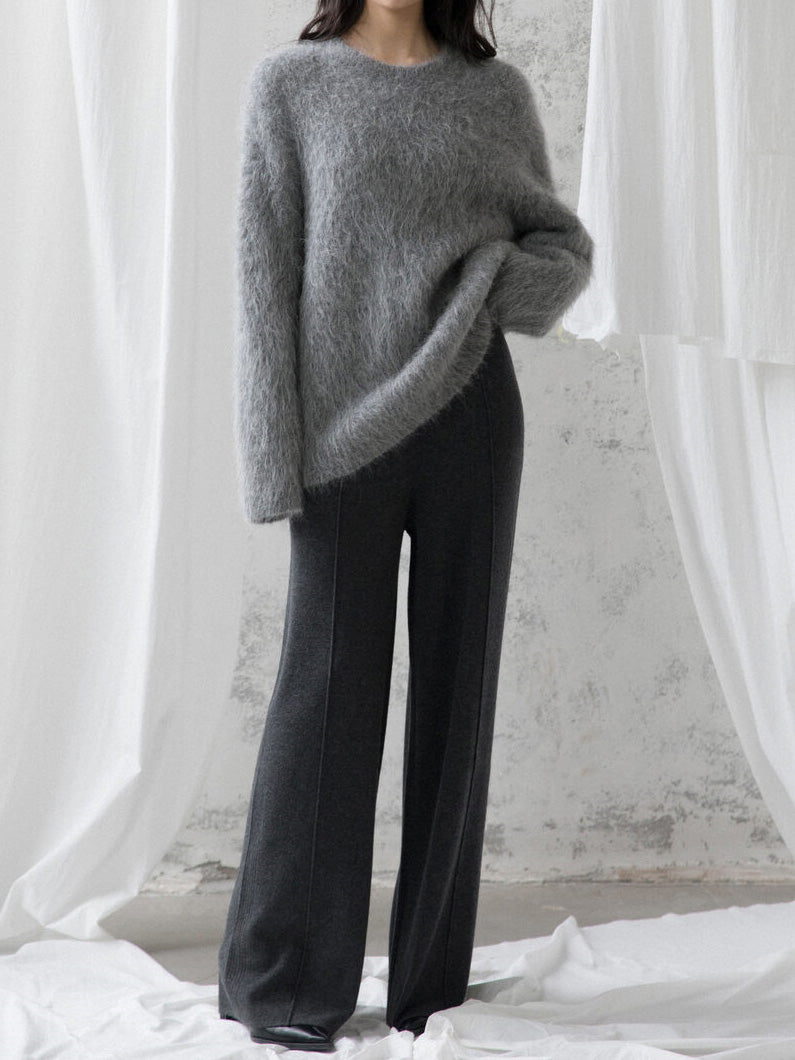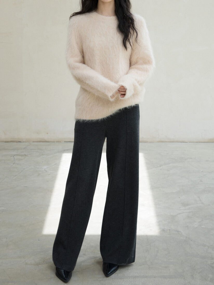 存在感のあるファーライク素材で仕上げたクルーネックニット。