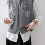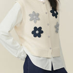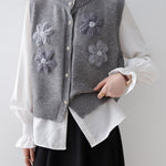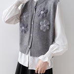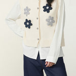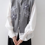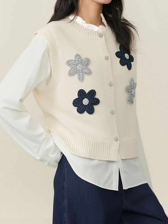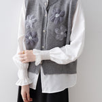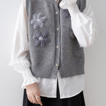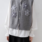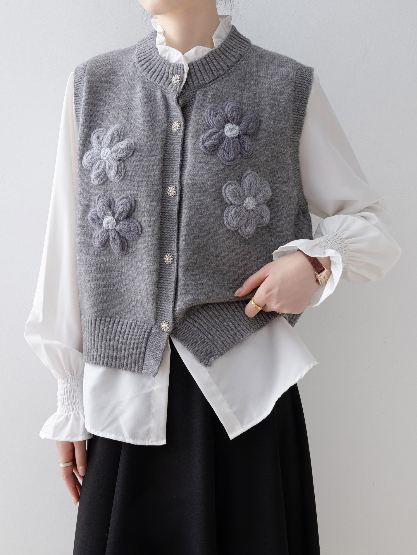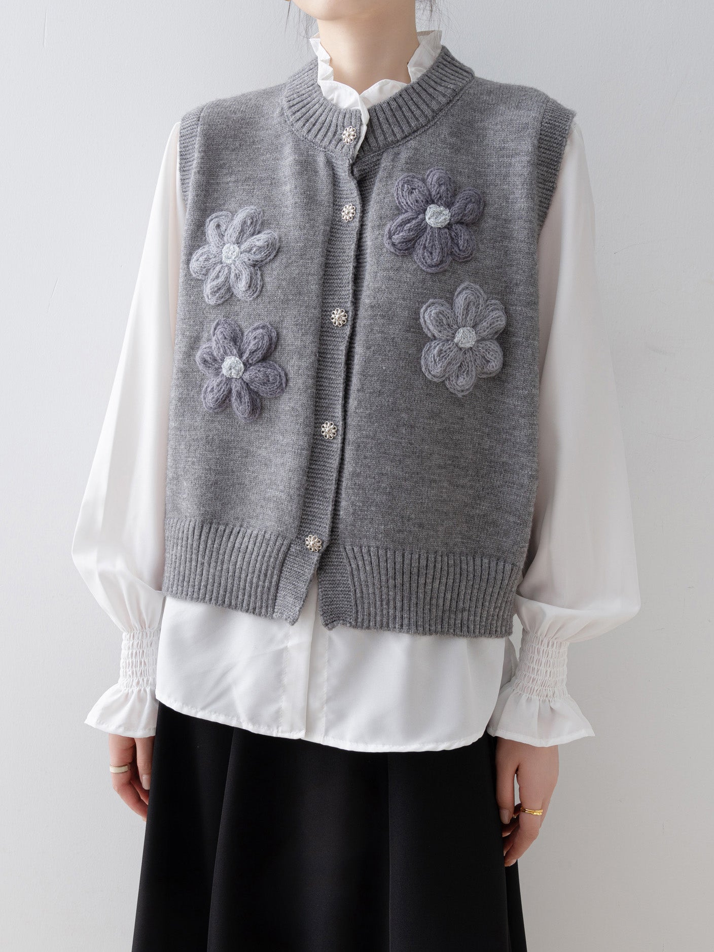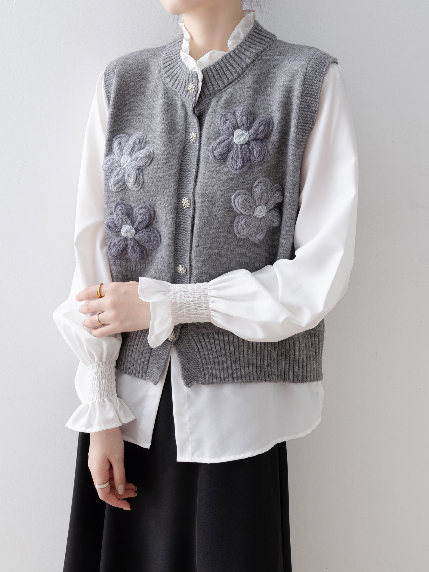 立体フラワーのモチーフを散りばめ、フリルをあしらったニット。