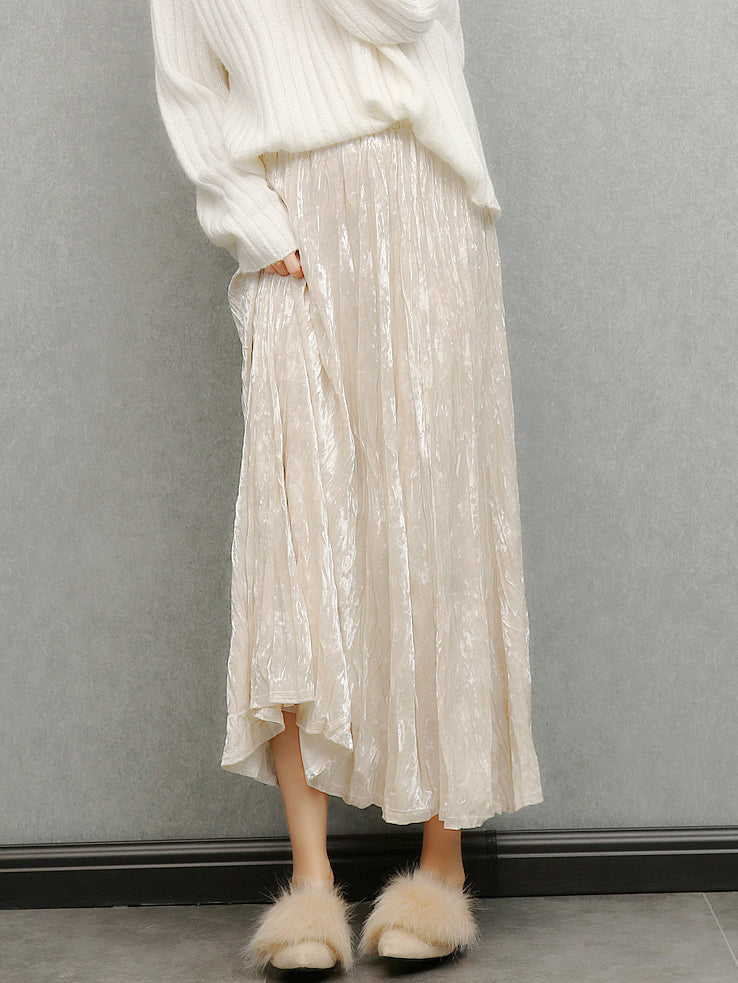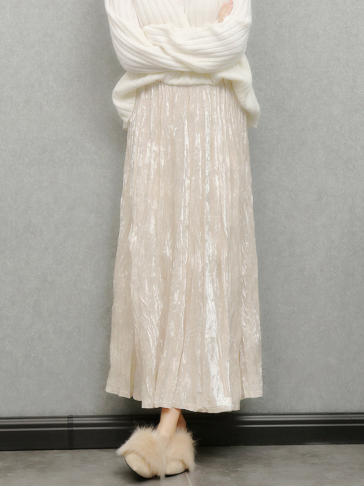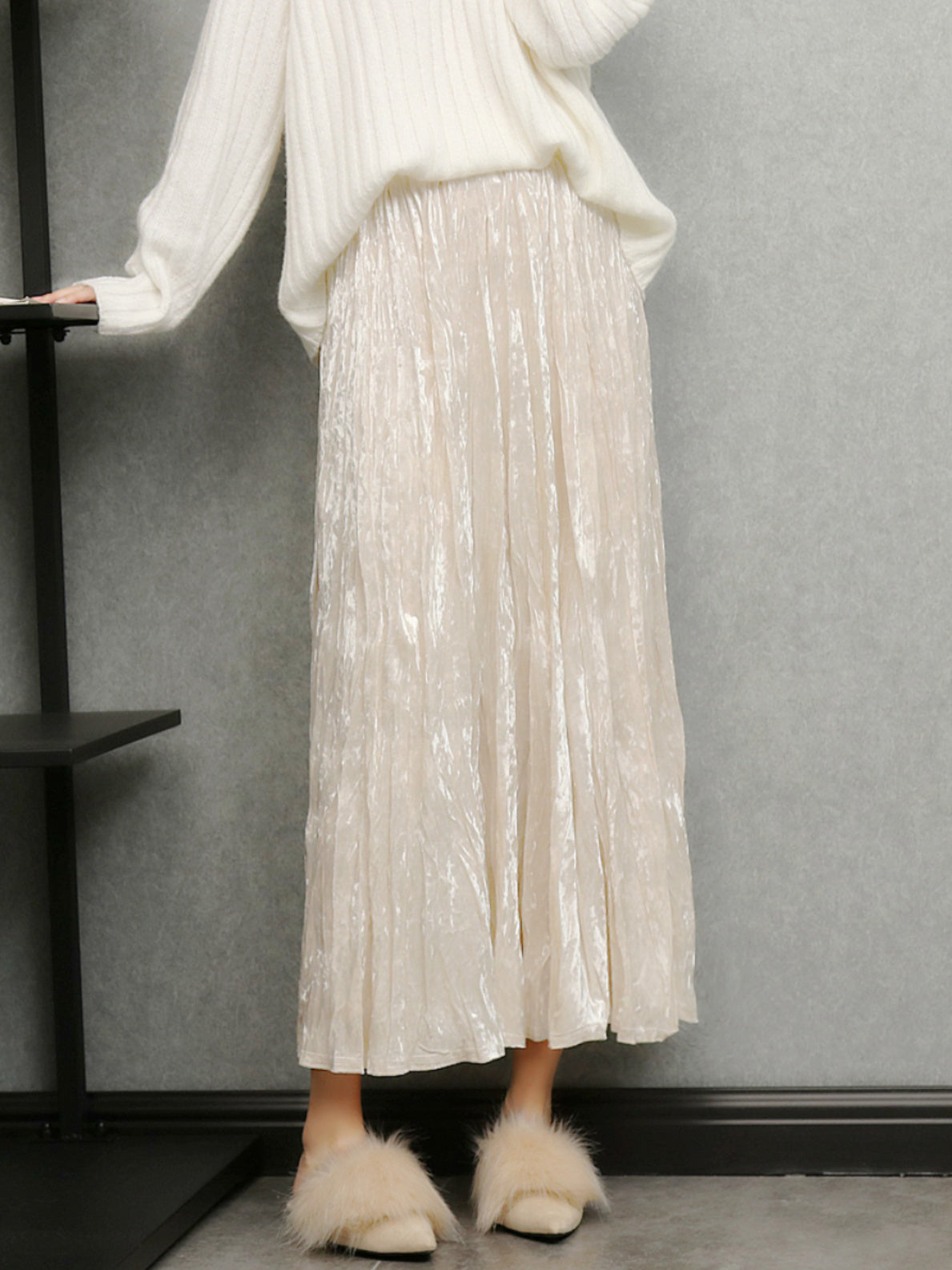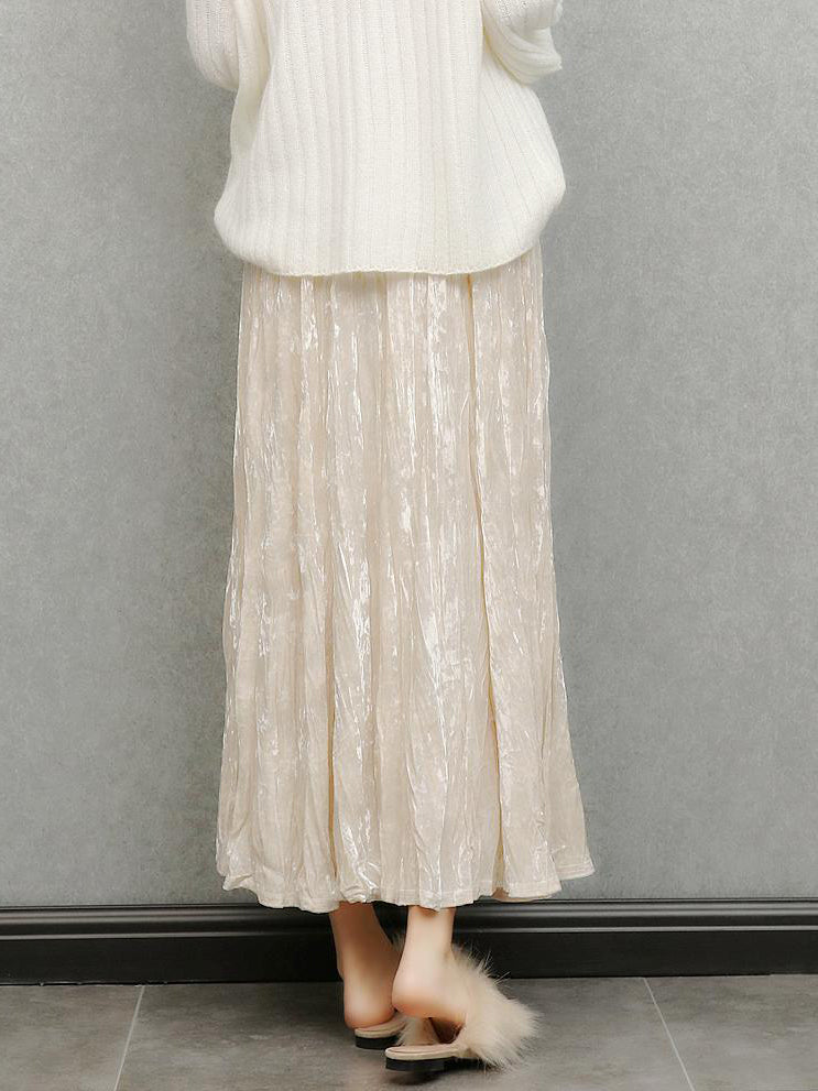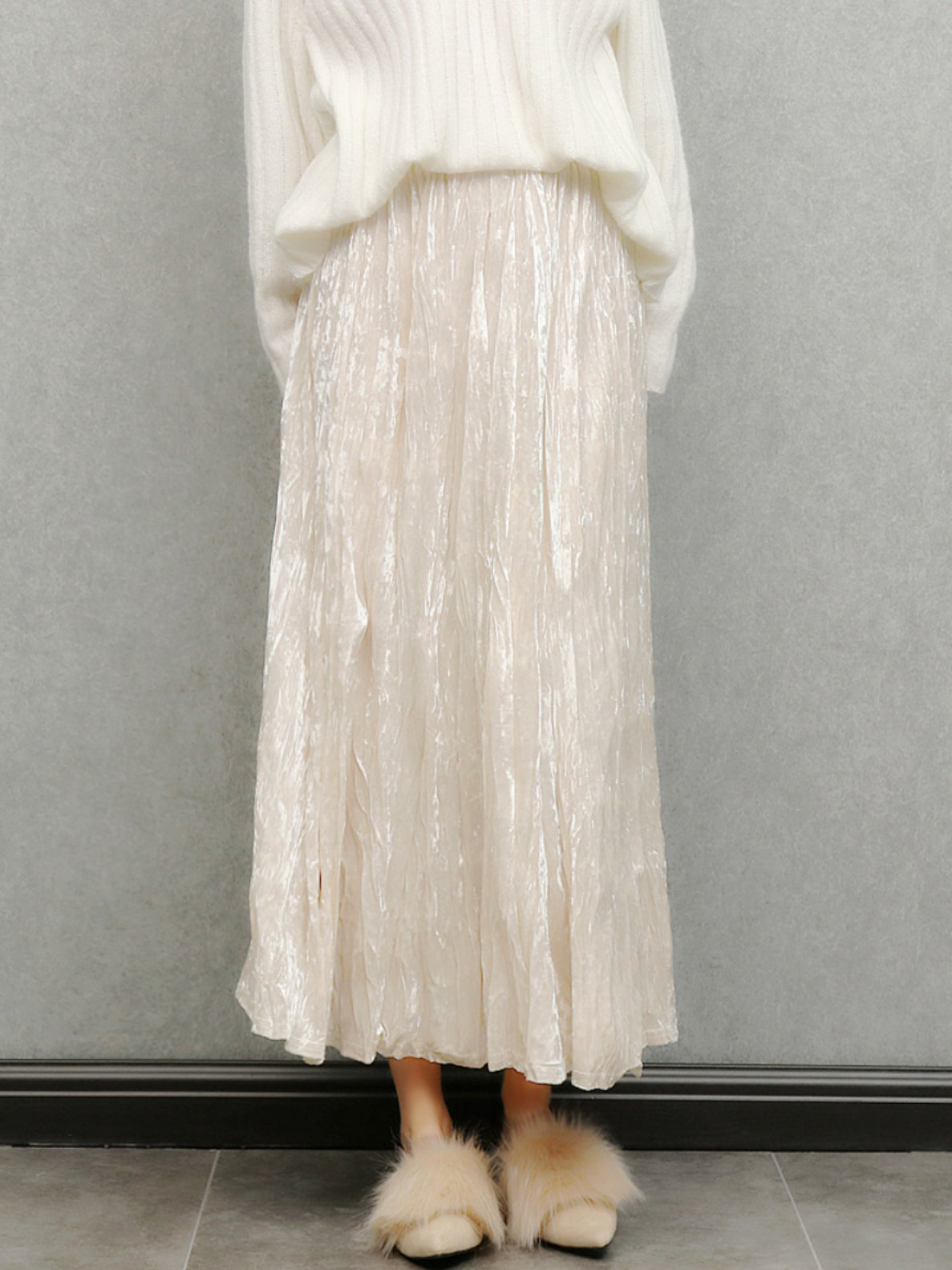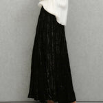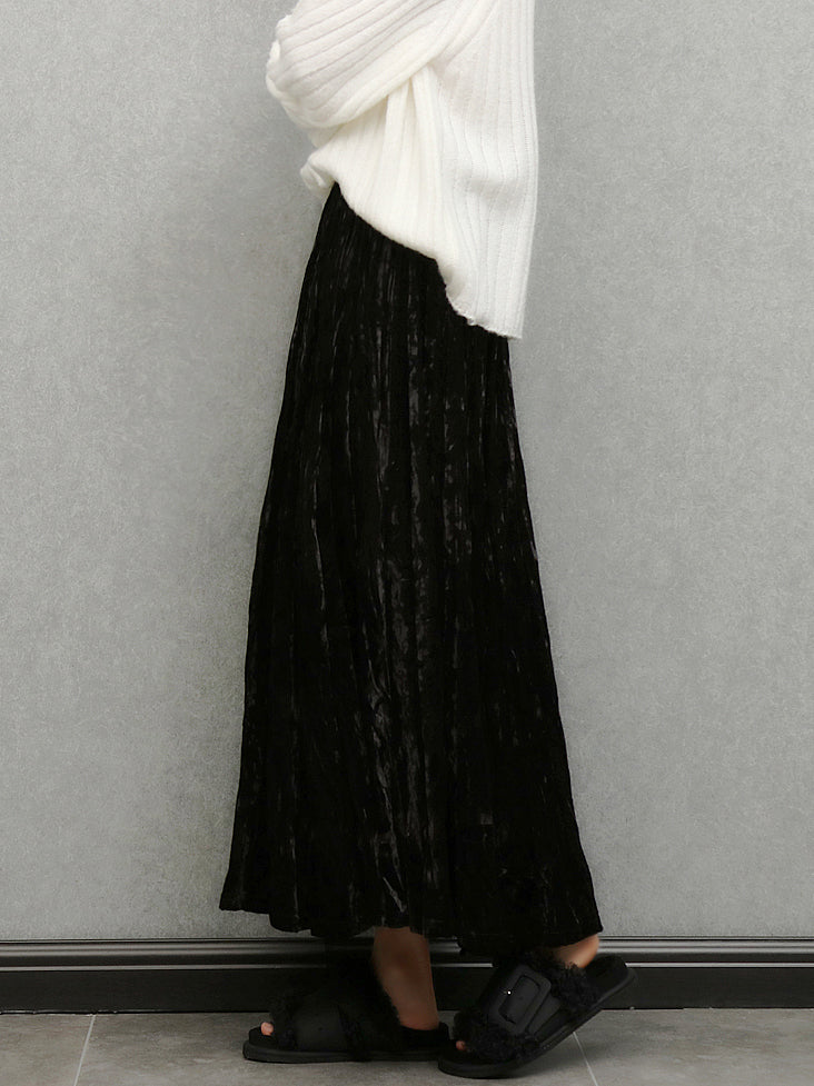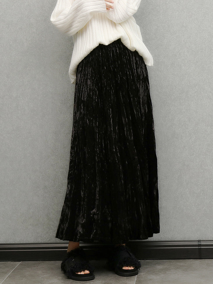 歩く度に揺れるフレア感がポイントのベルベットフレアスカート。