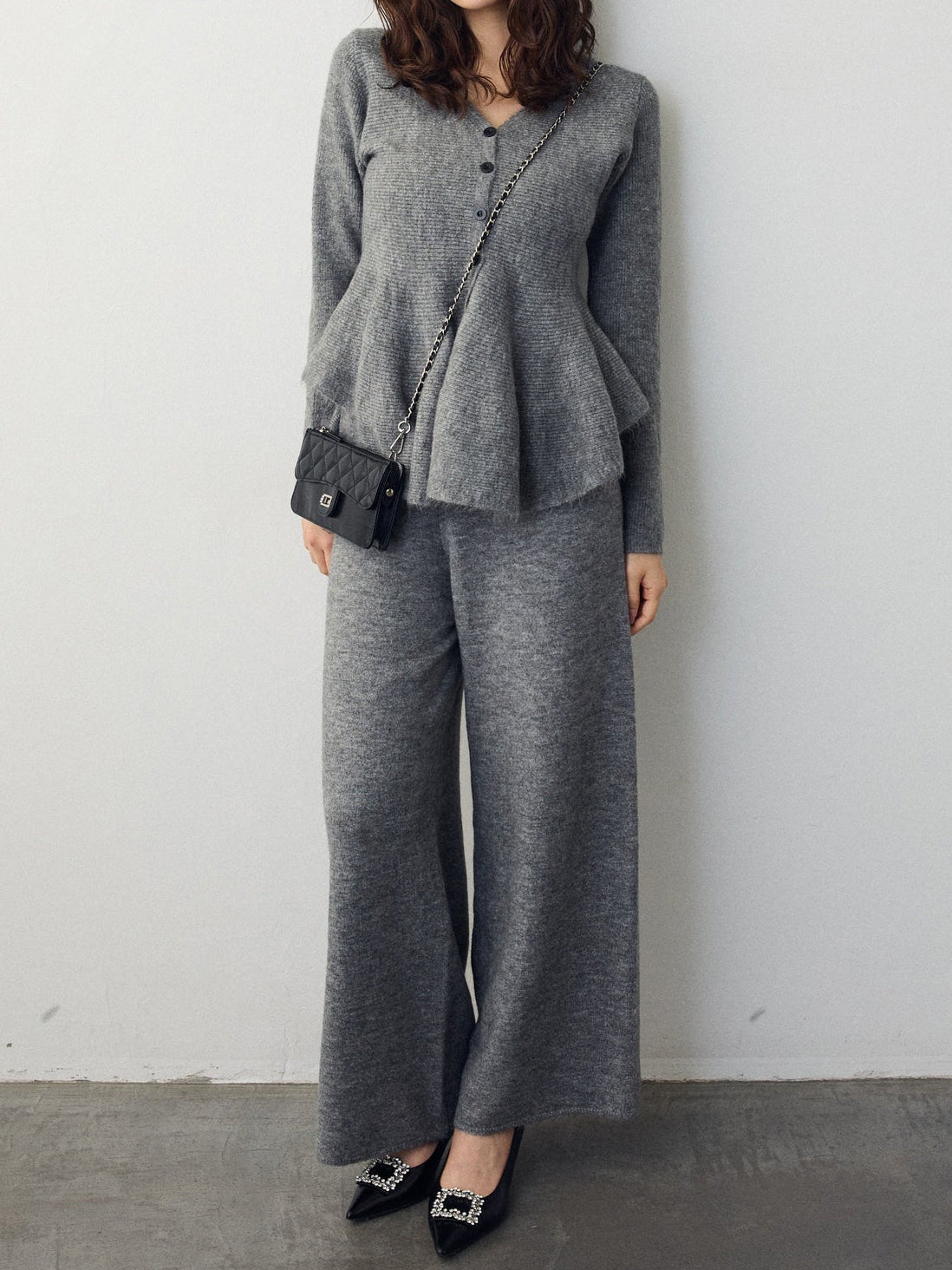 美ラインペプラムニット+ニットワイドパンツSET 3色入